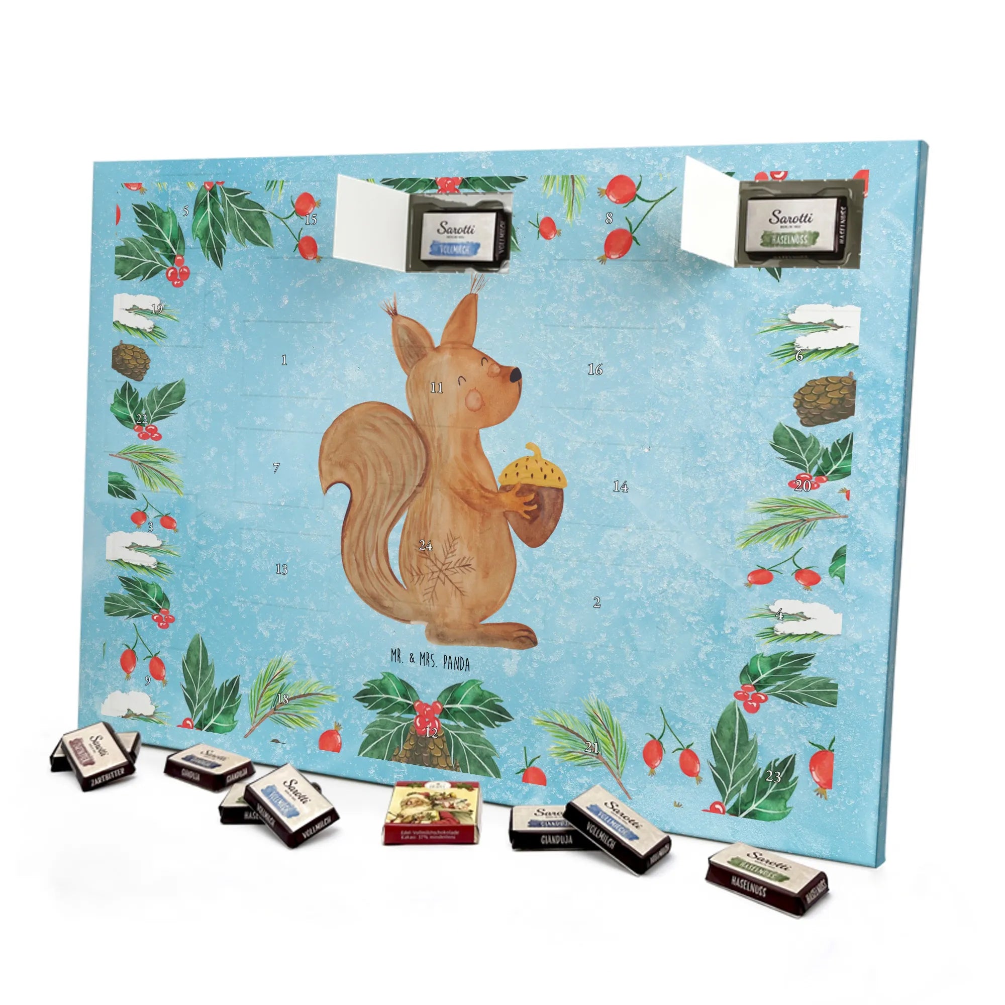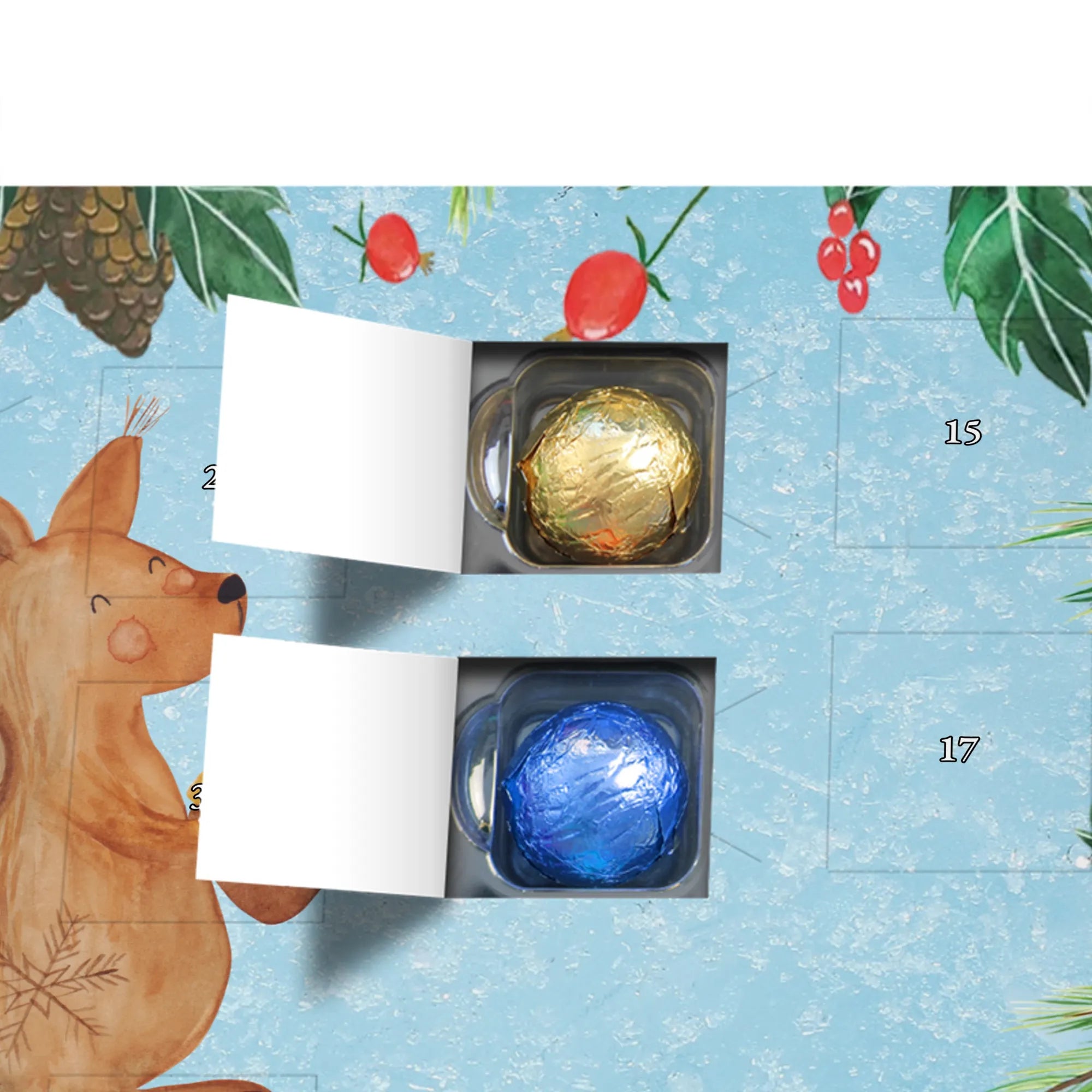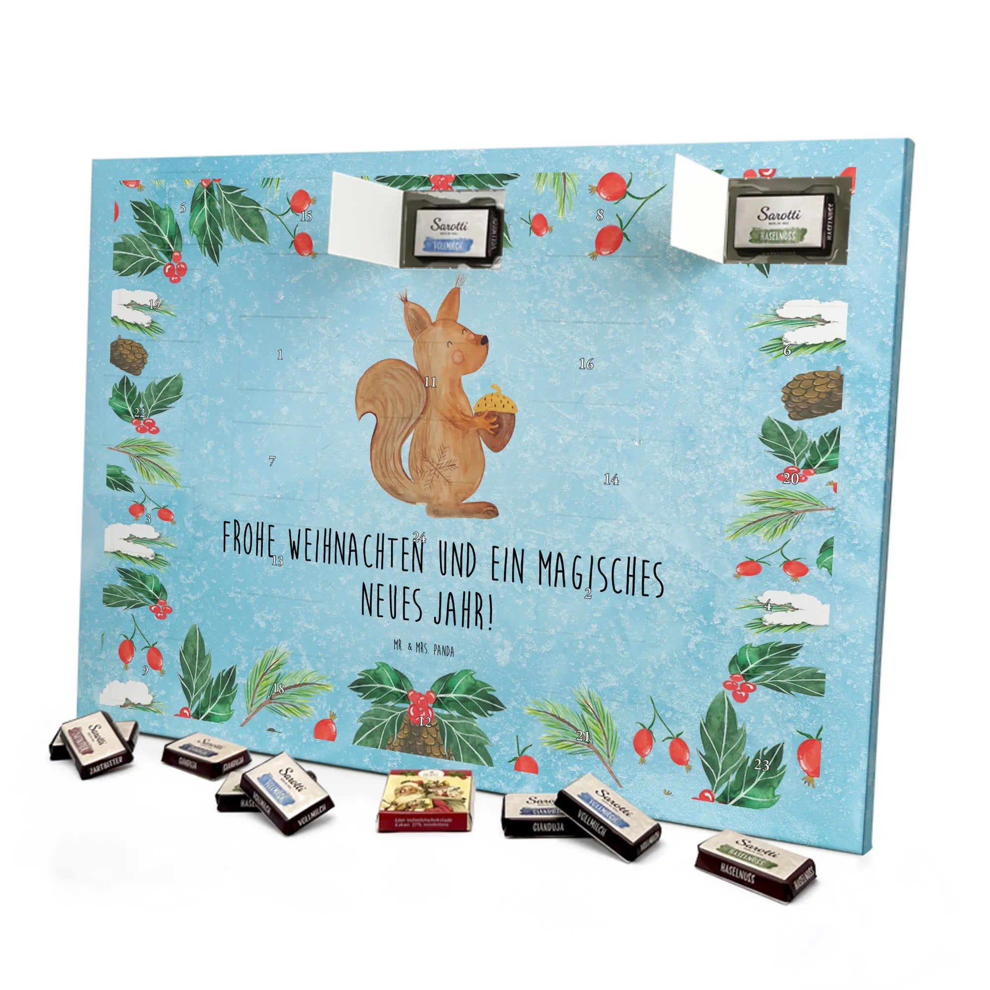 Schokoladen-Adventskalender Eichhörnchen Weihnachten - Classic - mit Spruch - Eisblau