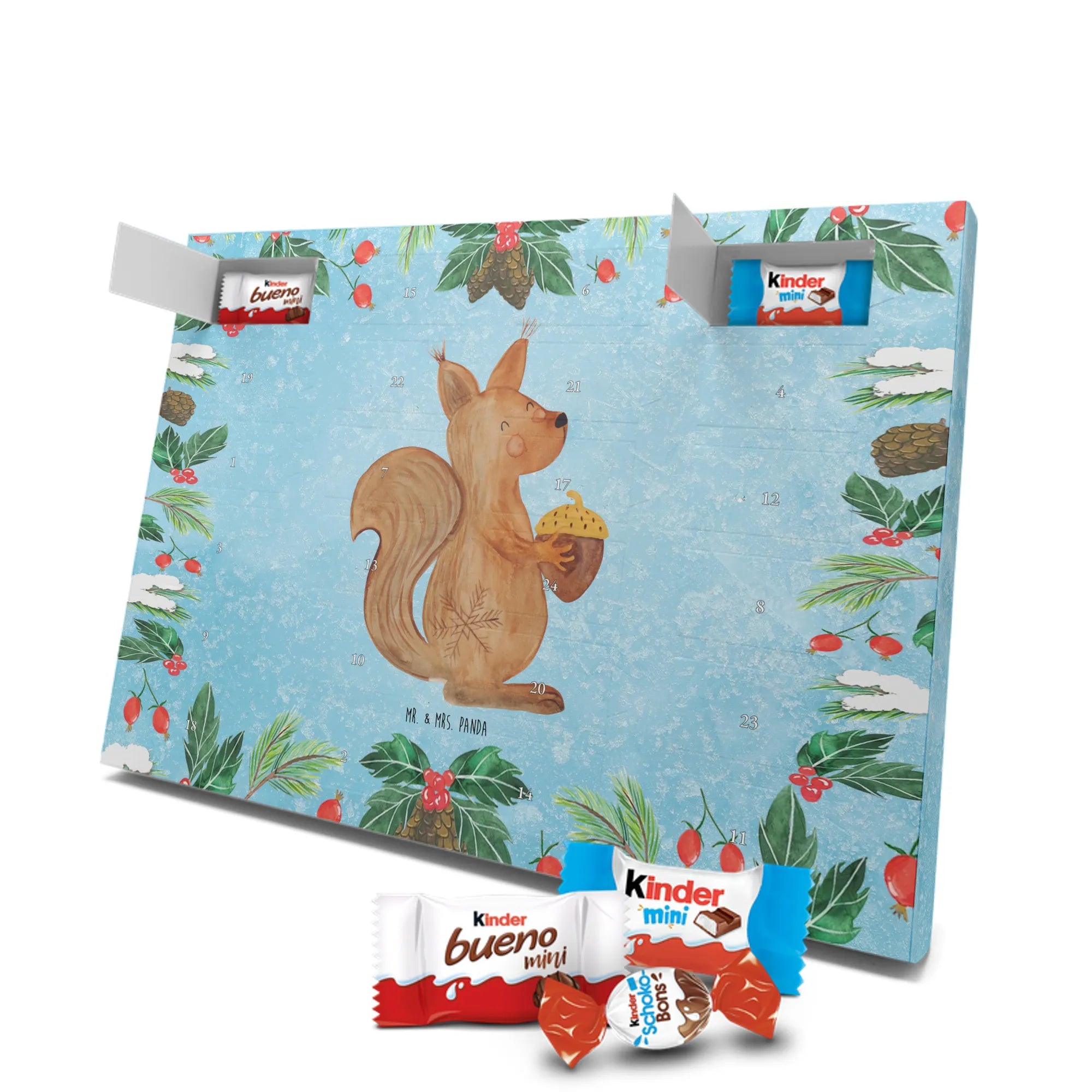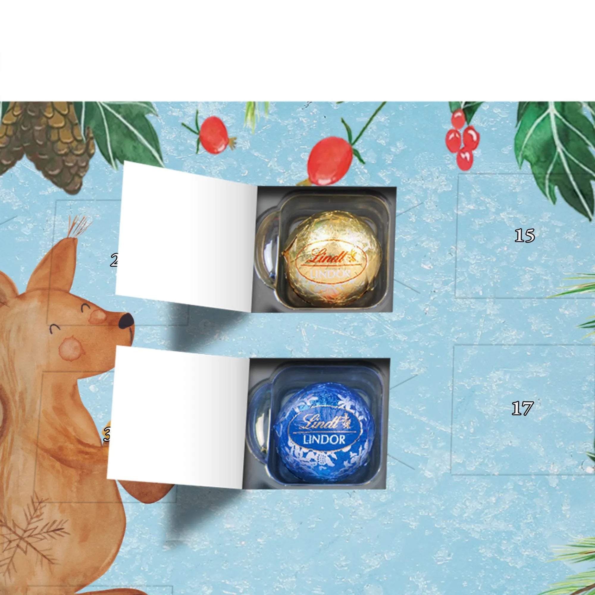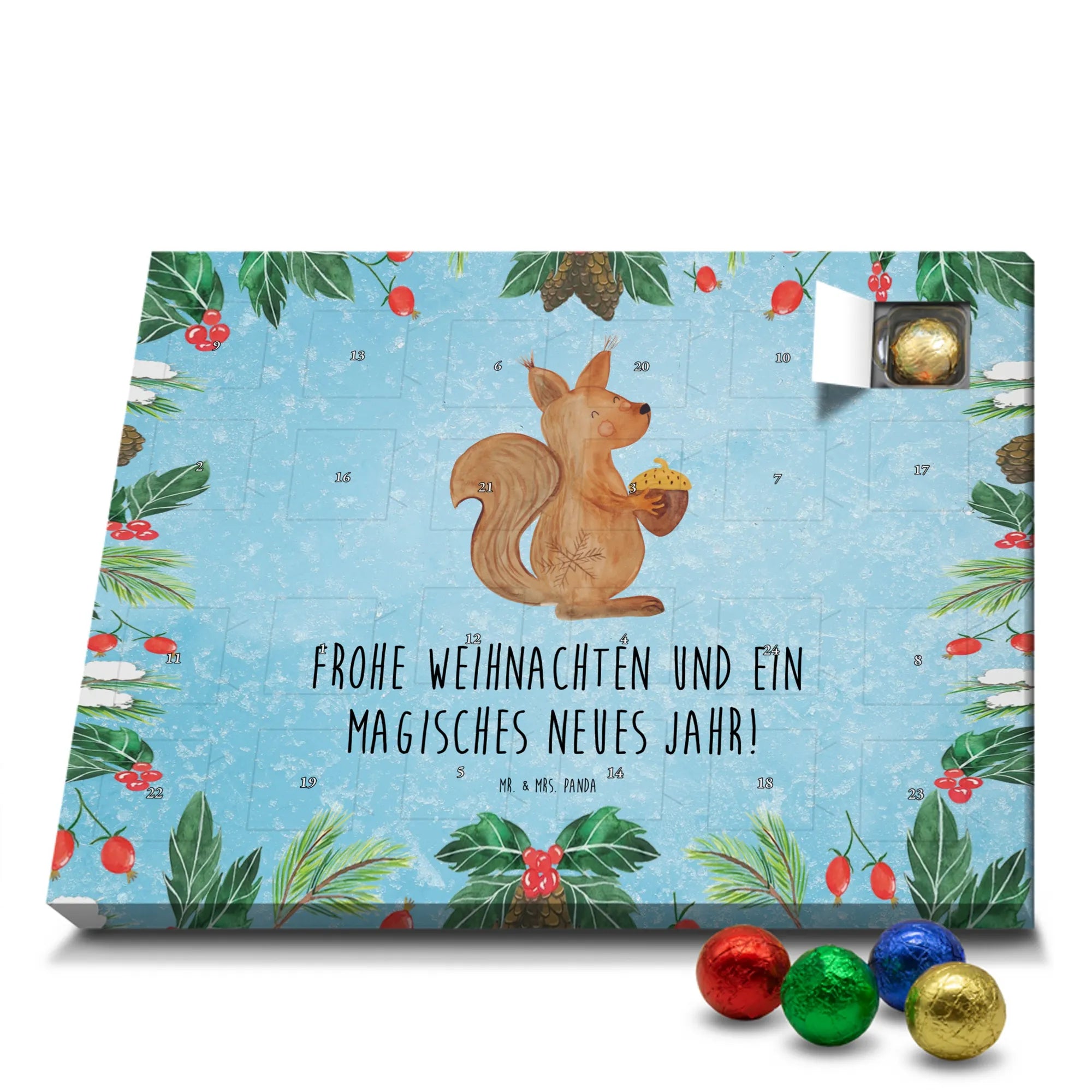 Schokoladen-Adventskalender Eichhörnchen Weihnachten - Classic - mit Spruch - Eisblau
