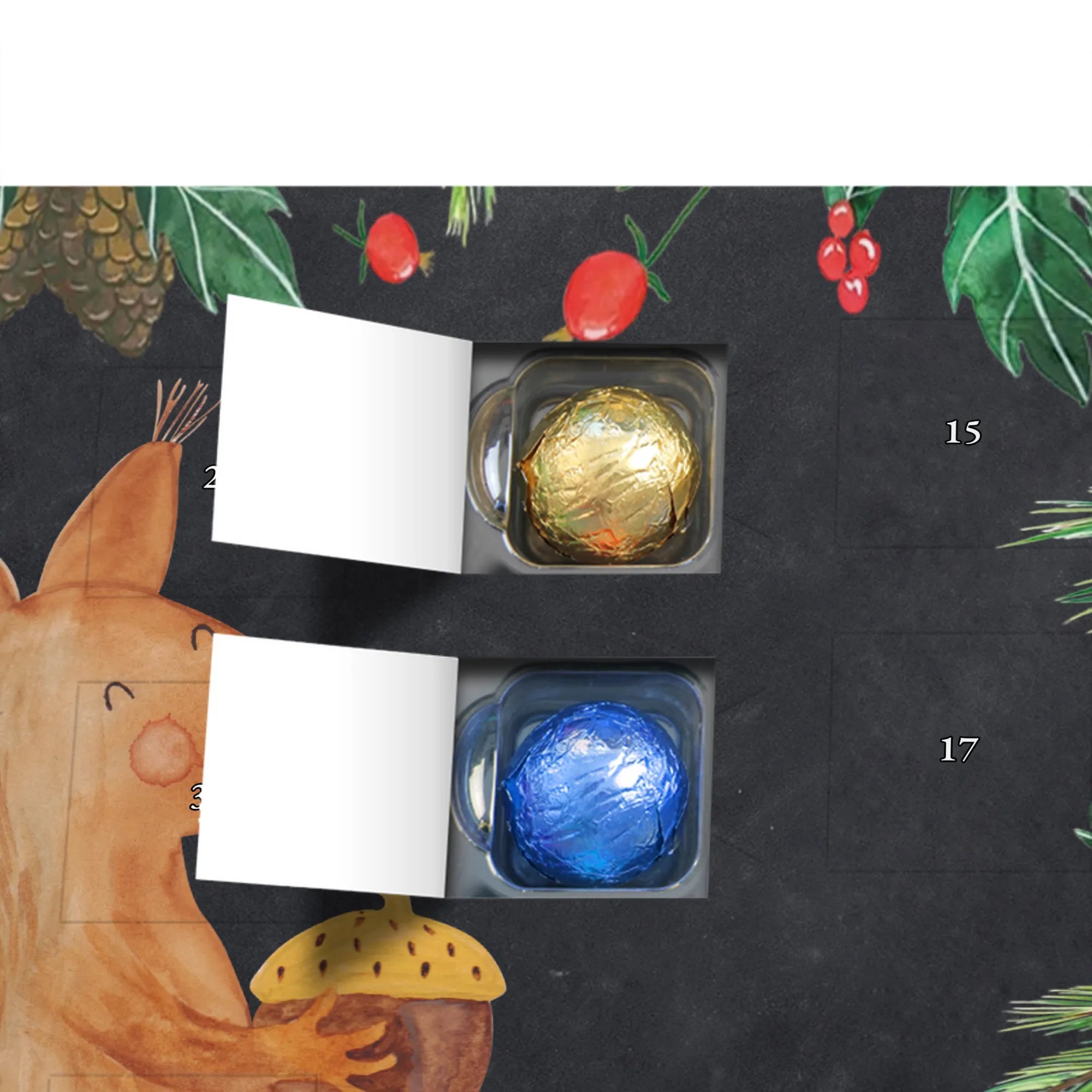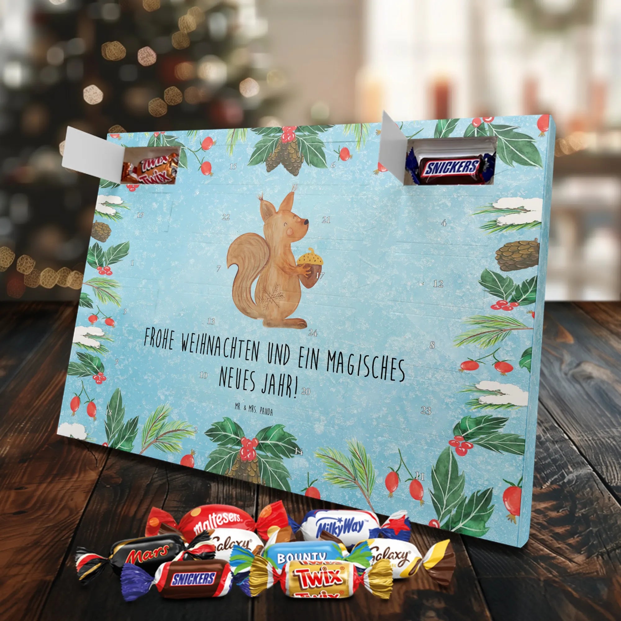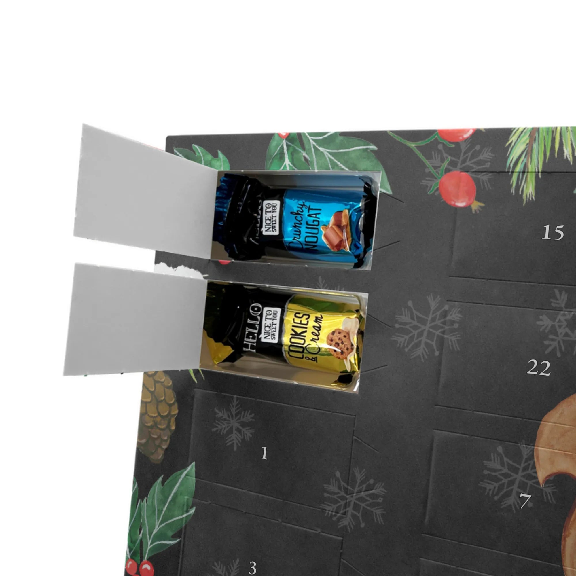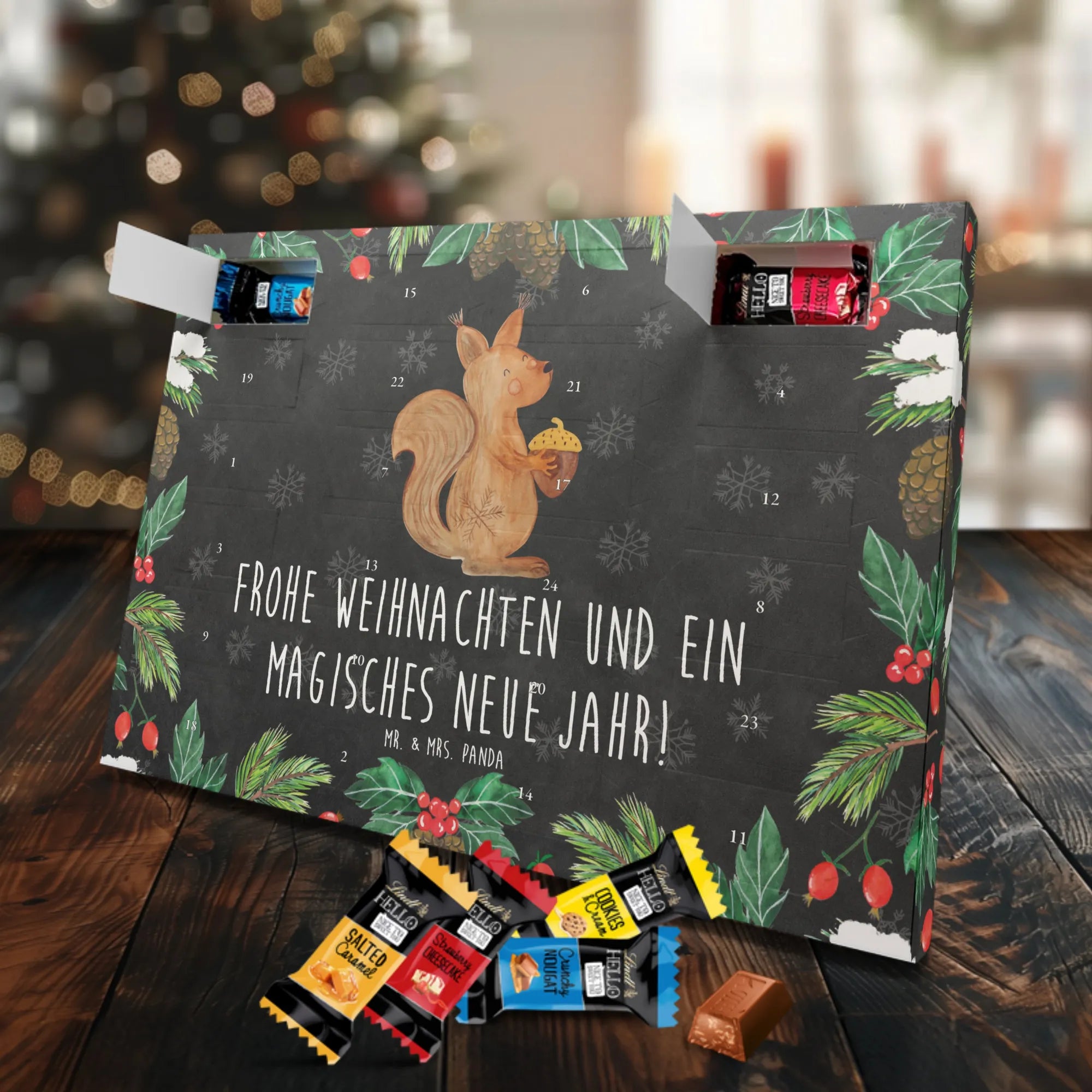 Mach die Adventszeit süßer: Entdecke unseren bedruckten Schokoladen Adventskalender von Mr. & Mrs. Panda und verschenke täglich Freude!