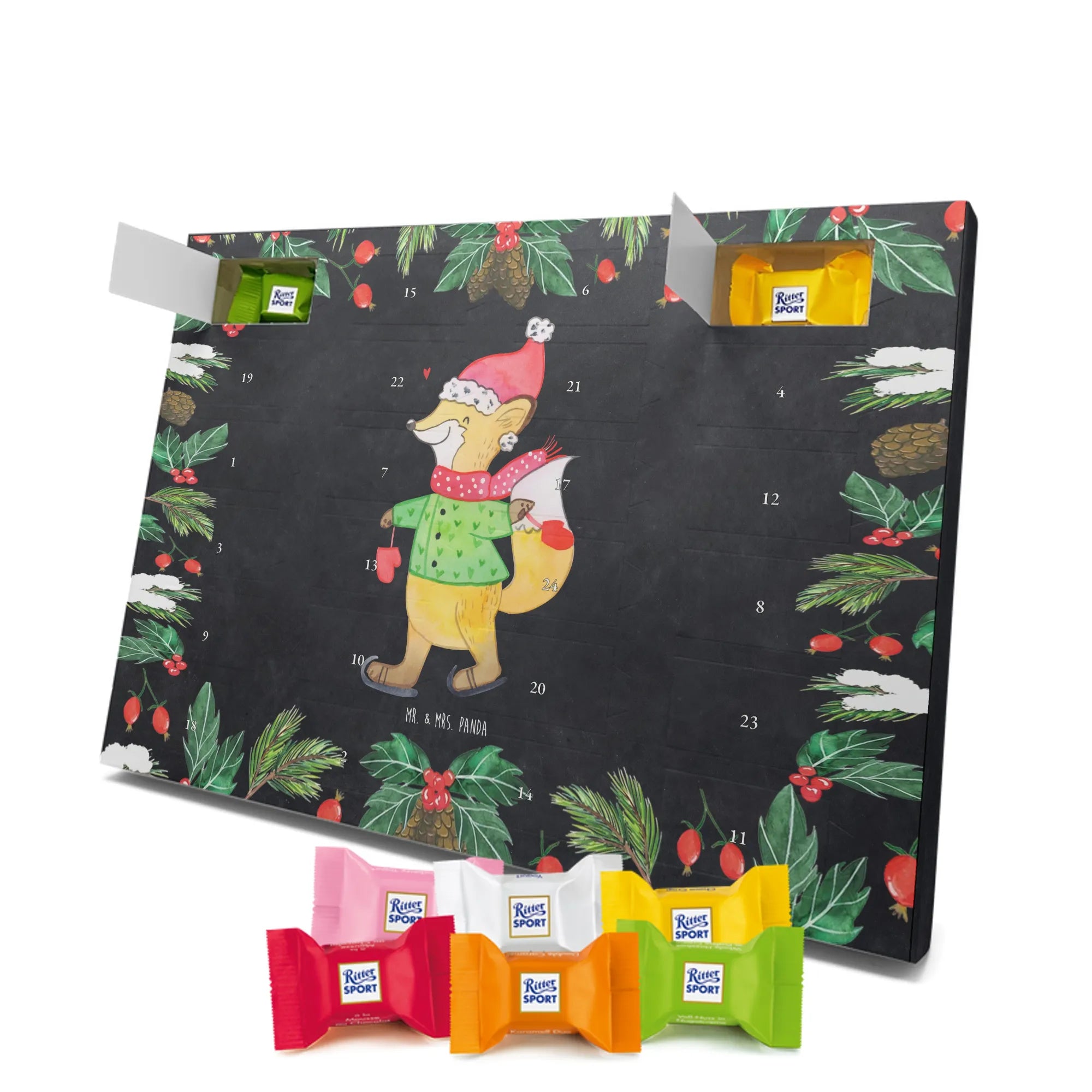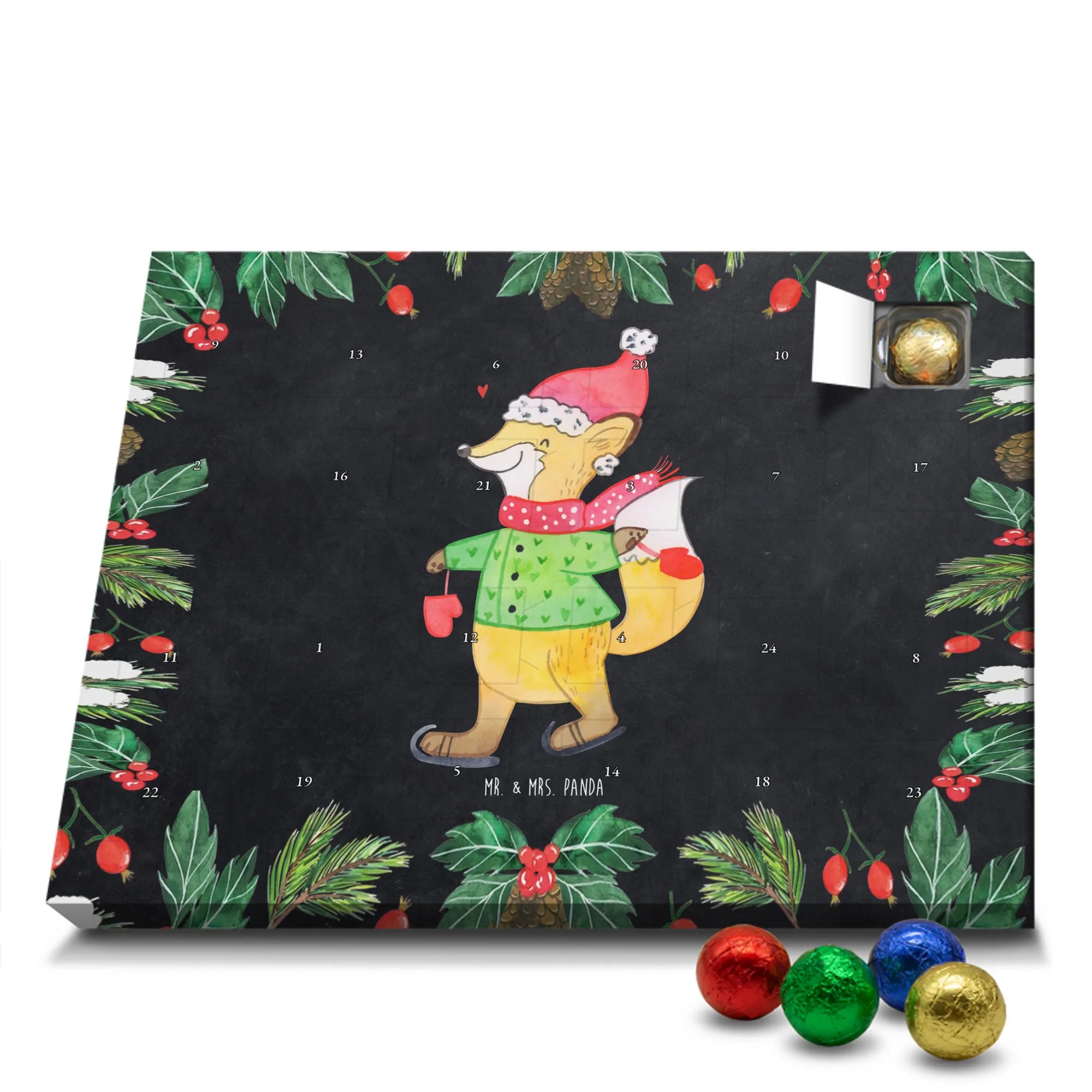Weihnachts Kalender Fuchs Schlittschuhe - Lindt LINDOR - mit Spruch - Kreidetafel