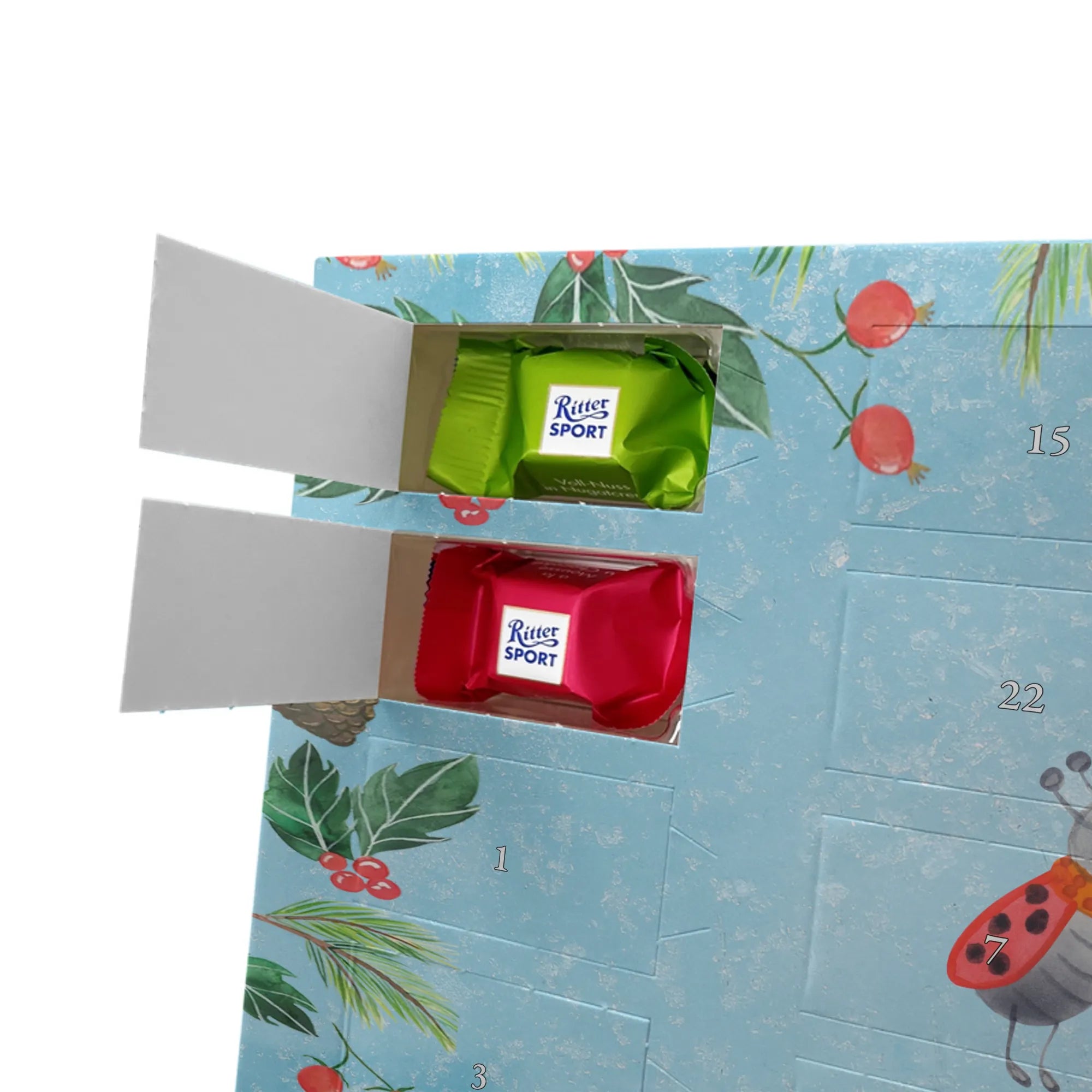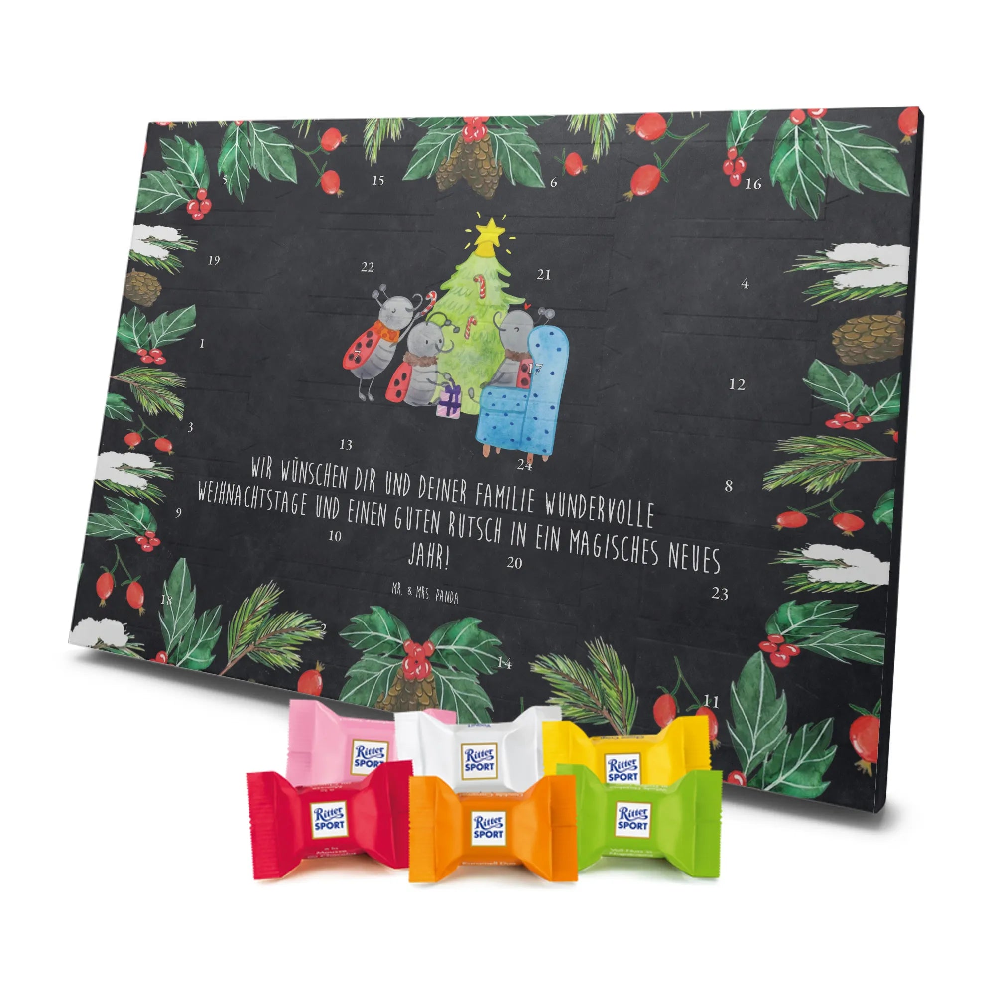 🐼 24 Türchen gefüllt mit Ritter Sport Schokowürfeln – perfekte Adventsüberraschungen.