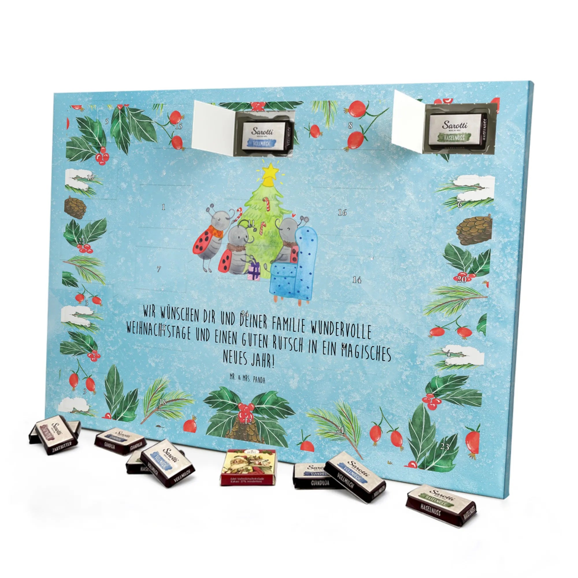 Mach die Adventszeit süßer: Entdecke unseren bedruckten Schokoladen Adventskalender von Mr. & Mrs. Panda und verschenke täglich Freude!