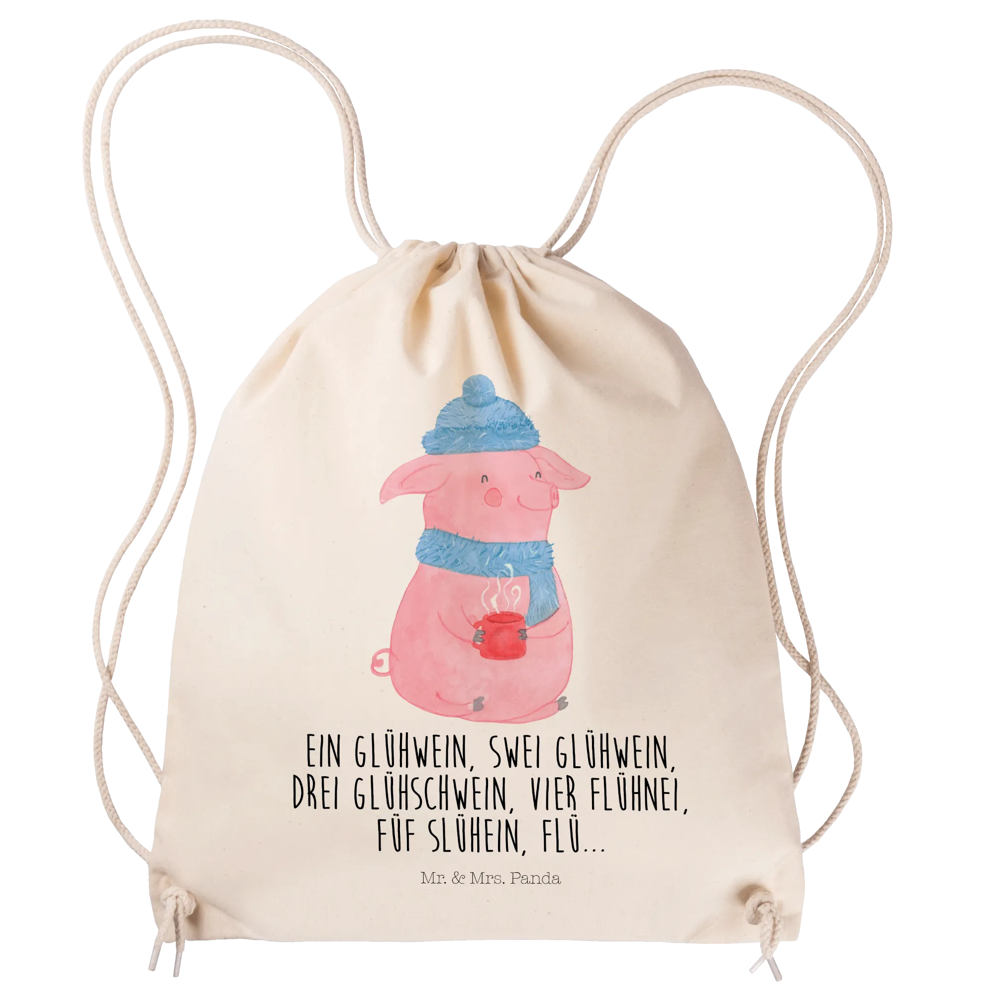 Der Sportbeutel Lallelndes Glühschwein von Mr. & Mrs. Panda ist das perfekte Geschenk für die kalte Jahreszeit und ein ständiger Begleiter bei all deinen sportlichen Aktivitäten! Hochwertig bedruckt mit dem niedlichen Motiv eines anthropomorphen Schweins, das fröhlich mit einer heißen Tasse Glühwein strahlt, bringt er nicht nur Freude, sondern ist auch ausgesprochen nützlich.