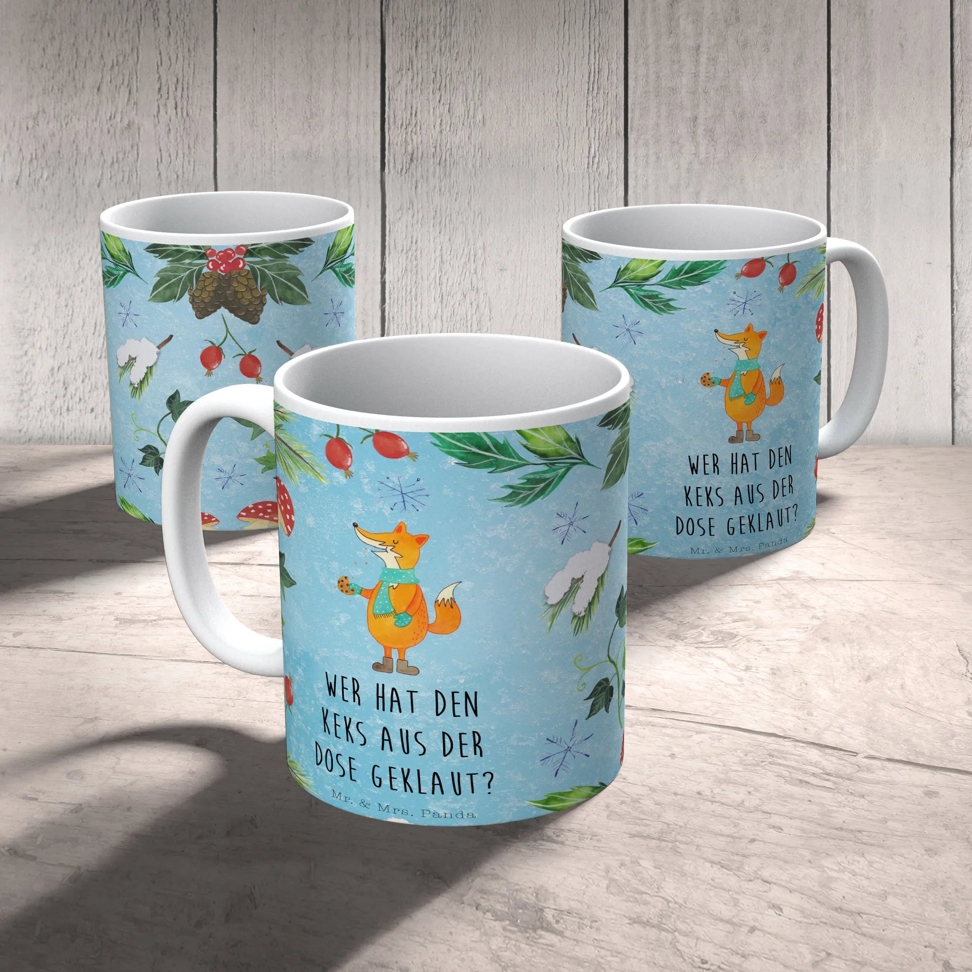 Die wunderschöne Keramiktasse "Fuchs Keksdose" aus der Winter Kollektion von Mr. & Mrs. Panda ist das perfekte Geschenk für die kalte Jahreszeit! Ob für Dich selbst oder zum Verschenken - diese Tasse ist nicht nur functional sondern auch ein echter Hingucker.