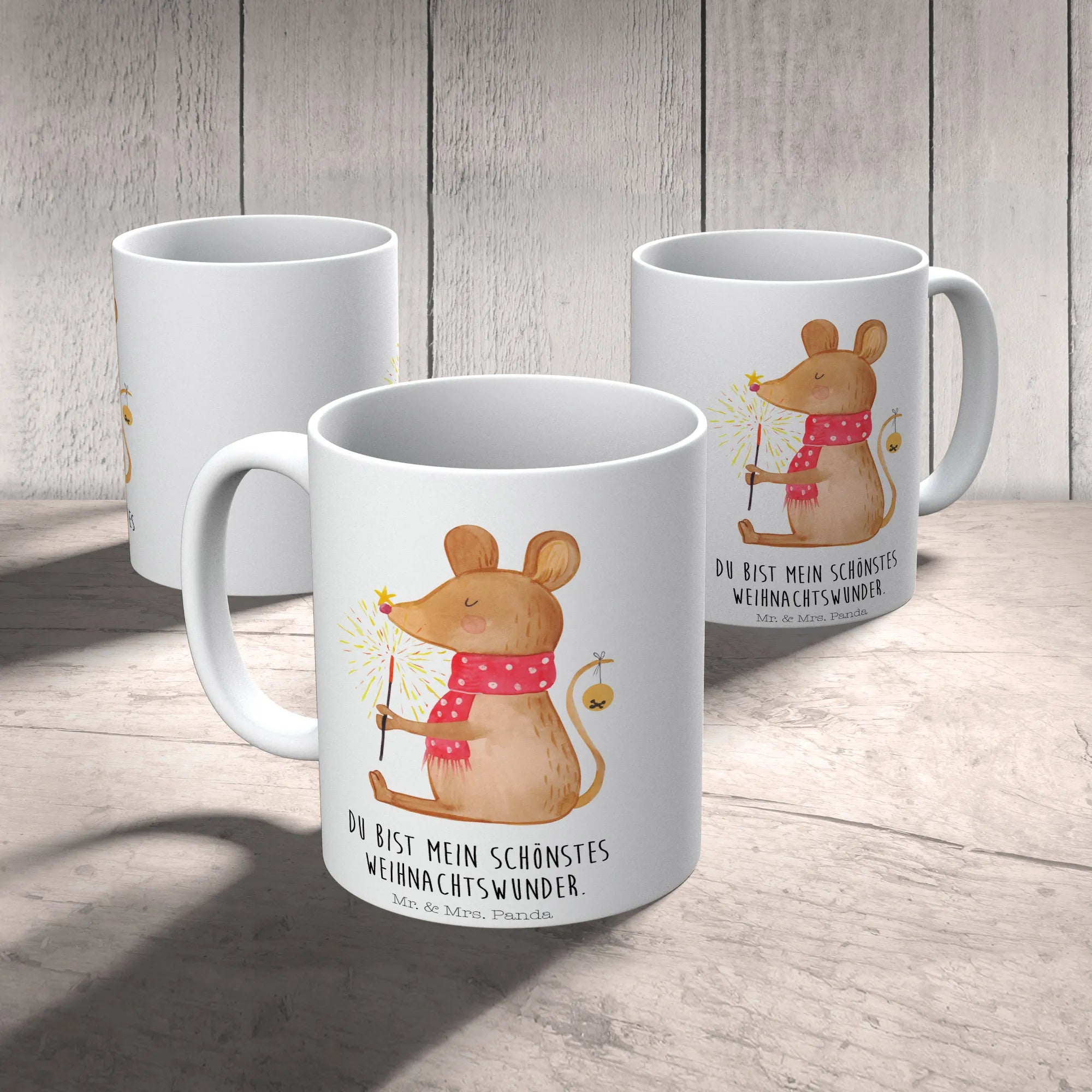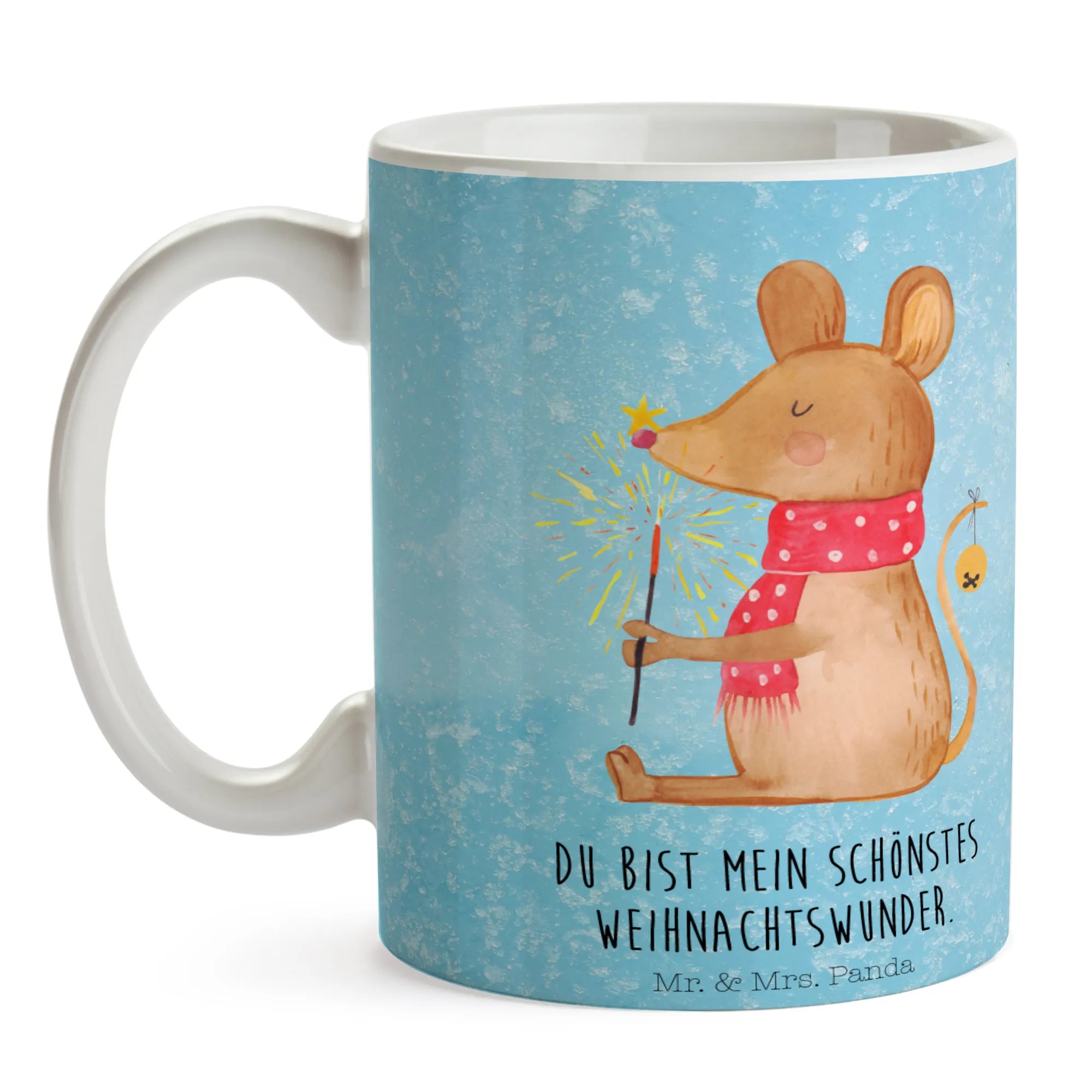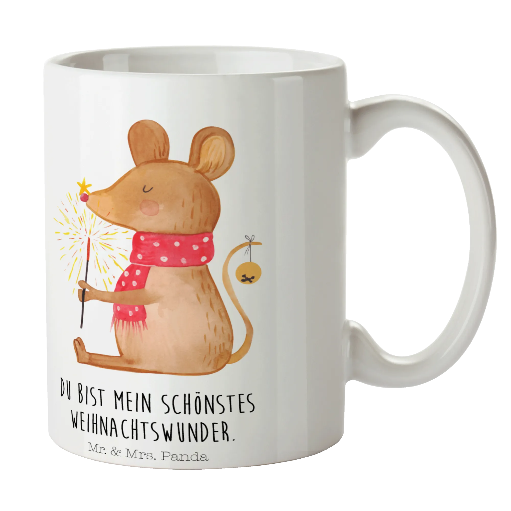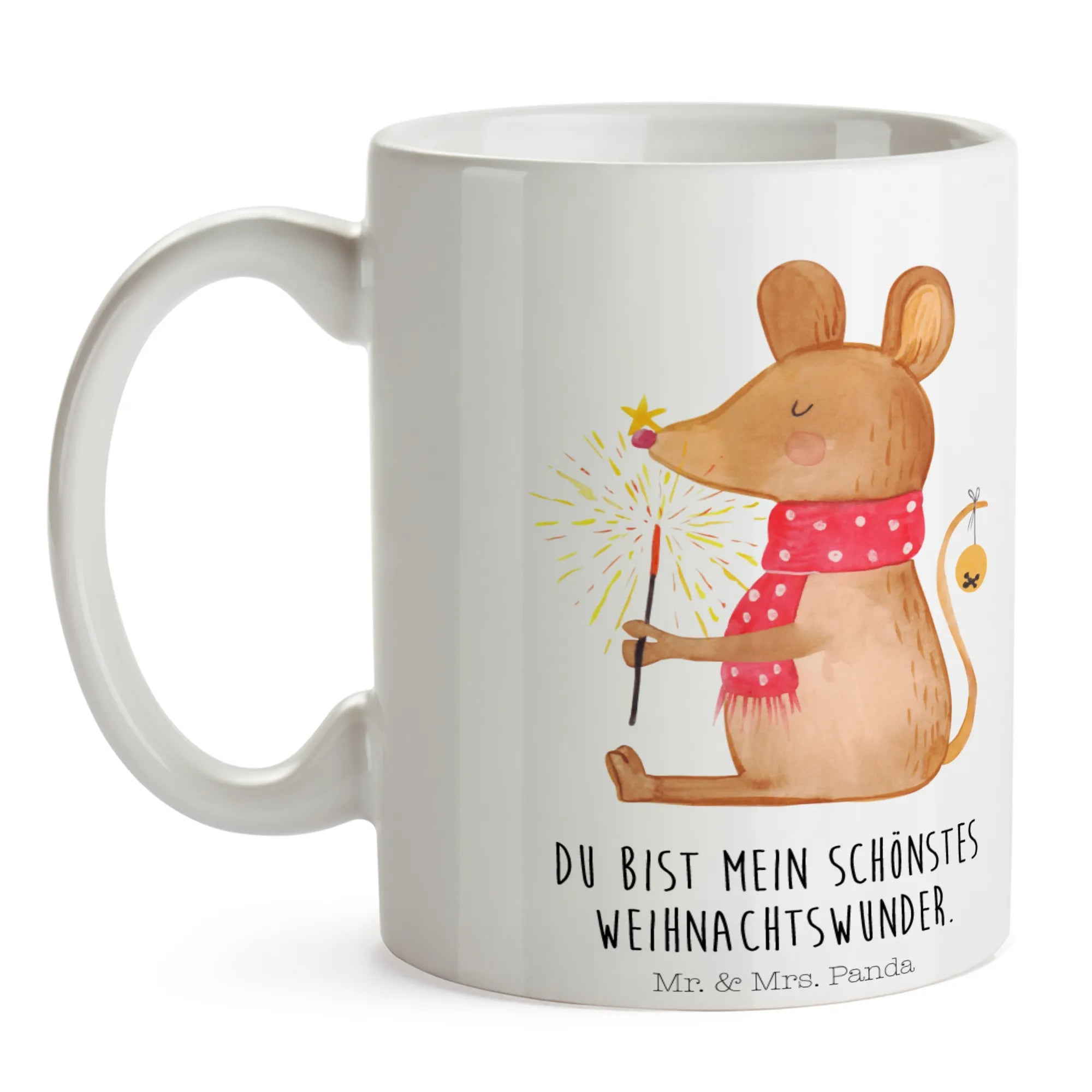 Die bezaubernde Tasse mit dem süßen Weihnachtsmaus-Motiv aus der Winter Kollektion von Mr. & Mrs. Panda ist das perfekte Weihnachtsgeschenk für alle, die die festliche Jahreszeit lieben! Jedes Mal, wenn Du die Tasse in die Hand nimmst, wirst Du an die zauberhaften Momente erinnert, die die Weihnachtszeit so besonders machen. Mit dem liebevollen Spruch 'Du bist mein schönstes Weihnachtswunder' wird jede Tasse zu einem wunderbaren Zeichen der Zuneigung.