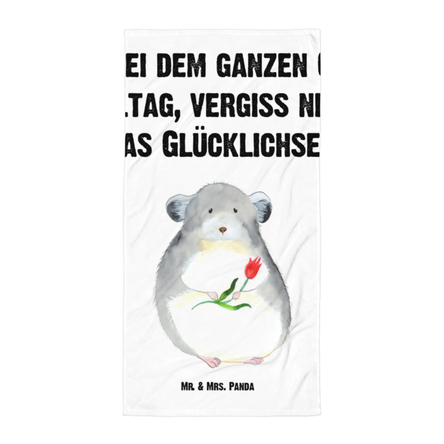 Das XL Badehandtuch "Chinchilla mit Blume" aus der Kollektion Small World von Mr. & Mrs. Panda ist das perfekte Geschenk für alle Tierfreunde und Menschen, die im Büroalltag nach einem Hauch von Freude und Glücklichsein suchen. Mit seinen großzügigen Maßen von 1520 mm x 760 mm begeistert es nicht nur durch die flauschige Haptik, sondern auch durch ein bezauberndes Design, das die Herzen im Sturm erobert.