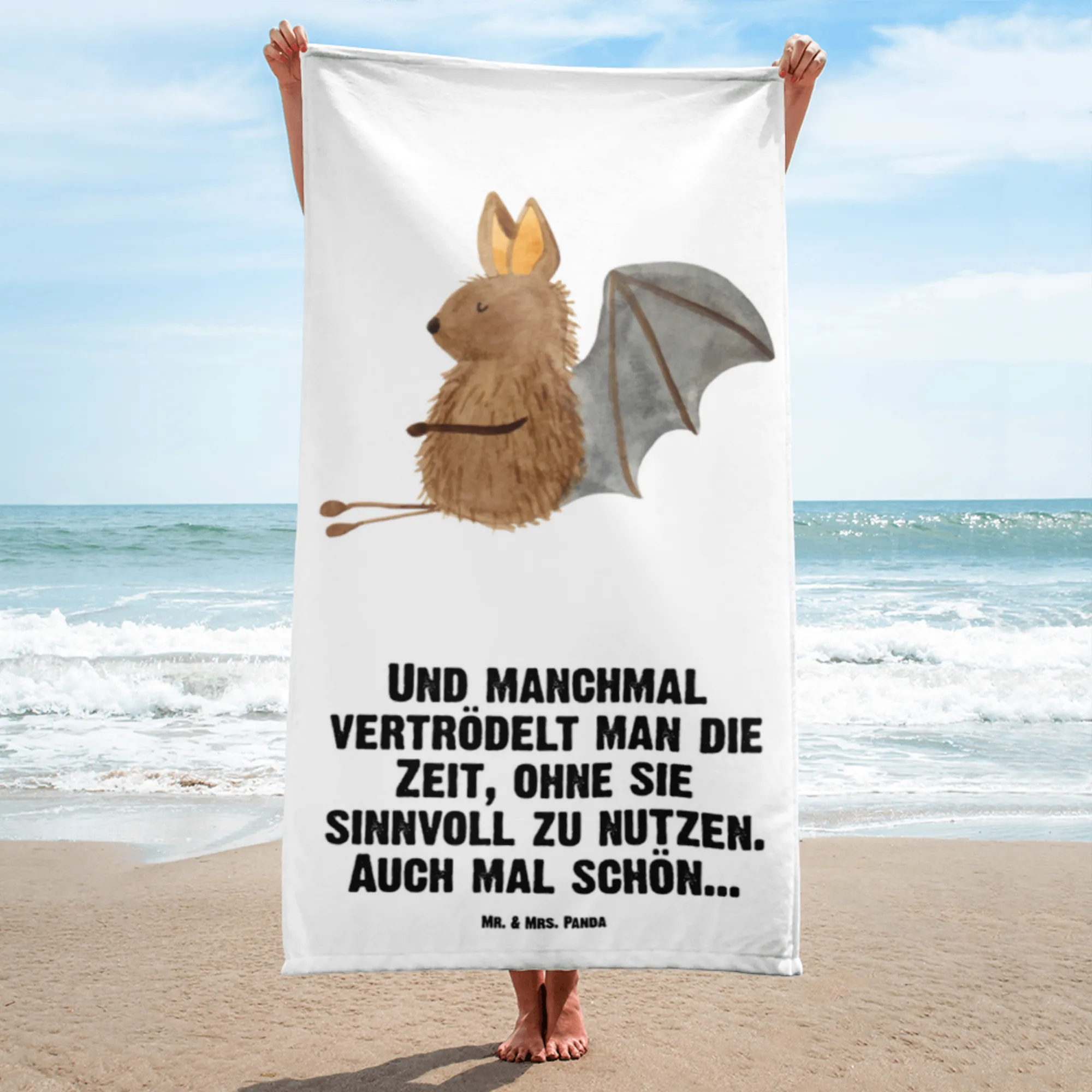 XL Badehandtuch Fledermaus Sitzen - mit Spruch - Weiß