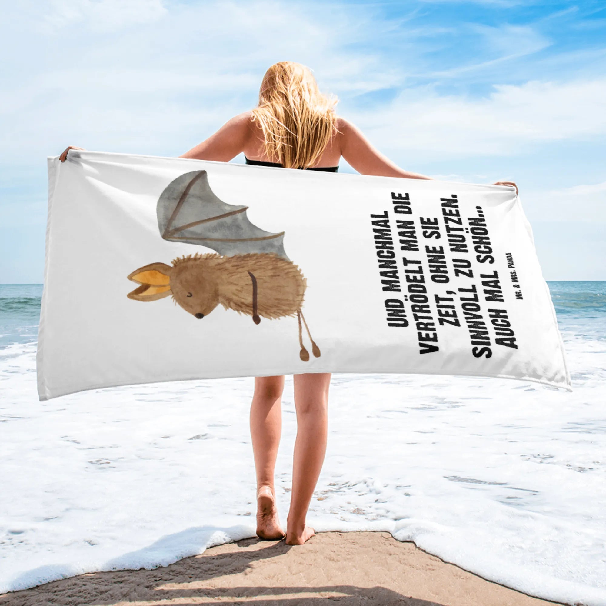 Die süße Fledermaus auf dem Handtuch ist nicht nur ein niedliches Motiv, sondern drückt auch eine positive Botschaft aus: 'Und manchmal vertrödelt man die Zeit, ohne sie sinnvoll zu nutzen. Auch mal schön...'. Dieses Handtuch ist schnell zu einem echten Blickfang bei jedem Ausflug.