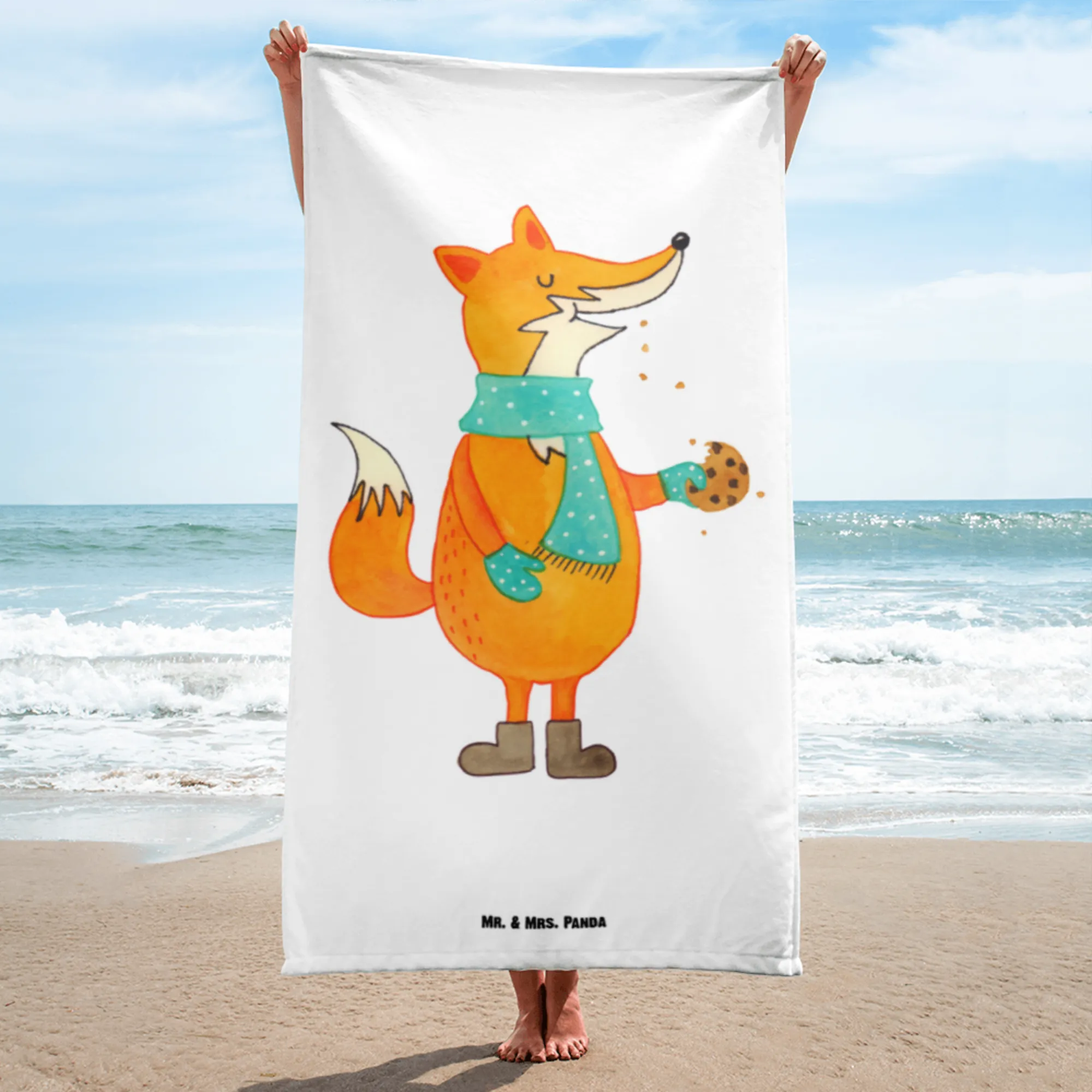 Mr. & Mrs. Panda präsentieren: Das XL Badehandtuch „Fuchs Keks“ – ein fröhlicher Begleiter für Bad, Sauna und Strand. Das niedliche Fuchs-Motiv mit dem liebevollen Spruch „Kekse bestehen aus Butter, Mehl und Liebe!“ verbreitet sofort Wohlfühlstimmung – ideal zur Weihnachtszeit, für Bäckerinnen und Bäcker oder als süßes Geschenk.