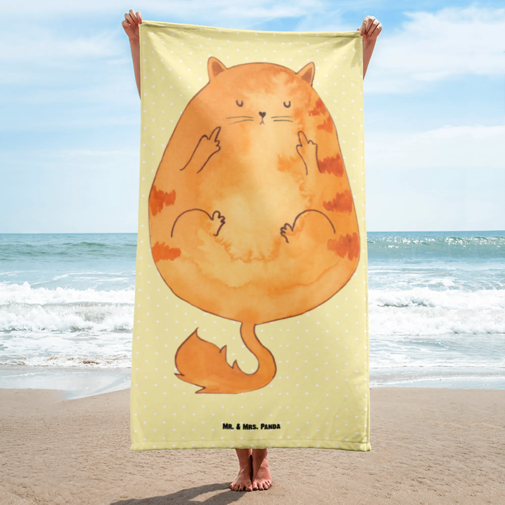 Mr. & Mrs. Panda präsentiert: Das XL Badehandtuch "Katze Frühaufsteher" – das freche Must-have für alle Katzenfans und Morgenmuffel! 😺☕