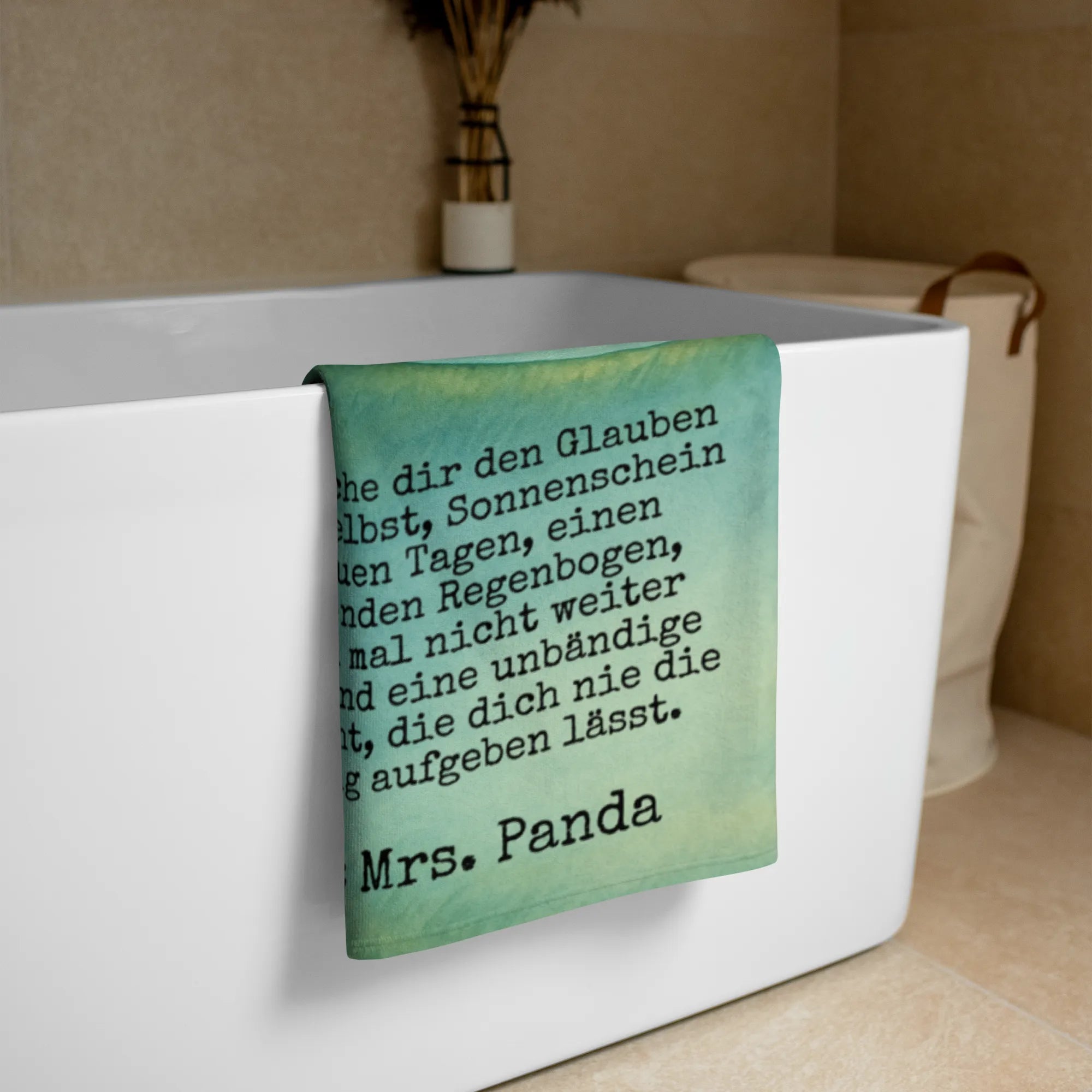 Kuschel dich ein in unser wunderschönes XL Badehandtuch von Mr. & Mrs. Panda! Mit großzügigen Maßen von 1520 mm x 760 mm bietet es dir reichlich Platz zum Entspannen nach einem spritzigen Tag im Wasser. Hergestellt aus luxuriösem Baumwollfrottee, ist es ebenso weich wie saugfähig. Der perfekt bedruckte, fröhliche Design bringt Farbe in deinen Alltag, ob am Strand, im Schwimmbad oder in der Sauna. Die Rückseite besteht aus hochwertiger Baumwolle, die dir einen schnellen und angenehmen Trocknungseffekt garantiert. Zudem kannst du das Handtuch ganz einfach bei 30°C in der Maschine waschen – es bleibt immer frisch und leuchtend in der Farbe. Dieses Handtuch ist ein müssen haben für jeden, der das besonderen Flair von Mr. & Mrs. Panda genießen möchte.