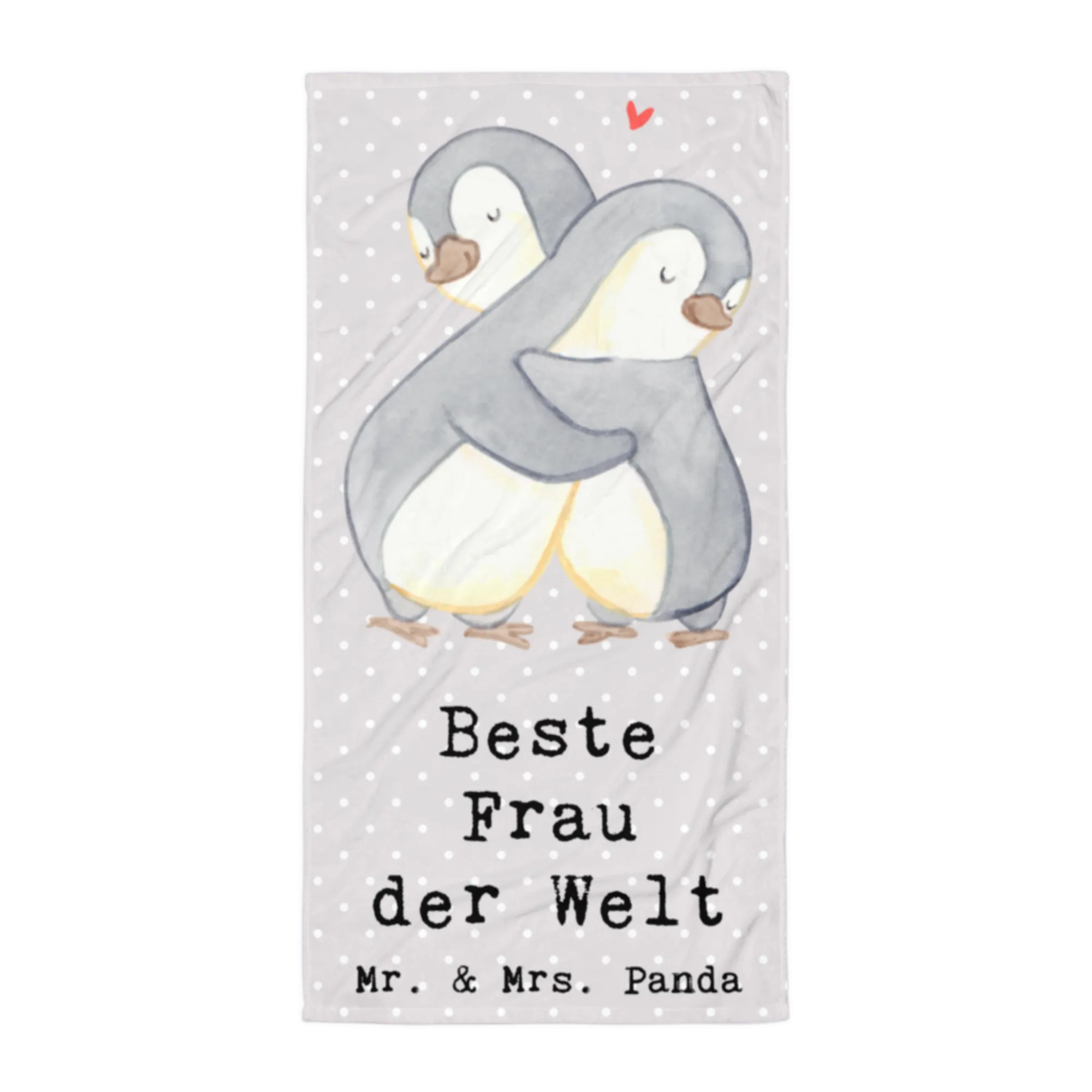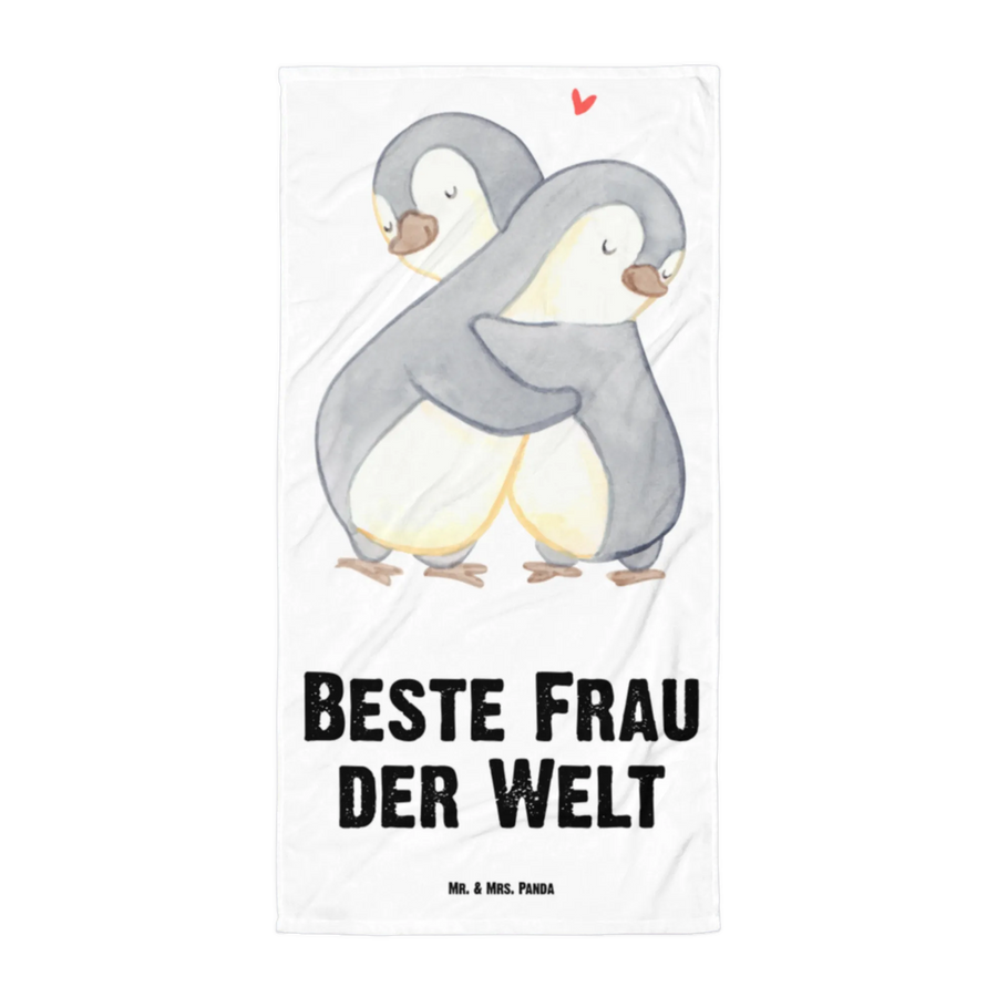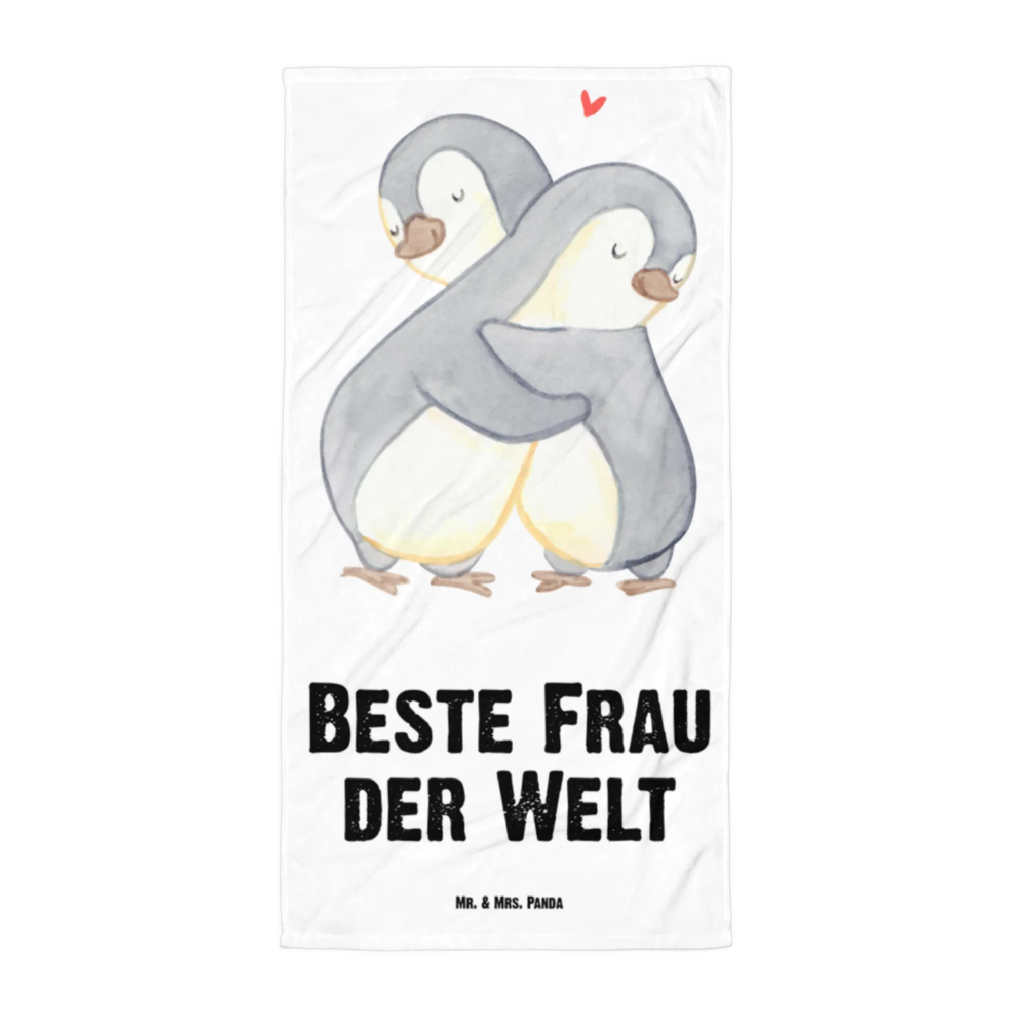 Das XL Badehandtuch "Pinguin Beste Frau der Welt" von Mr. & Mrs. Panda ist das perfekte Geschenk für deine Lieblingsfrau, die du gerne verwöhnen möchtest. Ob zum Geburtstag, zur Hochzeit oder einfach nur so zwischendurch – mit diesem handgezeichneten Prinz und seiner Prinzessin in Form niedlicher Pinguine machst du ihr eine ganz besondere Freude.