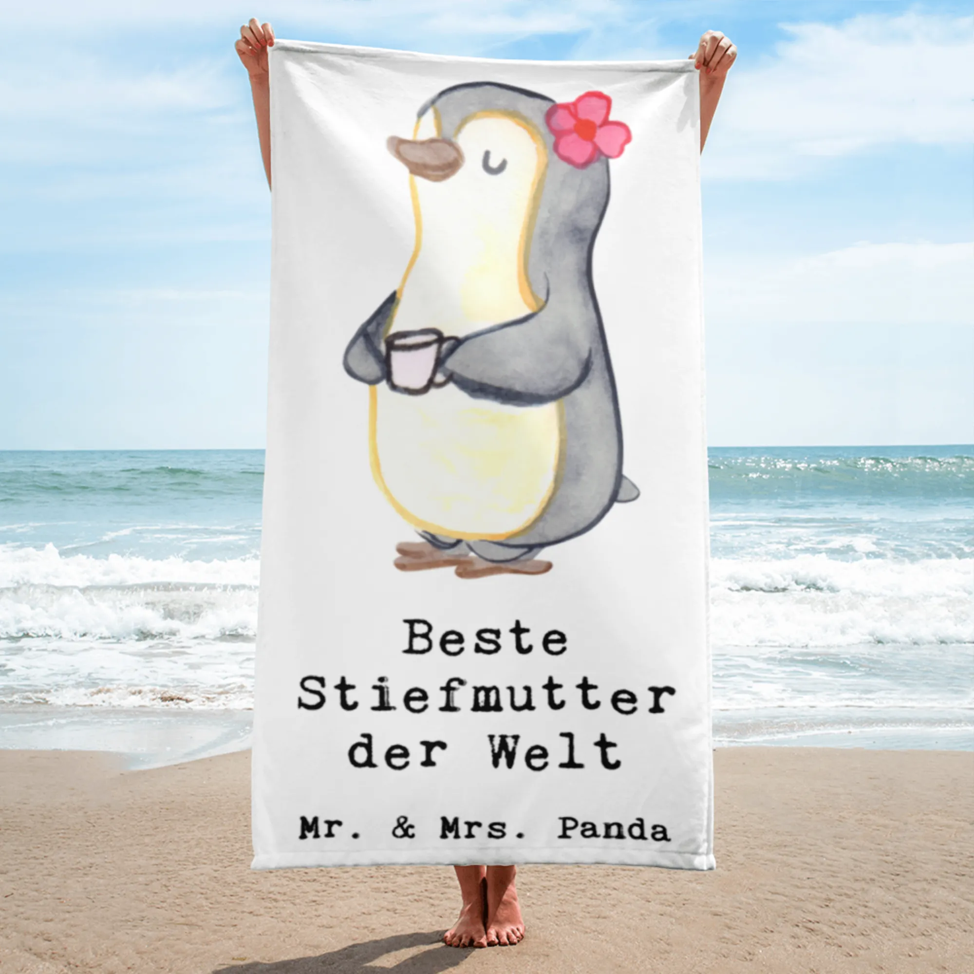 XL Badehandtuch Pinguin Beste Stiefmutter der Welt - Weiß