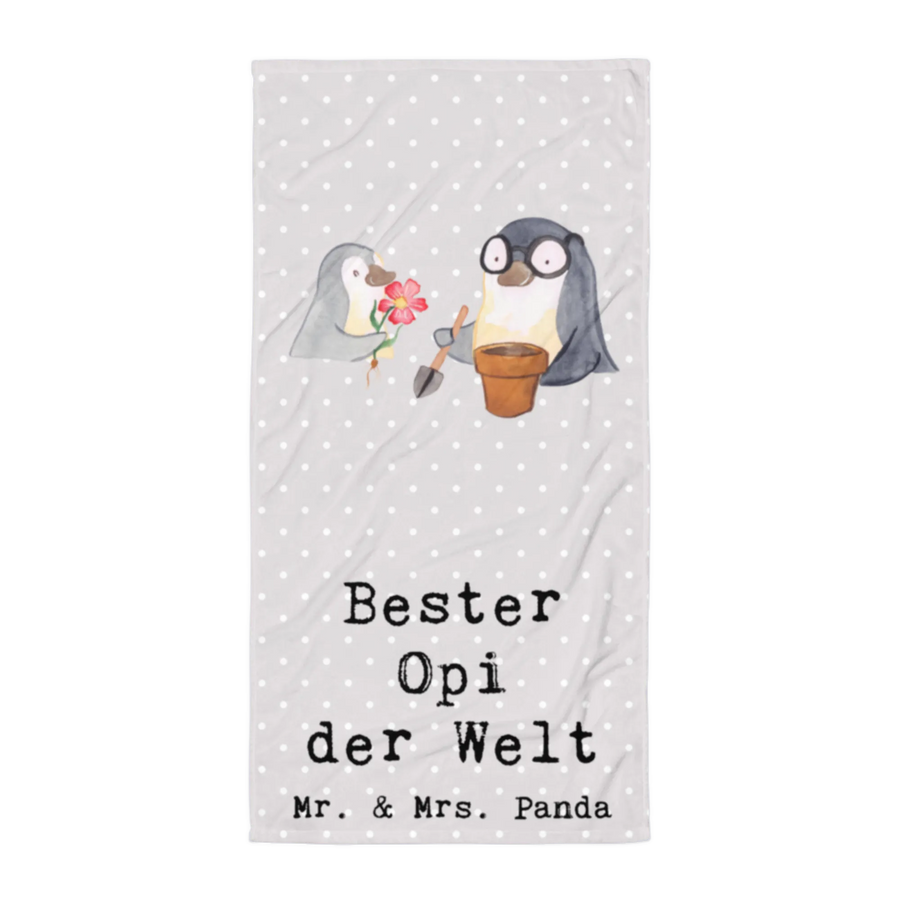 Das XL Badehandtuch mit dem süßen Pinguin-Motiv "Bester Opi der Welt" von Mr. & Mrs. Panda ist nicht nur ein praktisches Accessoire für den Strand oder die Sauna, sondern auch ein liebevolles Geschenk für deinen Großvater.