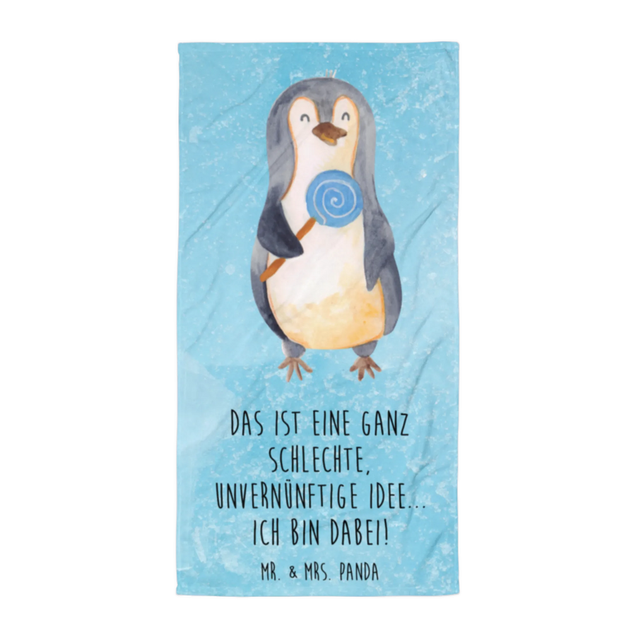 XL Badehandtuch Pinguin Lolli - mit Spruch - Eisblau