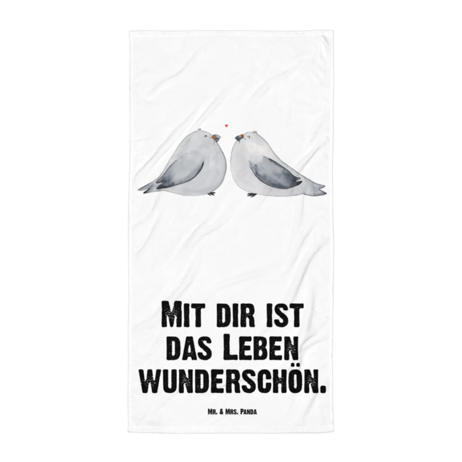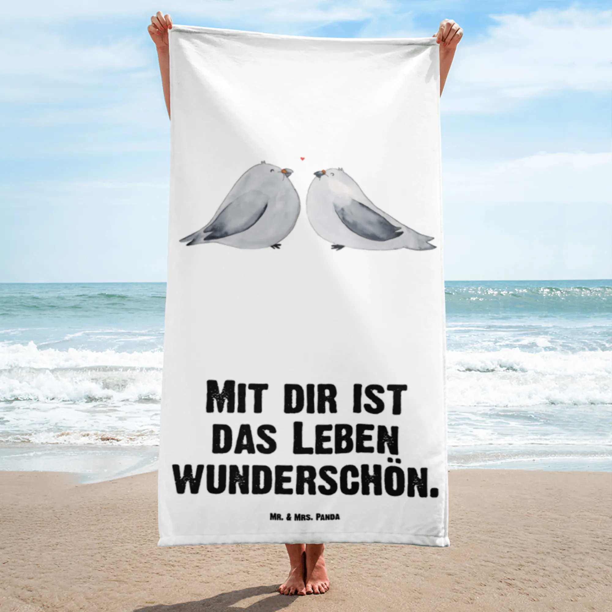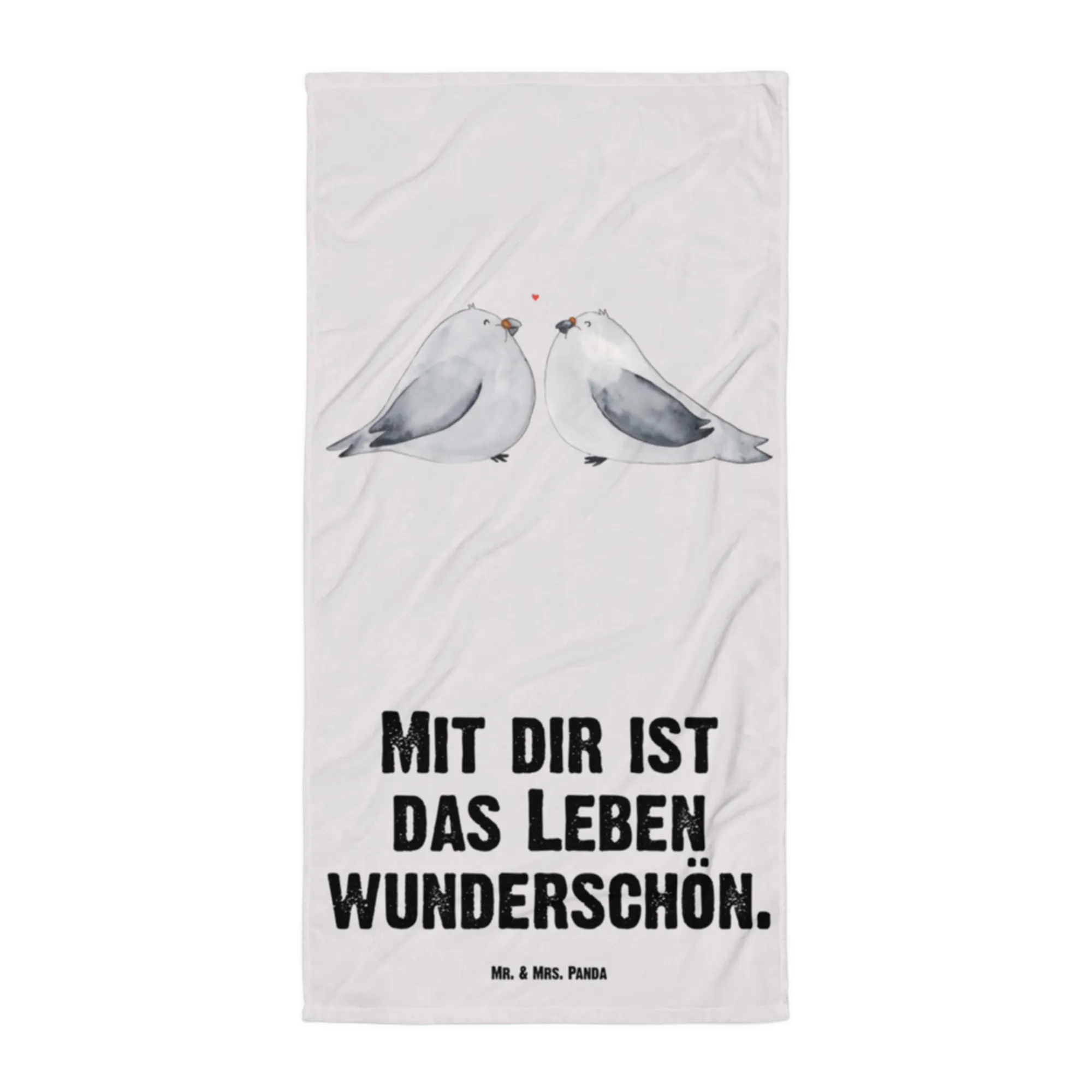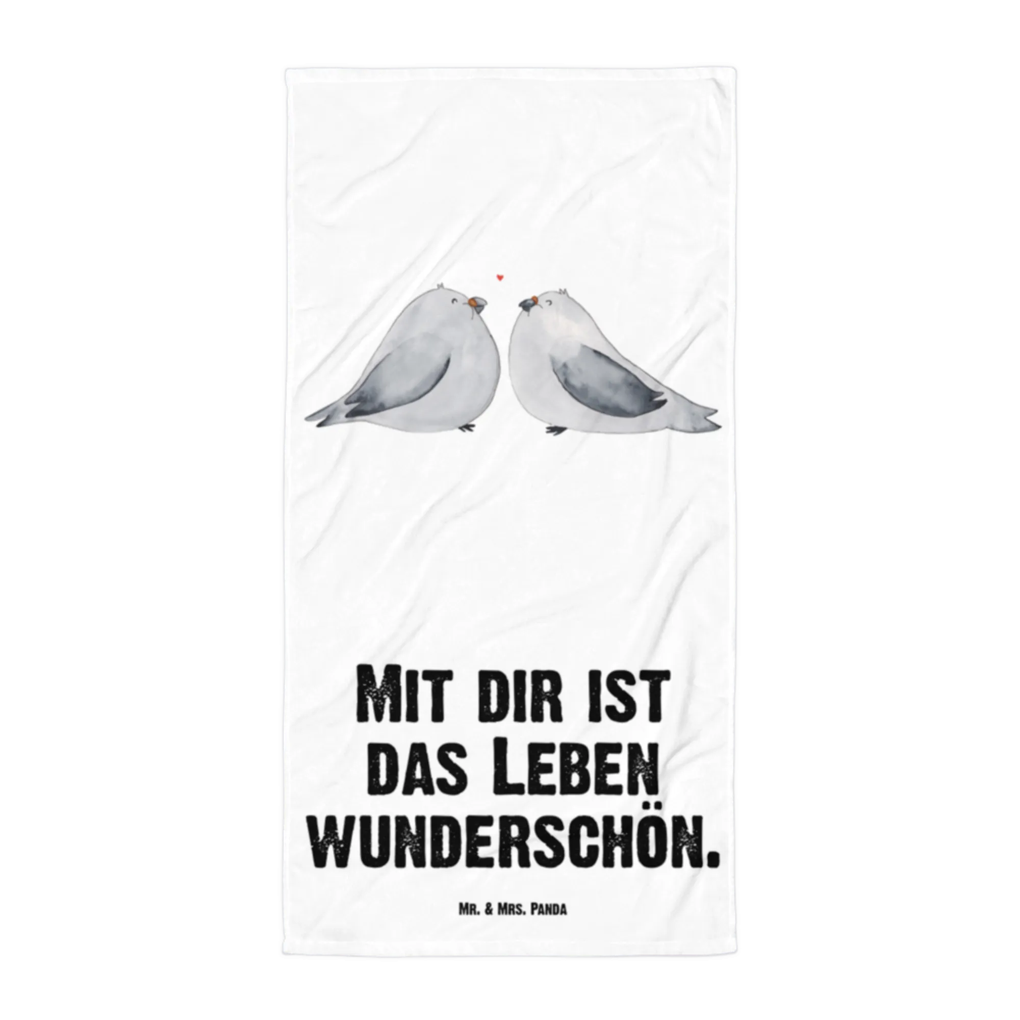 XL Badehandtuch Turteltauben Liebe - mit Spruch - Weiß