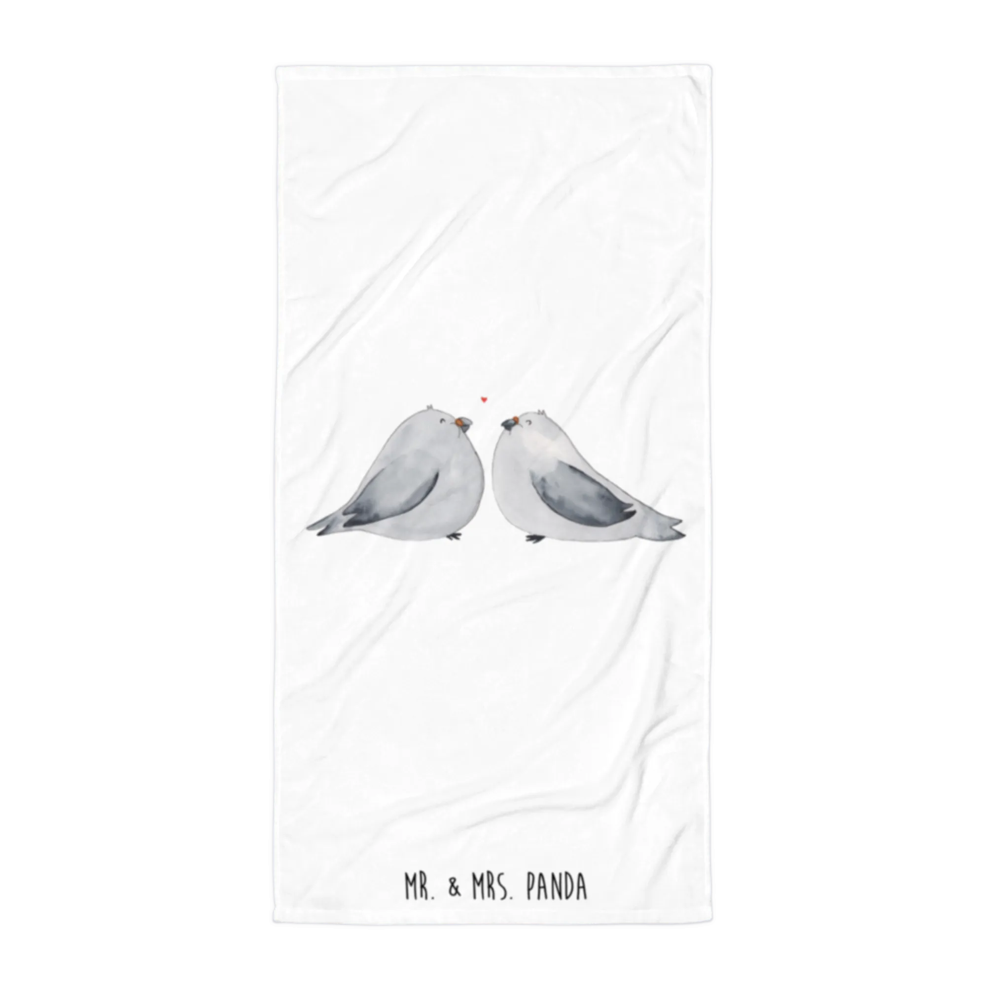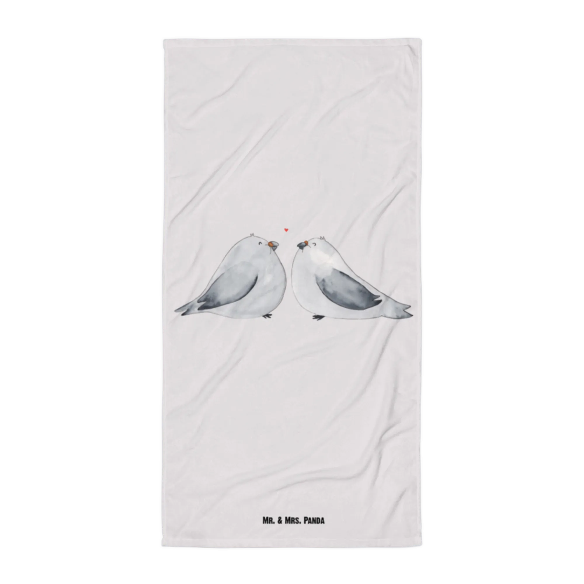 Das XL Badehandtuch Turteltauben Liebe von Mr. & Mrs. Panda ist der perfekte Begleiter für alle, die das Leben und die Liebe in vollen Zügen genießen wollen! ❤️ Mit seinen großzügigen Maßen von 1520 mm x 760 mm liegt es kuschelig weich auf der Haut und ist der ideale Partner für einen Tag am Strand, im Schwimmbad oder in der Sauna.