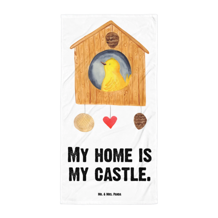 XL Badehandtuch Vogel Haus - mit Spruch - Weiß