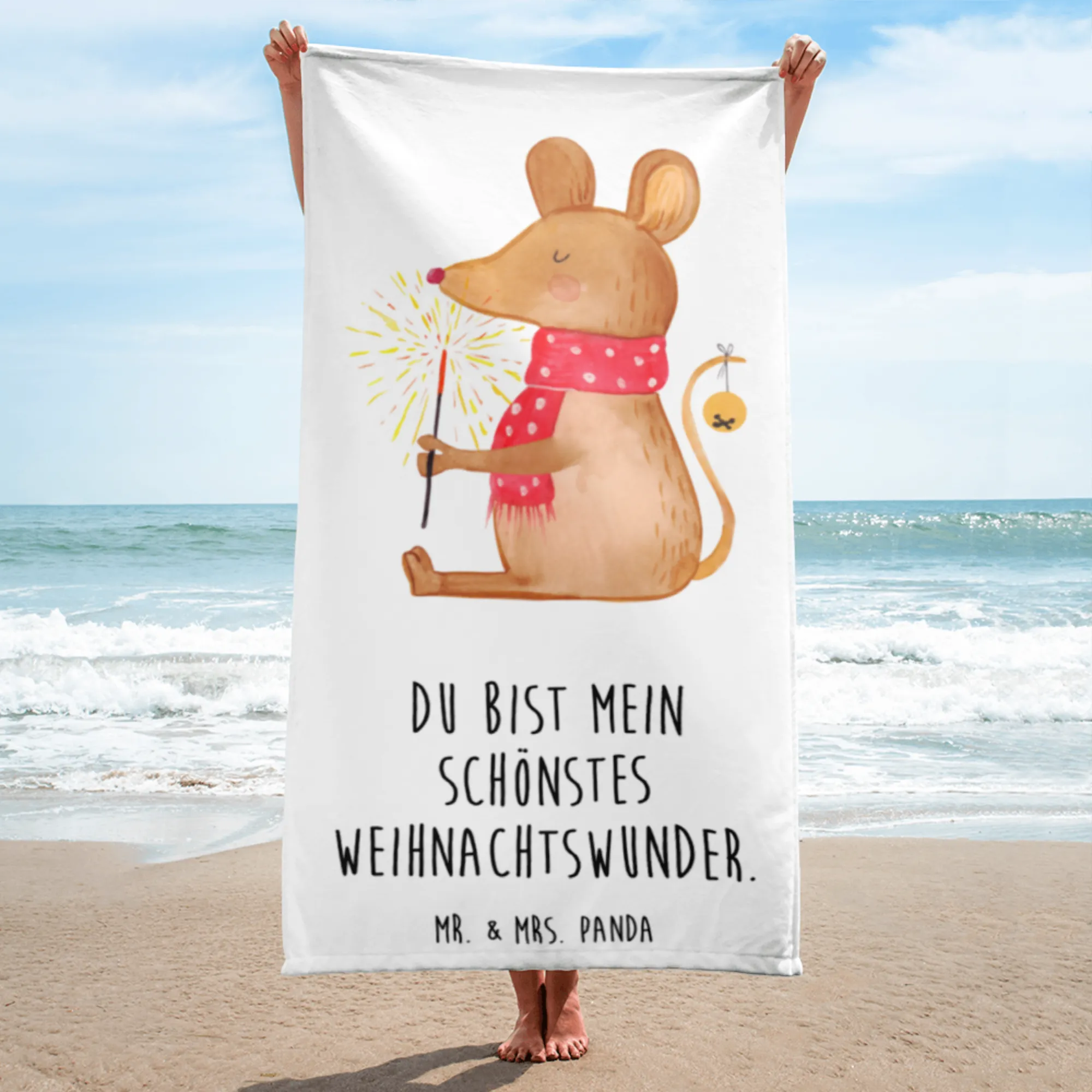 Das XL Badehandtuch "Weihnachtsmaus" aus der Winter Kollektion von Mr. & Mrs. Panda ist nicht nur ein Handtuch, sondern ein echtes Weihnachtswunder! Mit den Maßen 1520 mm x 760 mm bietet es dir ausreichend Platz, um es am Strand, im Schwimmbad oder in der Sauna zu nutzen. Die Rückseite aus hochwertigem Baumwollfrottee sorgt für eine hervorragende Saugfähigkeit, während die Vorderseite mit einem bunten und strahlenden Weihnachtsmotiv bedruckt ist.