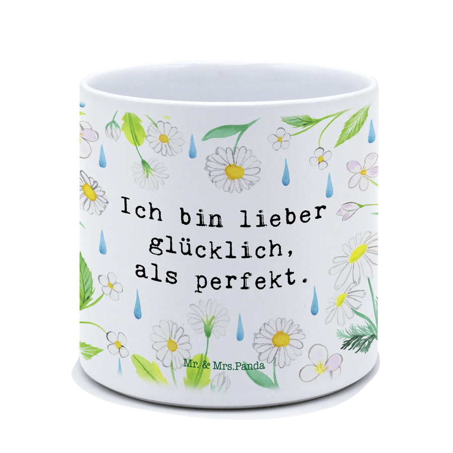 Ob Blumen, Kräuter oder andere Pflanzen – mit unserem XL Blumentopf "Lieber glücklich als perfekt" schaffst du dir deinen eigenen kleinen Abenteuergarten! Lass die Natur in dein Leben und genieße die positive Energie, die von den Pflanzen und diesem besonderen Blumentopf ausgeht. Schaffe mit Mr. & Mrs. Panda deinen eigenen Rückzugsort im Freien, wo du die Seele baumeln lassen kannst!