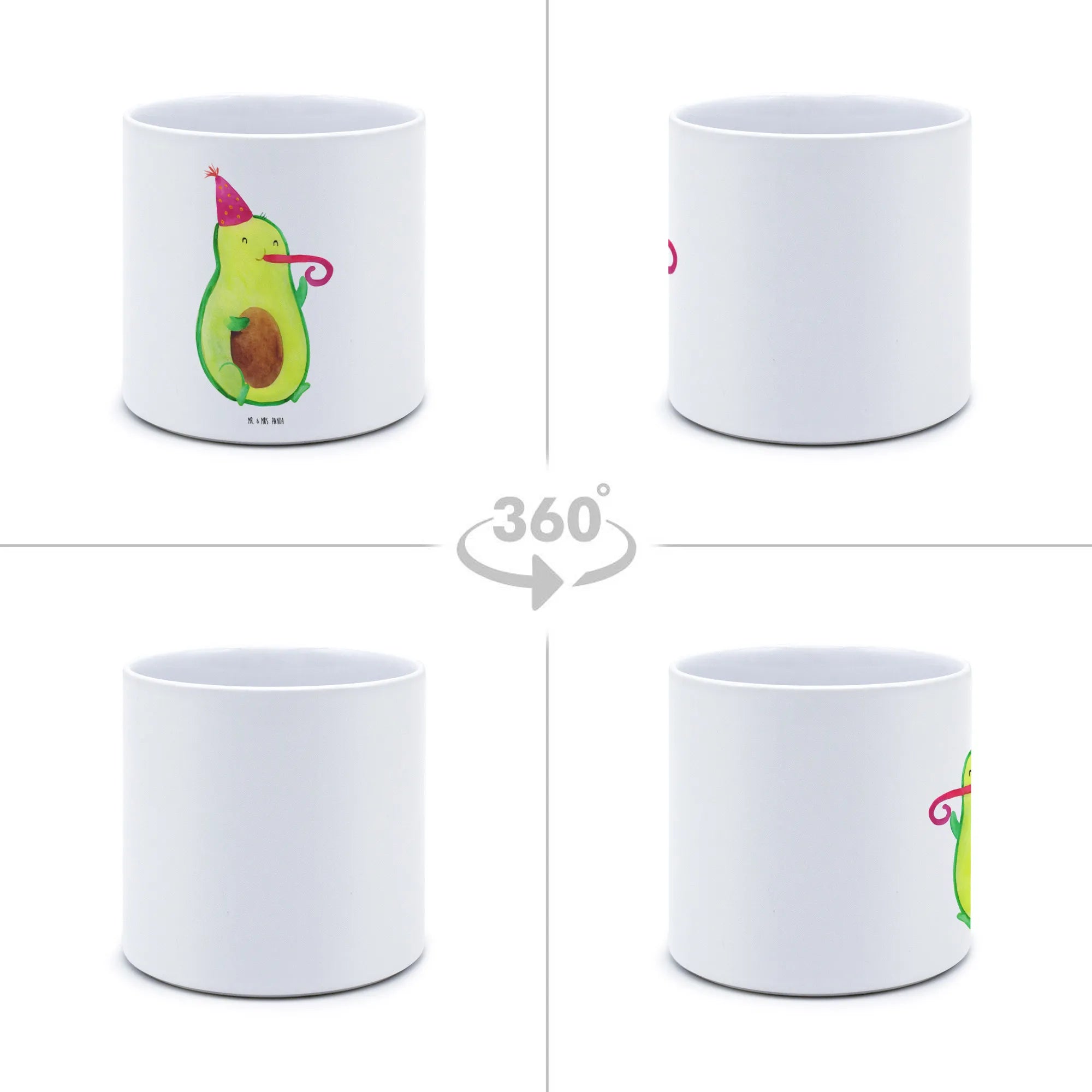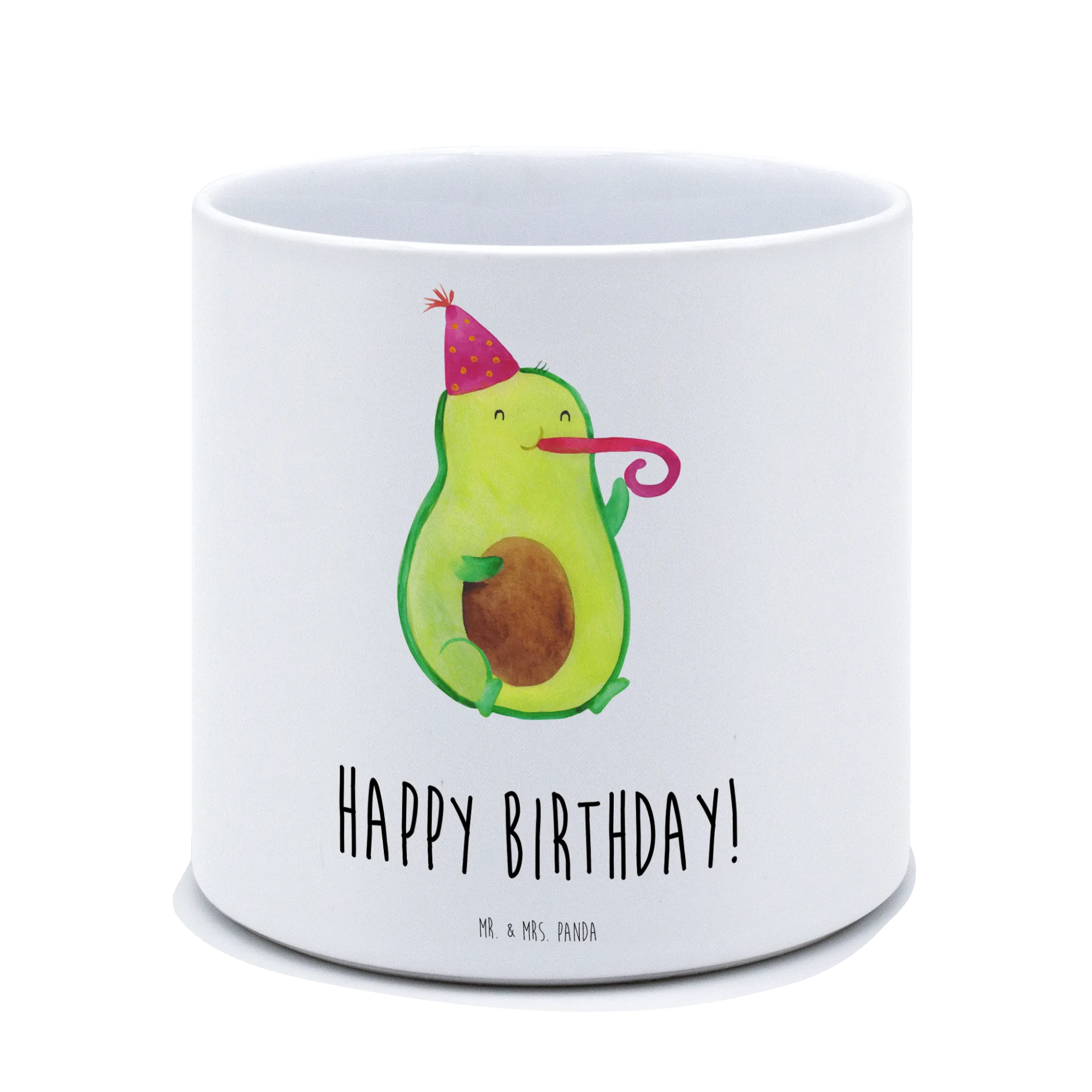 Der XL Blumentopf mit dem süßen Motiv "Avocado Birthday" aus der Avocado Kollektion von Mr. & Mrs. Panda ist das perfekte Geschenk für alle Avocado-Liebhaber und Pflanzenfreunde. Ob du nun einen lieben Menschen an seinem Geburtstag überraschen möchtest oder einfach nur jemandem eine Freude bereiten möchtest – dieser Blumentopf bringt garantiert ein Lächeln auf die Gesichter!