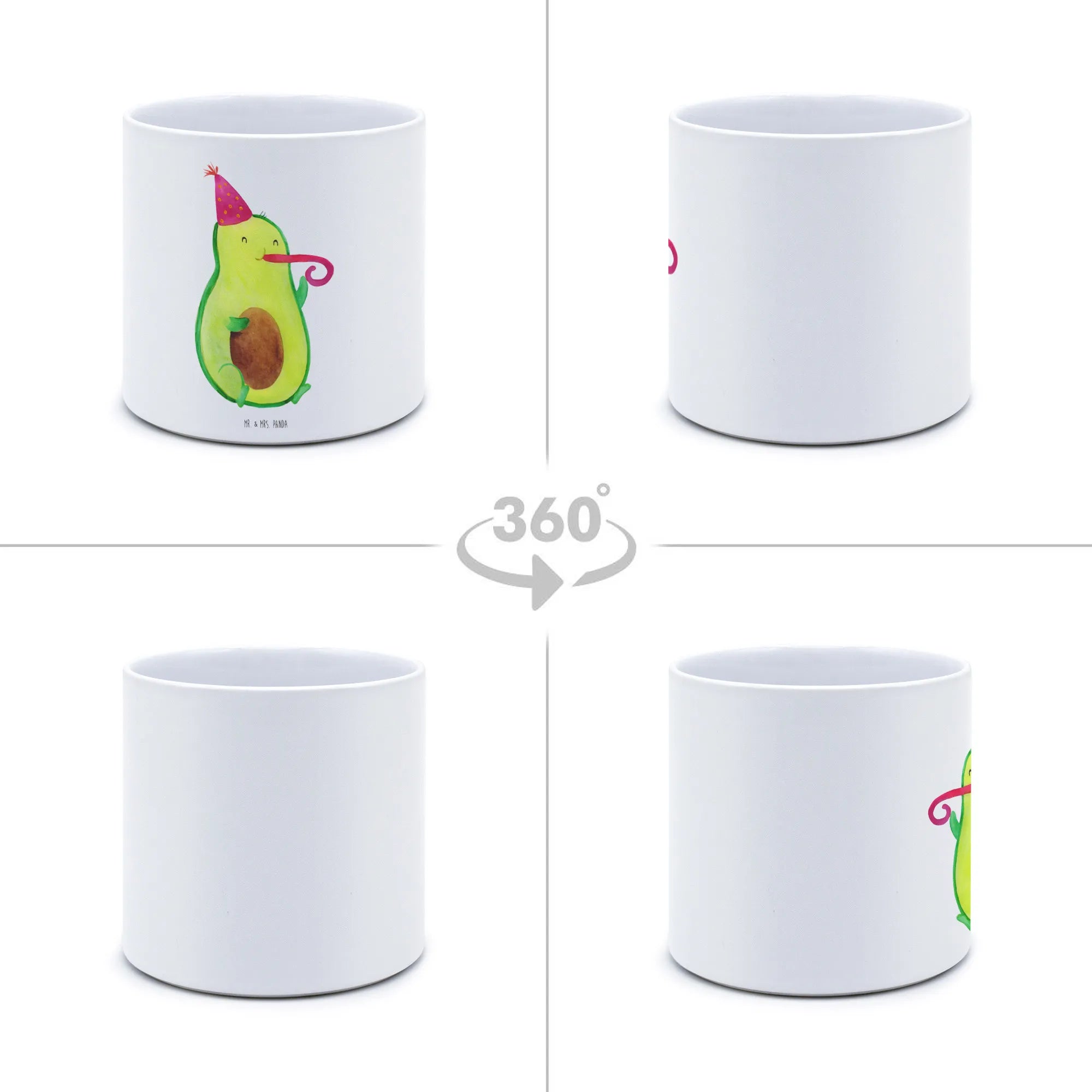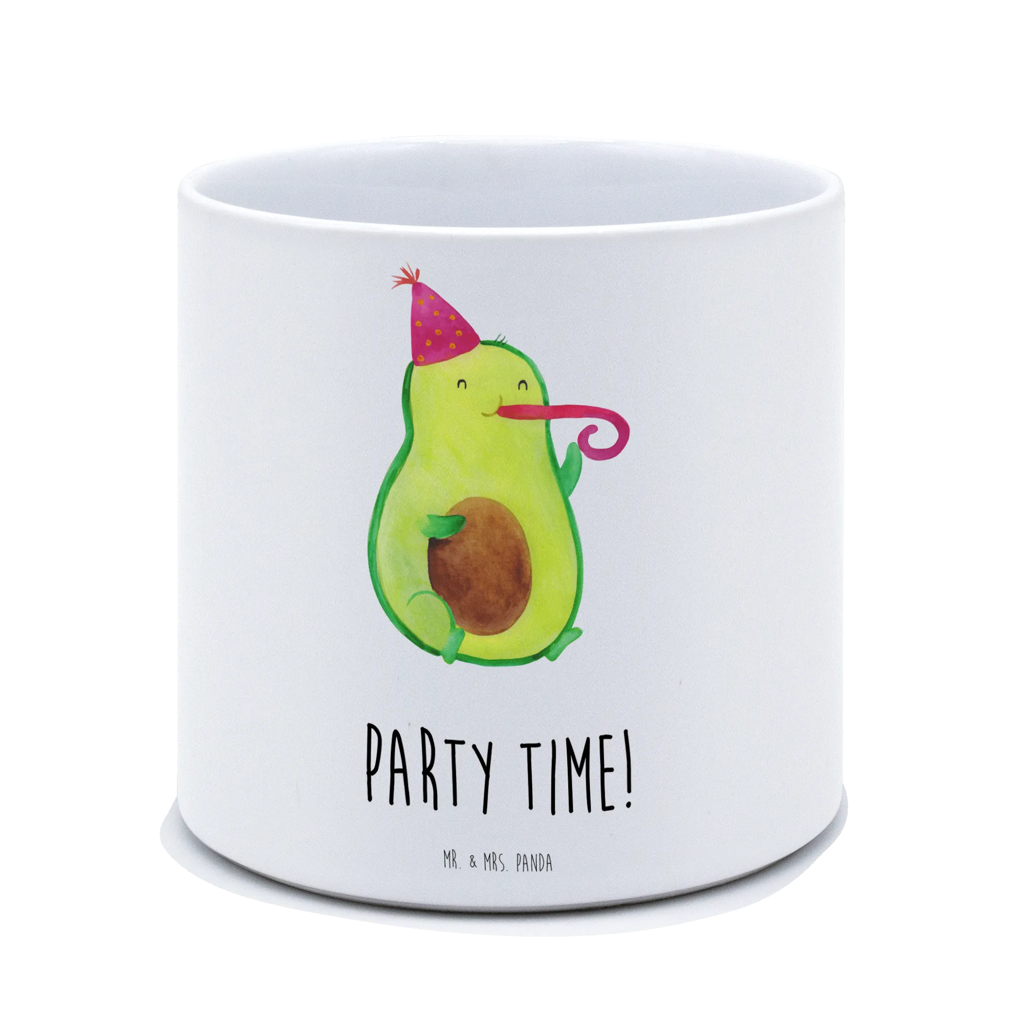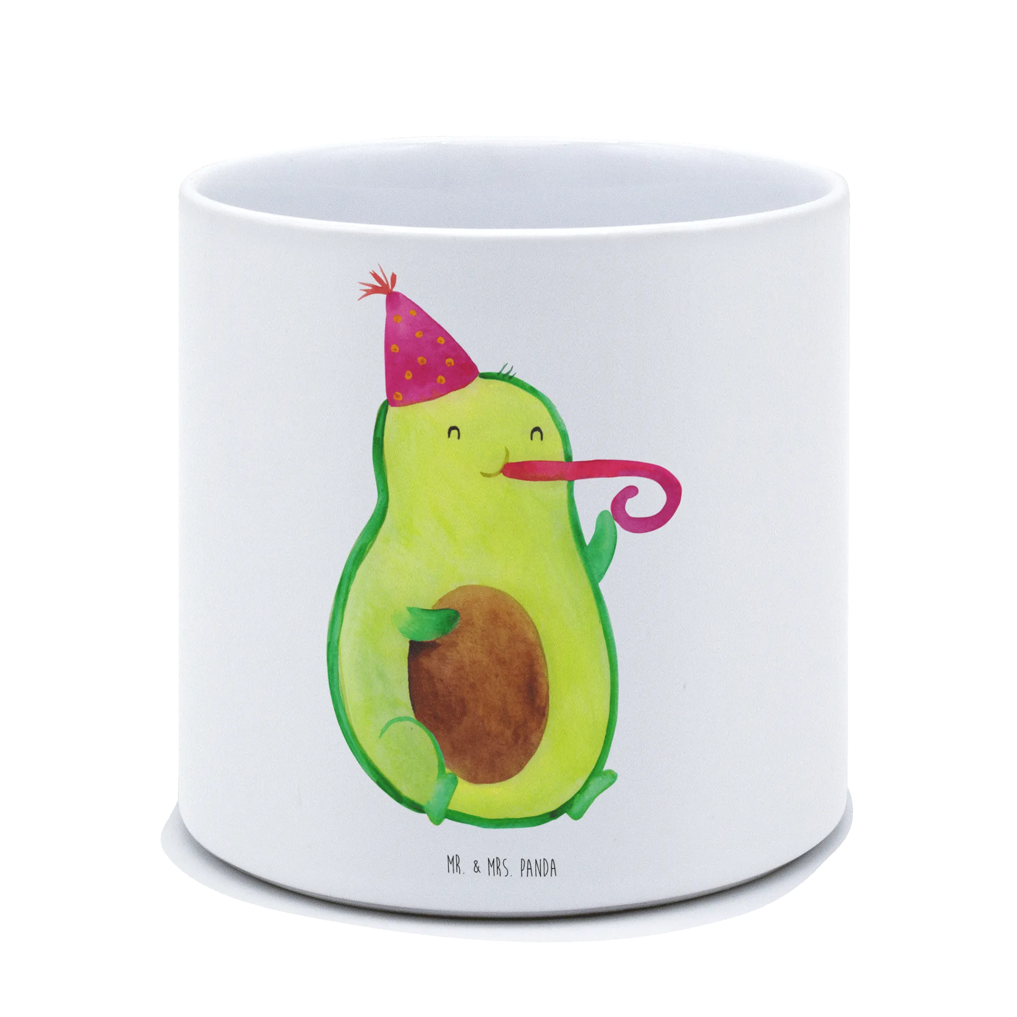 Das niedliche Motiv einer Avocado, die einen Partyhut trägt und in eine Partypfeife pustet, bringt sofort gute Laune und macht jeden Raum einladend. Unser Blumentopf passt perfekt auf die Fensterbank, den Balkon oder die Terrasse. Die Avocado Kollektion von Mr. & Mrs. Panda zeigt, wie schön und positiv das Leben sein kann. Ob als Geschenk für einen Geburtstag, zum Einzug oder einfach nur, um jemandem eine Freude zu machen – dieser Blumentopf wird mit Sicherheit für strahlende Gesichter sorgen.