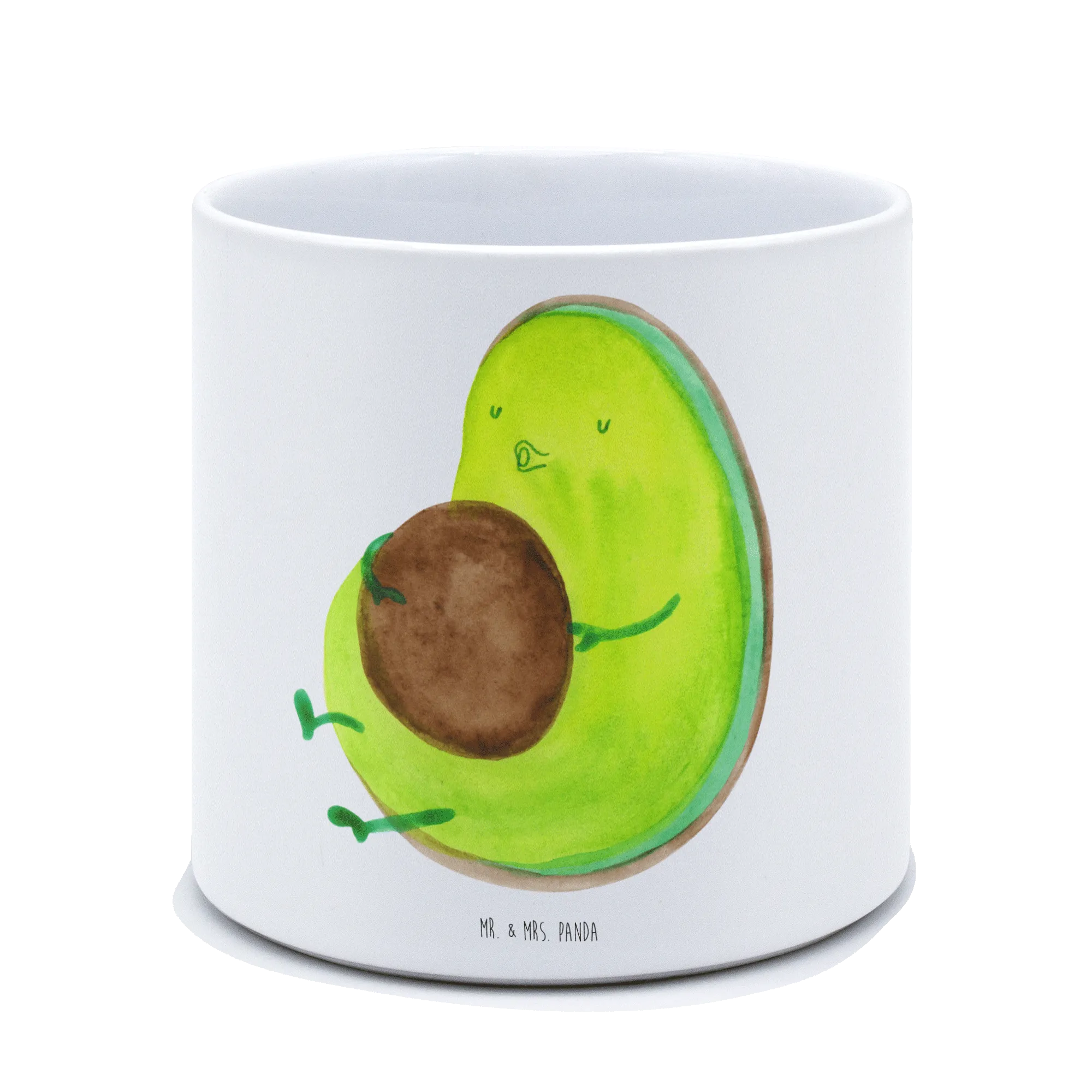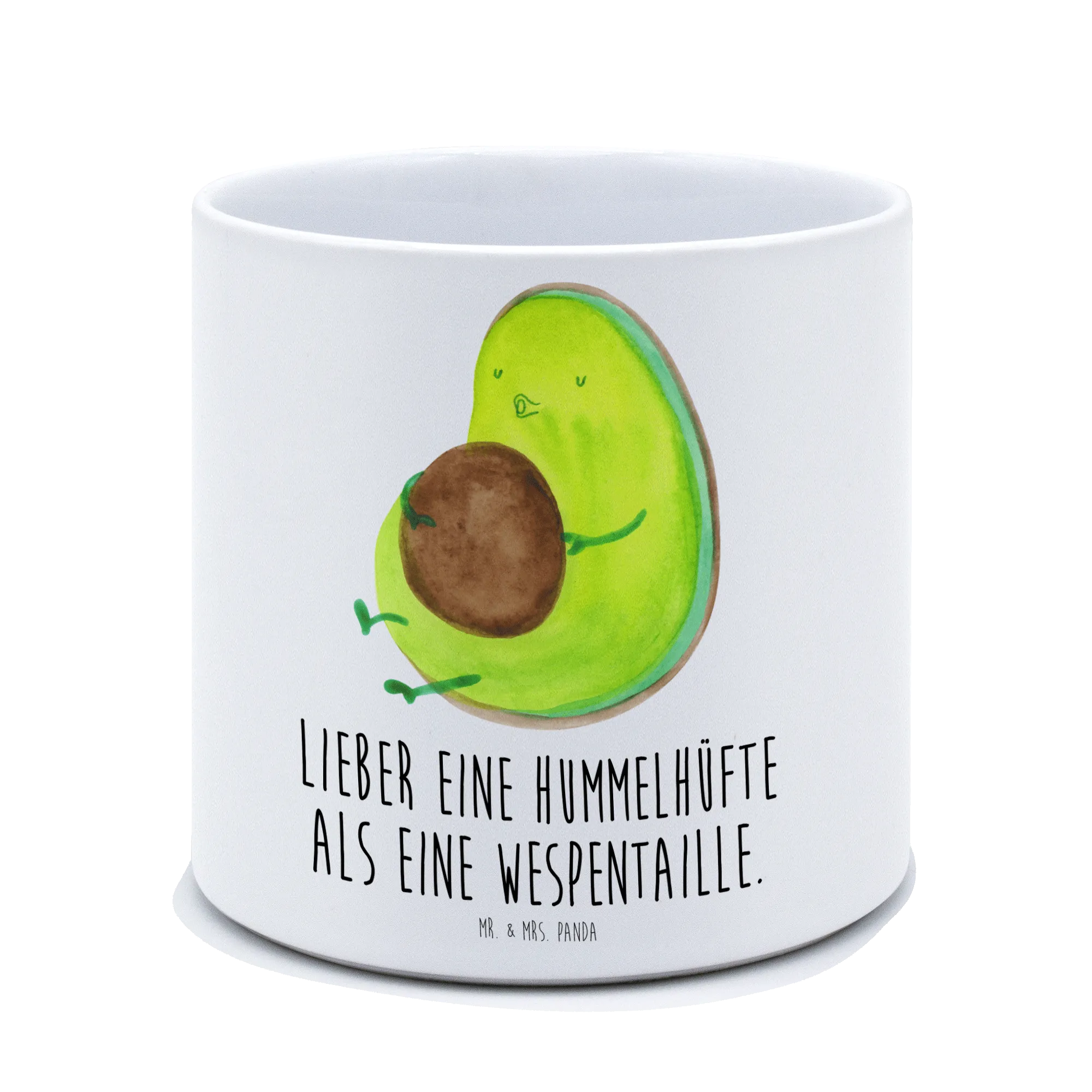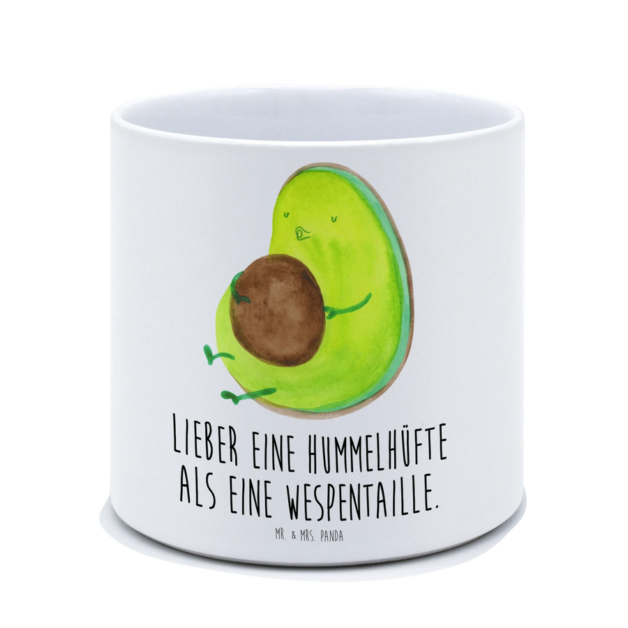 Der XL Blumentopf "Avocado pfeift" von Mr. & Mrs. Panda ist die perfekte Wahl für alle Pflanzenliebhaber und Avocado-Fans! Mit seinem charmanten Design und spritzigem Spruch 'Lieber eine Hummelhüfte als eine Wespentaille' zaubert dieser hochwertige Keramiktopf ein Lächeln auf jedes Gesicht.