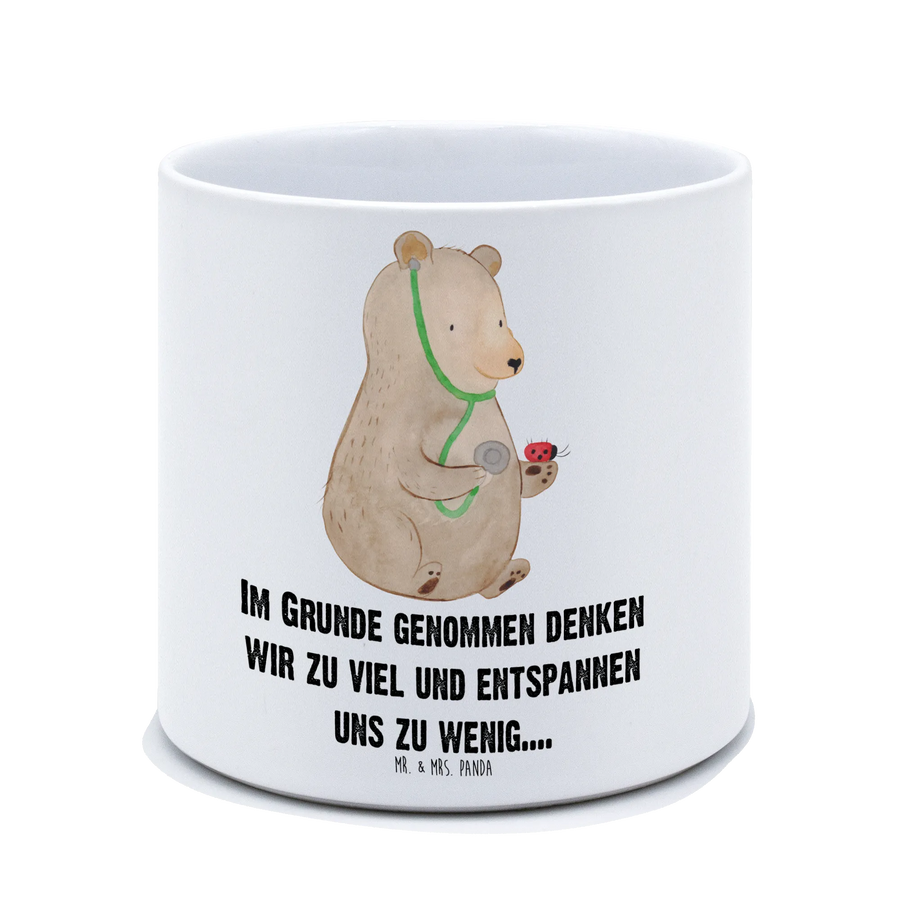 XL Blumentopf Bär Arzt - mit Spruch