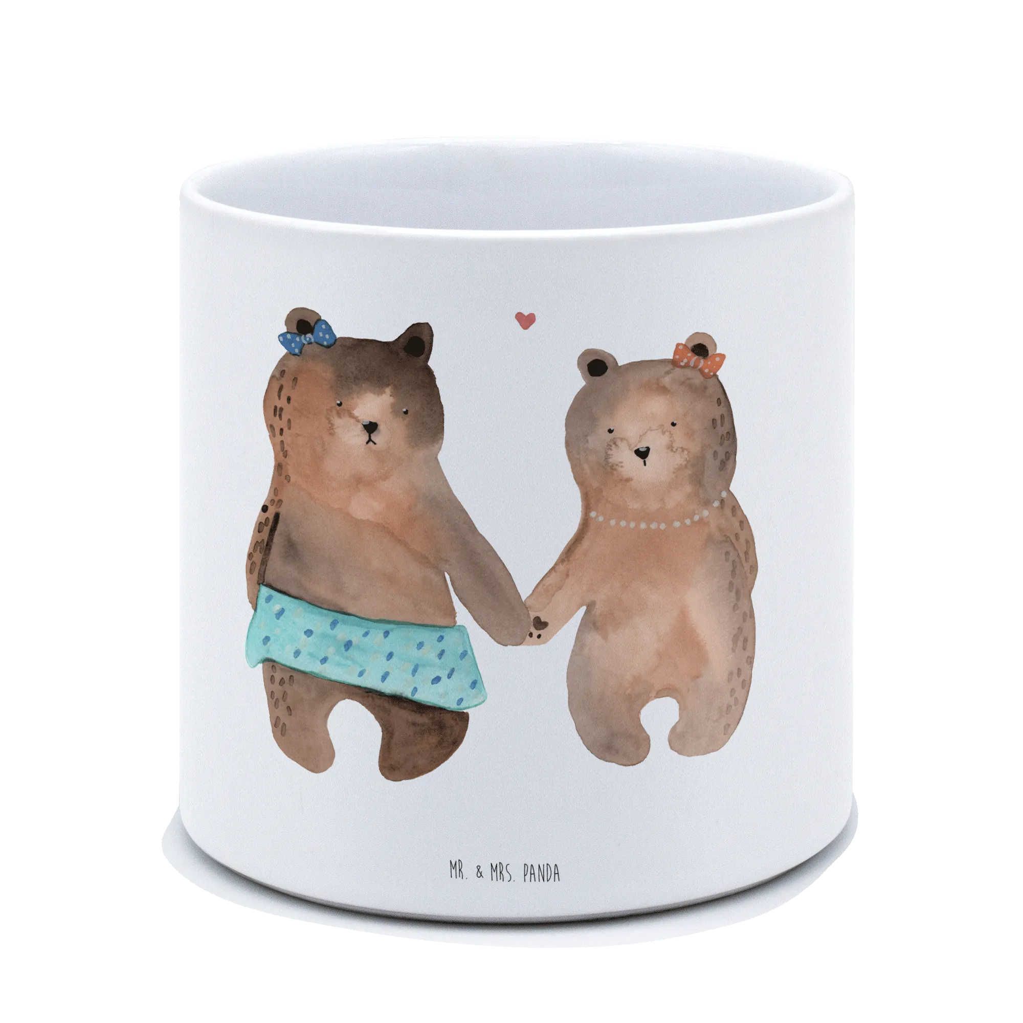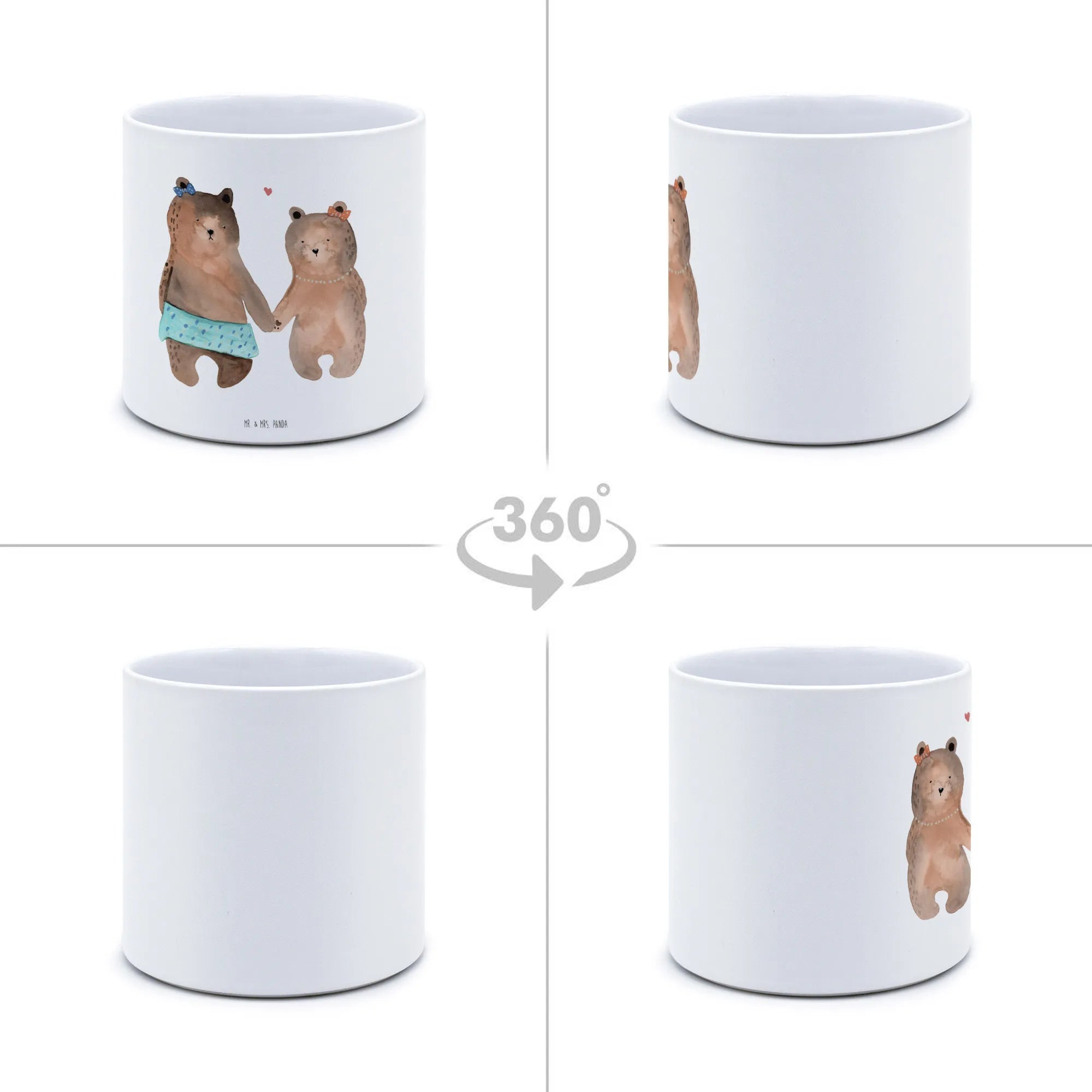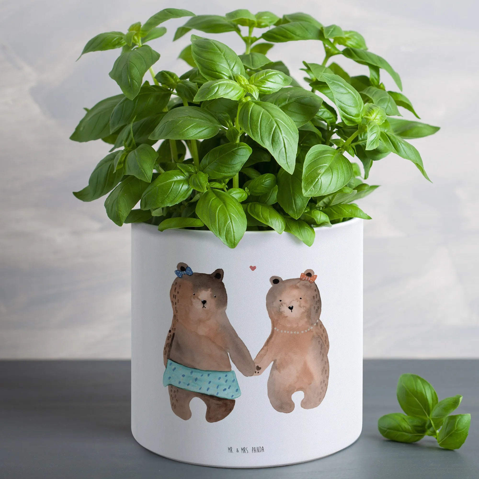 Entdecke den zauberhaften XL Blumentopf Bär Freundin von Mr. & Mrs. Panda – das perfekte Geschenk für deine beste Freundin! Mit einem charmanten Motiv von zwei süßen Bärenmädchen, die sich an den Händen halten, wird dieser Pflanztopf nicht nur zur Deko für den Balkon, die Terrasse oder das Kinderzimmer, sondern auch zu einem liebevollen Liebesbeweis.