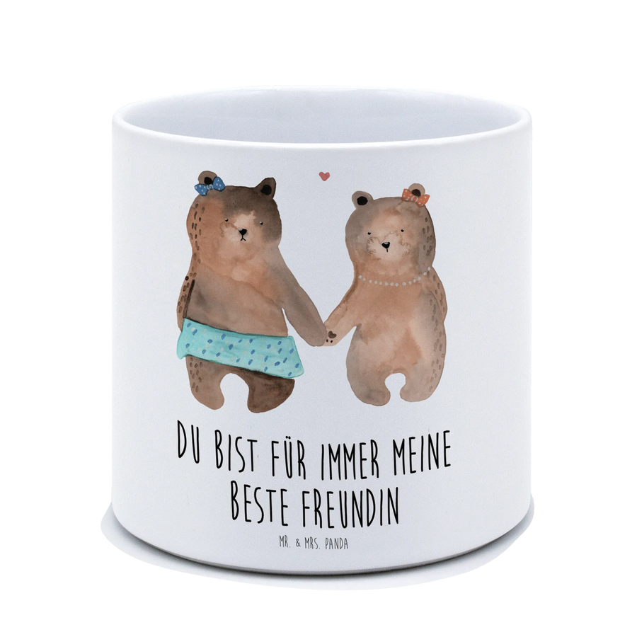 Der XL Blumentopf mit dem süßen Motiv "Bär Freundin" von Mr. & Mrs. Panda ist das perfekte Geschenk für die beste Freundin oder einen ganz besonderen Menschen in deinem Leben! Mit seinen niedlichen Bärenmädchen, die sich an den Händen halten, verbreitet dieser tolle Pflanztopf eine wunderbare Botschaft über Freundschaft und Zuneigung.