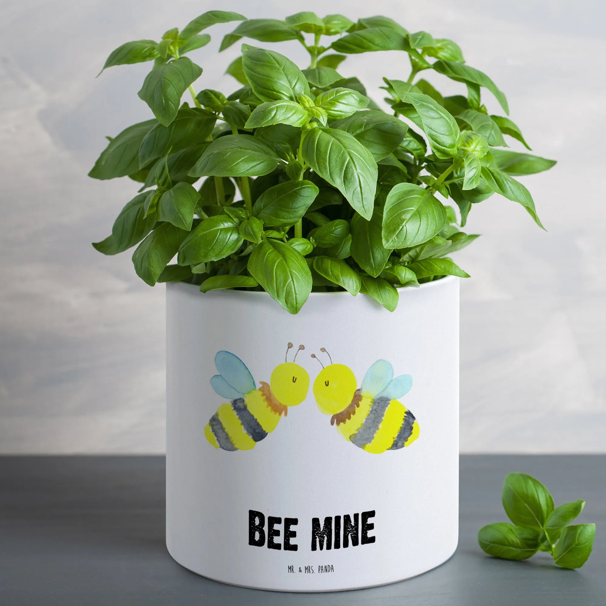 Der XL Blumentopf 'Biene Liebe' von Mr. & Mrs. Panda ist das ideale Geschenk für alle Pflanzenliebhaber und romantischen Seelen! Mit einem bezaubernden, handgezeichneten Motiv von zwei süßen Bienen, die sich innig küssen, bringt dieser hochwertige Pflanztopf nicht nur Farbe in dein Zuhause, sondern auch ganz viel Herz.
