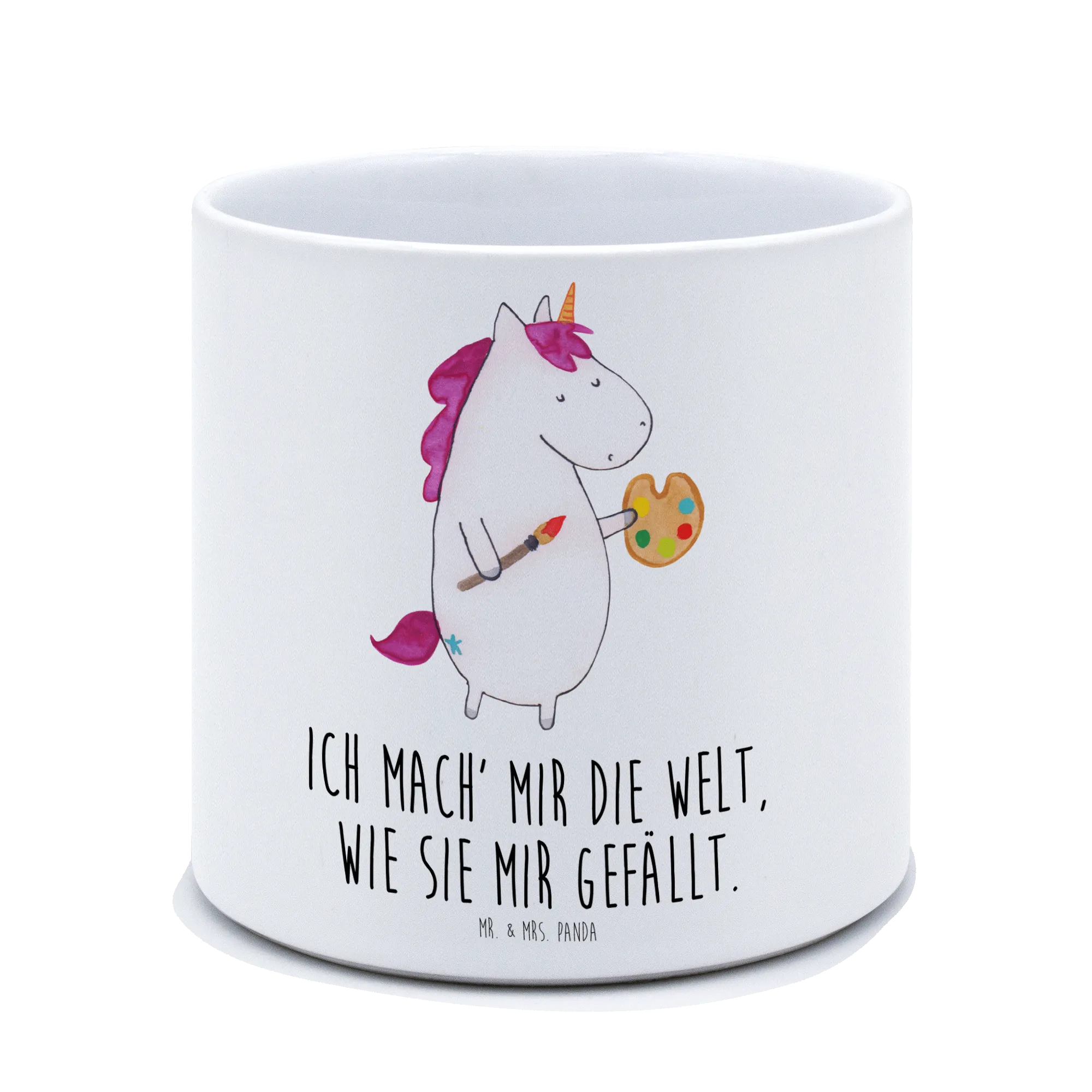 Der XL Blumentopf Einhorn Künstler von Mr. & Mrs. Panda ist das perfekte Geschenk für kreative Köpfe und Liebhaber von Einhörnern. Mit seinem zauberhaften Motiv, das ein niedliches Einhorn zeigt, das an einer Staffelei malt, bringt dieser Blumentopf Freude und Farbe in jedes Zuhause. Der spritzige Slogan "Ich mach' mir die Welt, wie sie mir gefällt" ist ein echter Hingucker und inspiriert dazu, eigene Ideen und Träume zu verwirklichen.