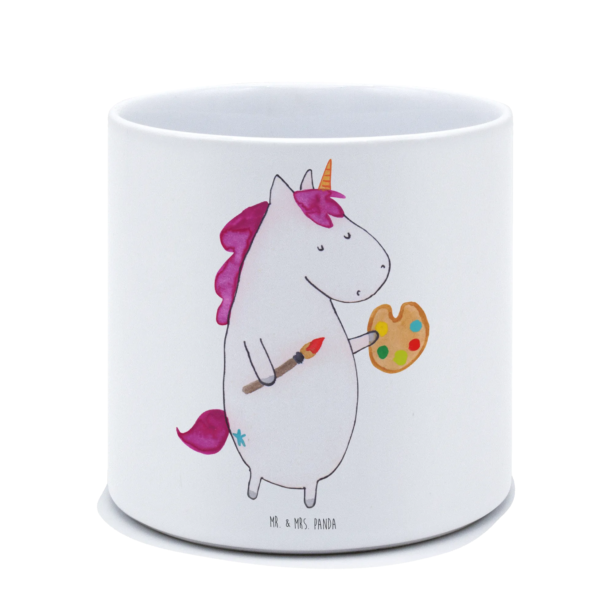 Der XL Blumentopf Einhorn Künstler von Mr. & Mrs. Panda ist der perfekte Begleiter für alle, die die zauberhafte Welt der Einhörner lieben und ihre kreativen Seiten ausleben möchten. Gefertigt aus hochwertiger, glänzender Keramik, vereint dieser Blumentopf Funktionalität und Ästhetik auf wunderbare Weise.