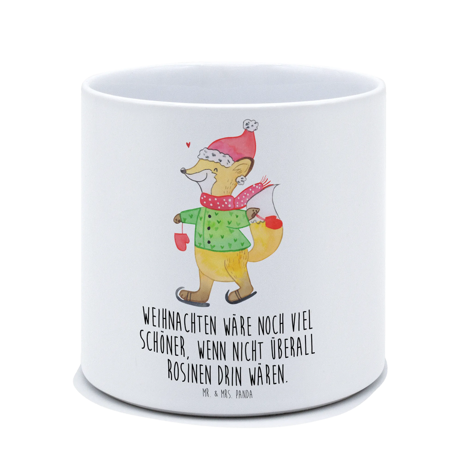 Der XL Blumentopf mit dem fröhlichen Fuchs in Schlittschuhen aus der Winter Kollektion von Mr. & Mrs. Panda ist das perfekte Geschenk für alle, die die winterliche Zeit lieben. Mit einem Durchmesser von 142 mm und einer Höhe von 135 mm eignet sich dieser niedliche Keramiktopf ideal für Pflanzen aller Art – von Kräutern bis hin zu größeren Blumen. Der fröhliche Fuchs, der mit seinem grünen Mantel, dem roten Schal und der Weihnachtsmütze ein strahlendes Lächeln zeigt, bringt nicht nur Farben, sondern auch Freude in jedes Zuhause.