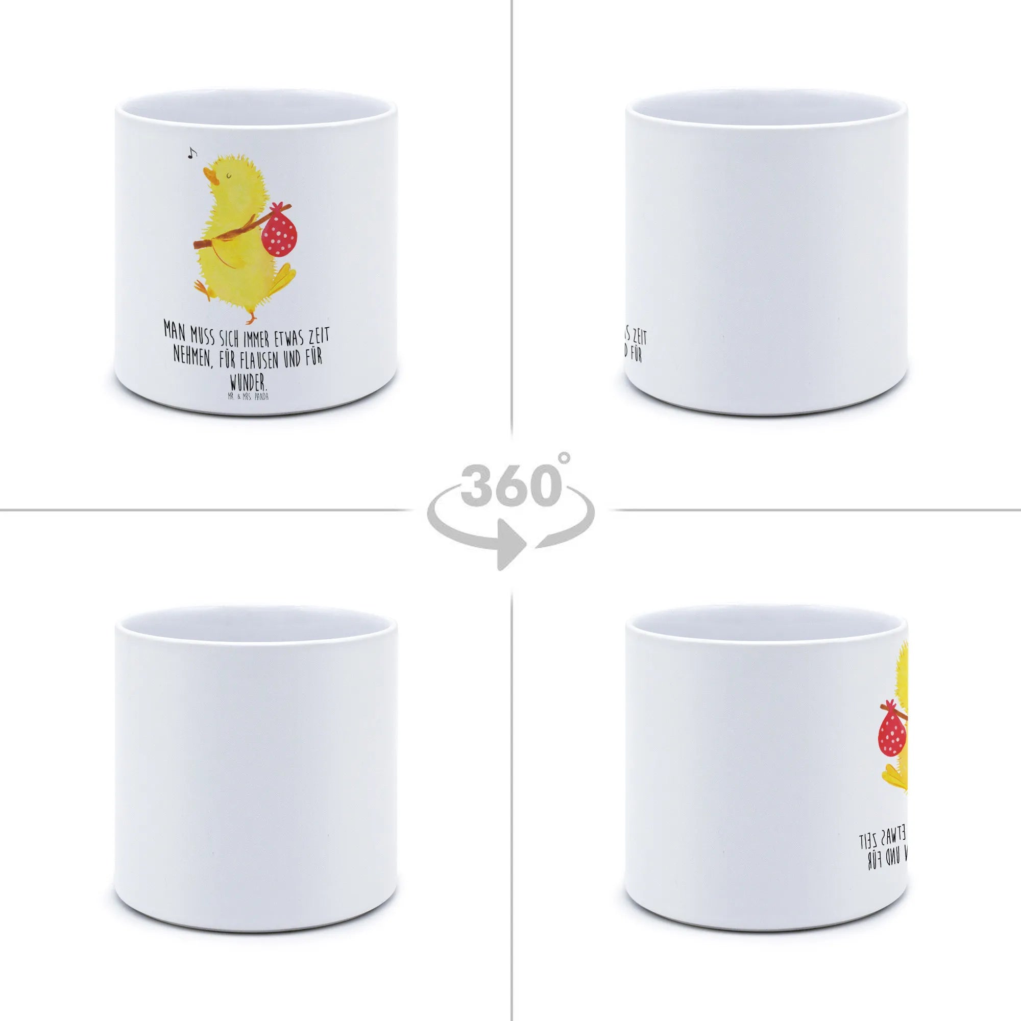 Entdecke den zauberhaften XL Blumentopf "Küken Wanderer" aus der Ostern Kollektion von Mr. & Mrs. Panda! Dieser wunderschöne Blumentopf aus glänzender Keramik ist nicht nur ein echter Hingucker, sondern auch ein wunderbares Geschenk für alle, die die Frühlingsgefühle und die Freude an Ostern lieben.