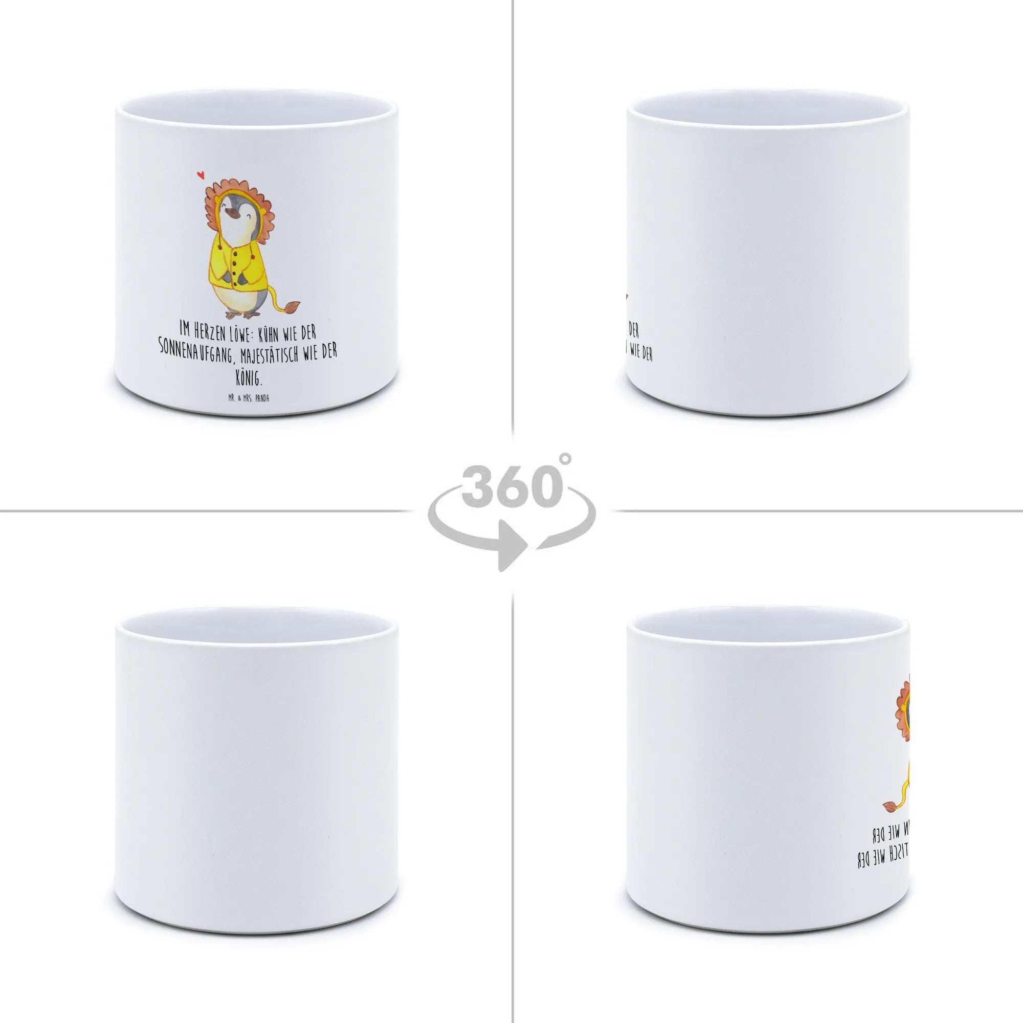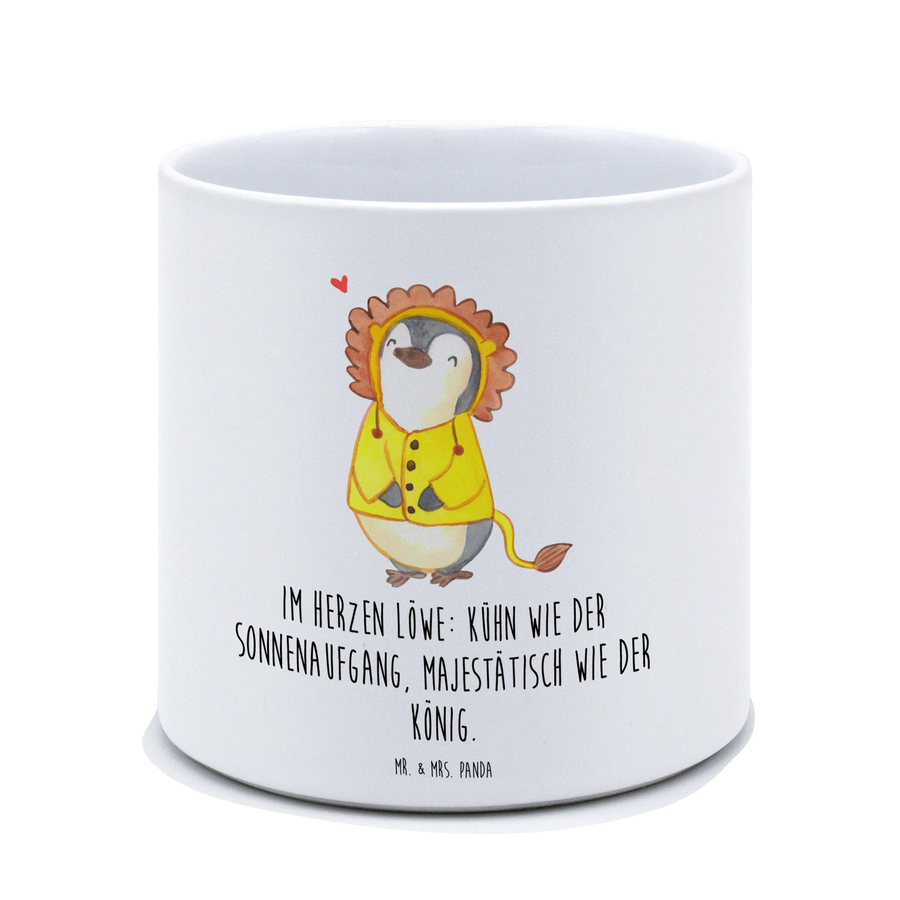 Entdecke unseren XL Blumentopf mit dem bezaubernden Löwen-Motiv aus der Sternzeichen-Kollektion von Mr. & Mrs. Panda! Dieser wunderschöne Keramiktopf hat nicht nur einen Durchmesser von 142 mm, sondern besticht auch durch sein fröhliches Design – ein Pinguin im Löwenkostüm schmückt ihn und bringt Lebensfreude in Dein Zuhause. Der Spruch 'Im Herzen Löwe: Kühn wie der Sonnenaufgang, majestätisch wie der König.' ist das i-Tüpfelchen, das den Charakter dieses einzigartigen Blumentopfs unterstreicht.