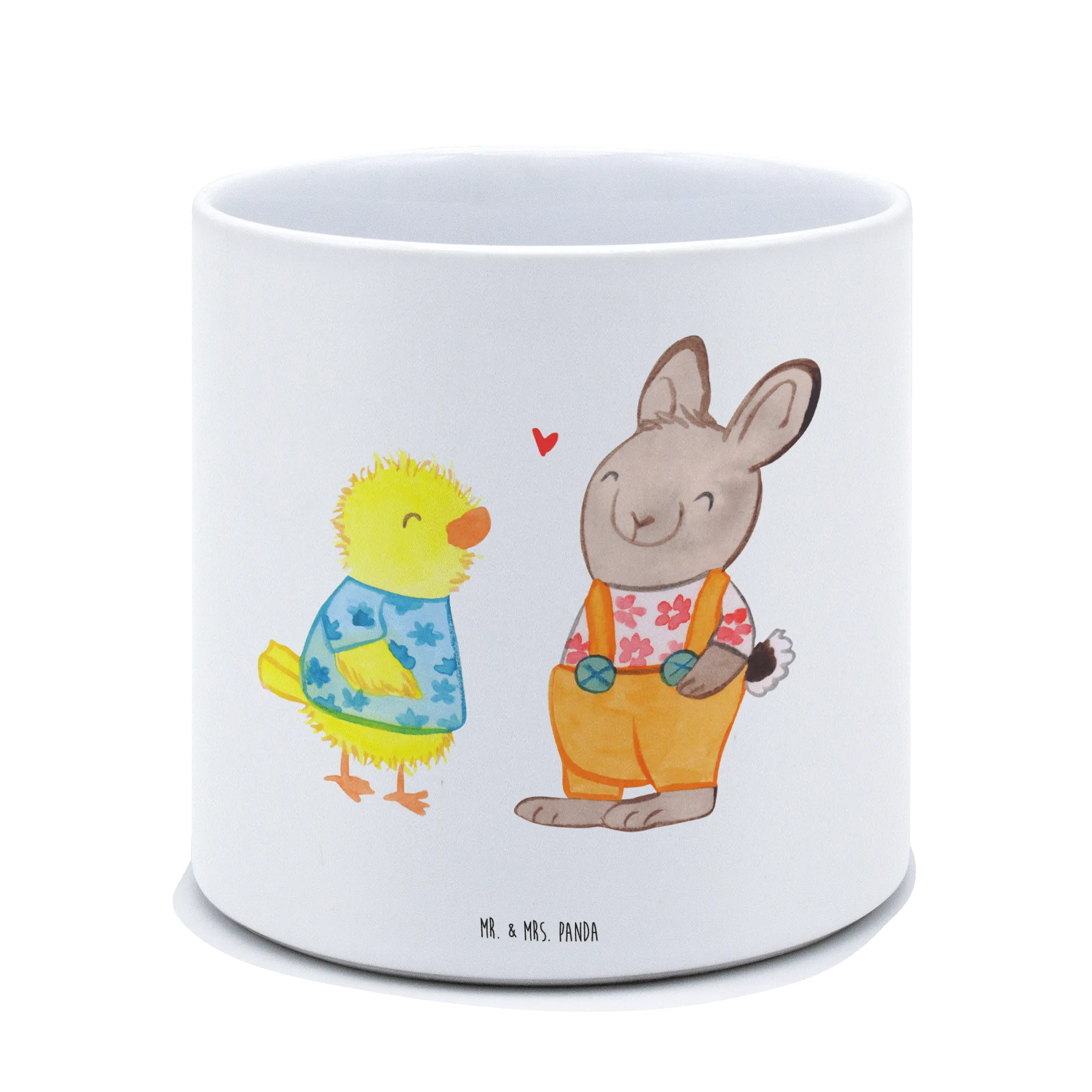 Der XL Blumentopf Ostern Freundschaft von Mr. & Mrs. Panda ist nicht nur ein einfacher Übertopf, sondern ein liebevolles Kunstwerk, das das Osterfest in dein Zuhause bringt. Geschaffen mit den niedlichen Motiven von Hase und Küken symbolisiert dieser Keramiktopf die tiefe Verbundenheit und Freundschaft, die wir im Leben gefunden haben. Der fröhliche Hase in seiner Latzhose blickt liebevoll auf sein kleines Kükenfreund, wodurch dieser Topf ganz besonders wird.