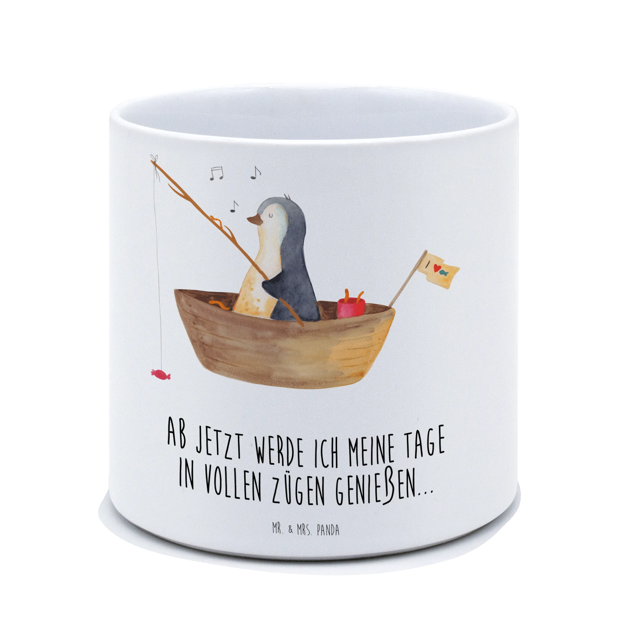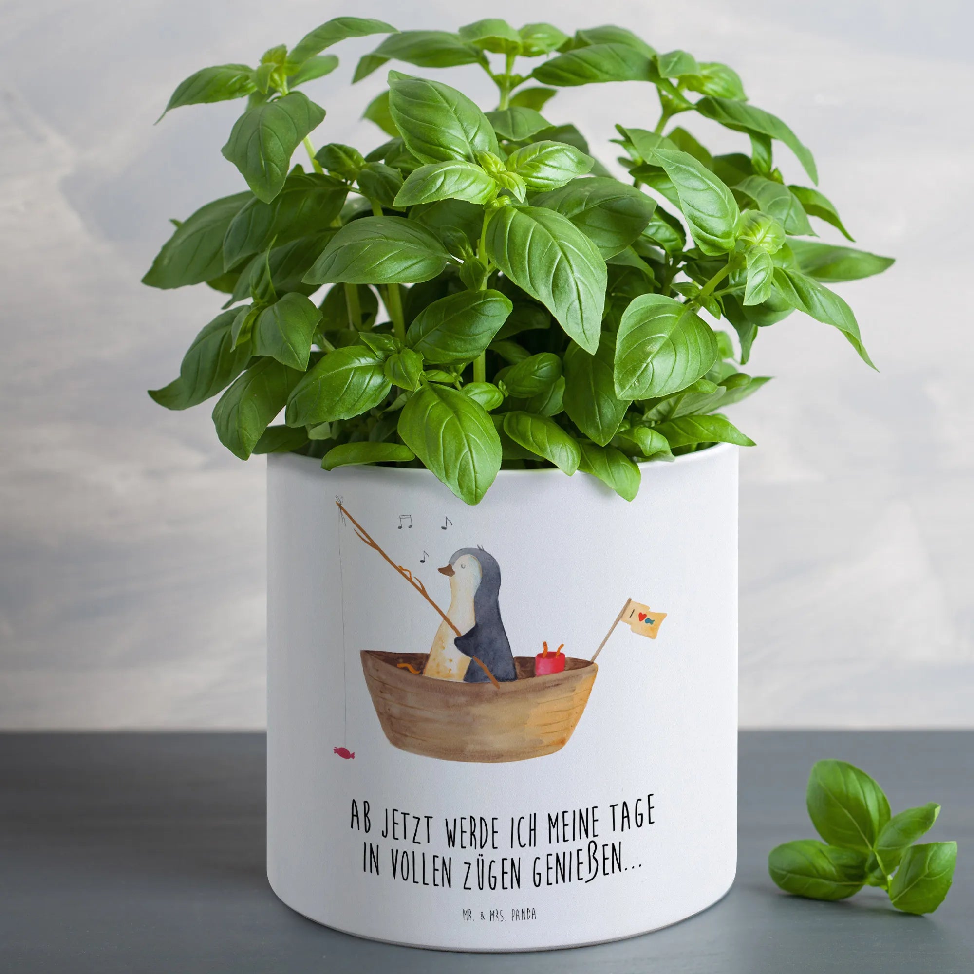Entdecke den zauberhaften XL Blumentopf Pinguin Angelboot von Mr. & Mrs. Panda! Dieser niedliche und einzigartige Blumentopf ist nicht nur ein echter Blickfang, sondern auch der perfekte Begleiter für deine Pflanzen. Mit einem liebevoll handgezeichneten Motiv eines fröhlichen Pinguins, der auf seinem kleinen Angelboot mit Bonbons am Haken fischt, bringt er Freude und Lebenslust in jedes Zuhause. Egal, ob du ihn auf deiner Fensterbank, der Terrasse oder im Garten platzierst – dieser Blumentopf passt einfach überall hinein!