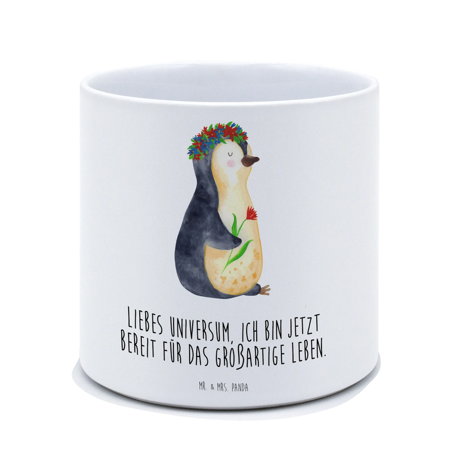 Der XL Blumentopf mit dem bezaubernden Pinguin Blumenkranz von Mr. & Mrs. Panda ist das perfekte Geschenk für alle Pflanzenliebhaber und Pinguin-Fans! In strahlendem Weiß bringt dieser besondere Keramiktopf Farbe und Lebensfreude in jedes Zuhause. Die handgezeichnete Illustration eines süßen Pinguins mit einem hübschen Blumenkranz auf dem Kopf und einer Blume in der Hand zaubert ein Lächeln auf jedes Gesicht und verwandelt jeden Raum in eine kleine Oase der Freude.