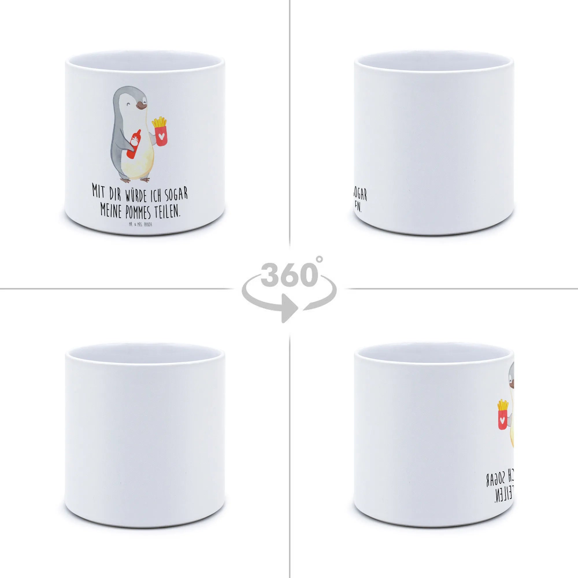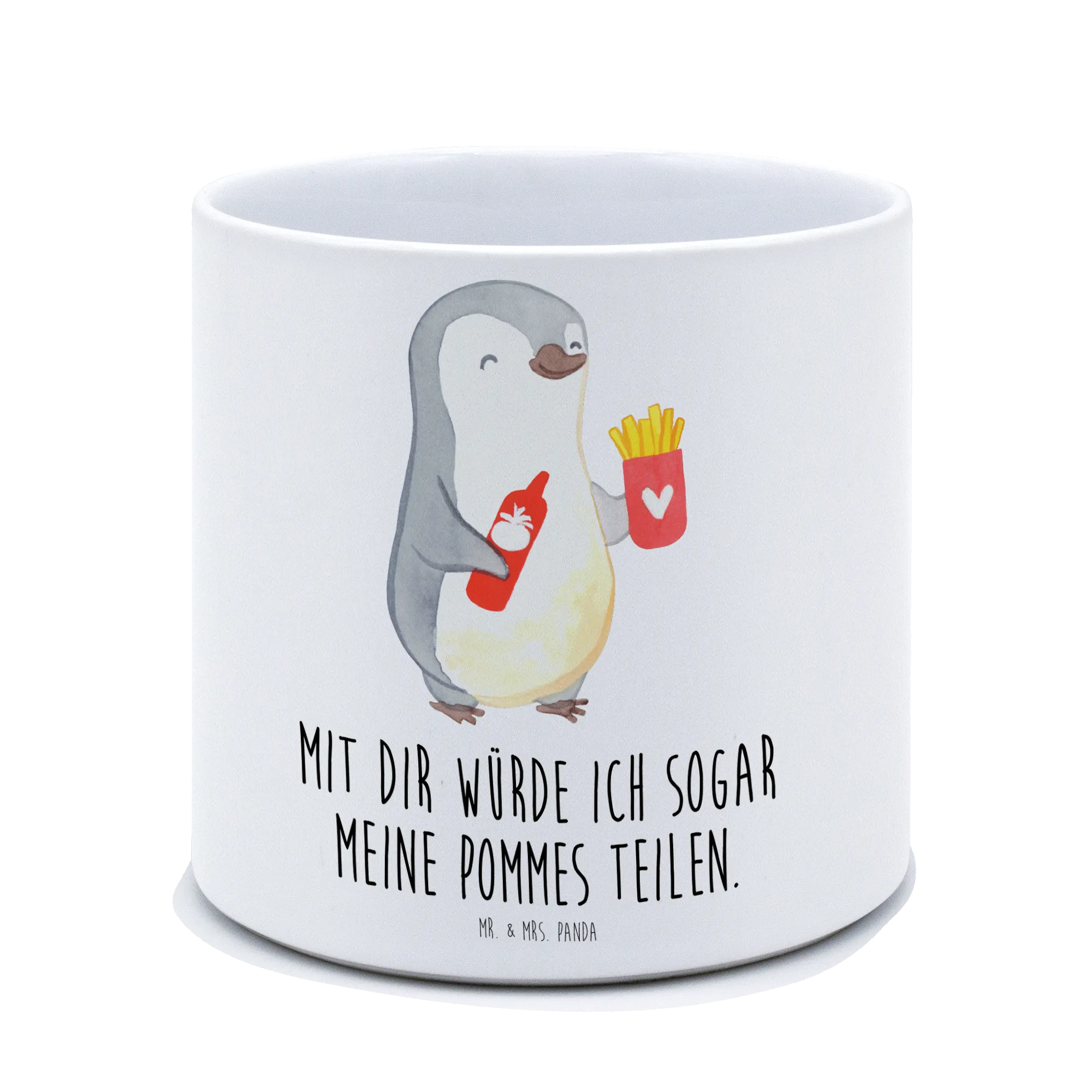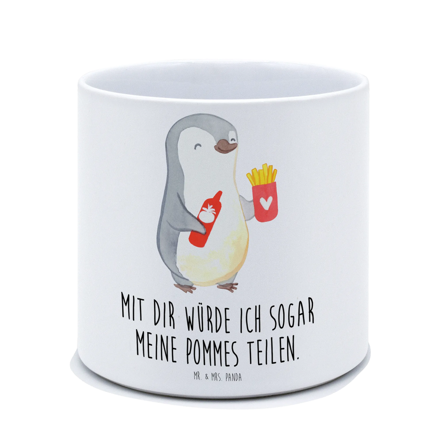 Entdecke unseren XL Blumentopf mit dem süßen Pinguin Pommes-Motiv aus der liebevollen Kollektion "Liebe" von Mr. & Mrs. Panda! Warum dieser Blumentopf das perfekte Geschenk für jeden Anlass ist? Ganz einfach! Der Blumentopf ist nicht nur praktisch, sondern auch ausgesprochen charmant. Mit seinem einzigartigen Design zaubert er sofort ein Lächeln auf die Gesichter Deiner Liebsten. Der glückliche Pinguin, der eine Portion Pommes und eine Flasche Ketchup hält, strahlt pure Lebensfreude aus und vermittelt die Message: "Mit dir würde ich sogar meine Pommes teilen." Dieses liebevolle Detail macht den Blumentopf zu einem besonderen Liebesbeweis, egal ob als Geschenk zum Valentinstag, Hochzeitstag oder einfach als Mitbringsel, um einem besonderen Menschen zu zeigen, wie viel er oder sie Dir bedeutet.