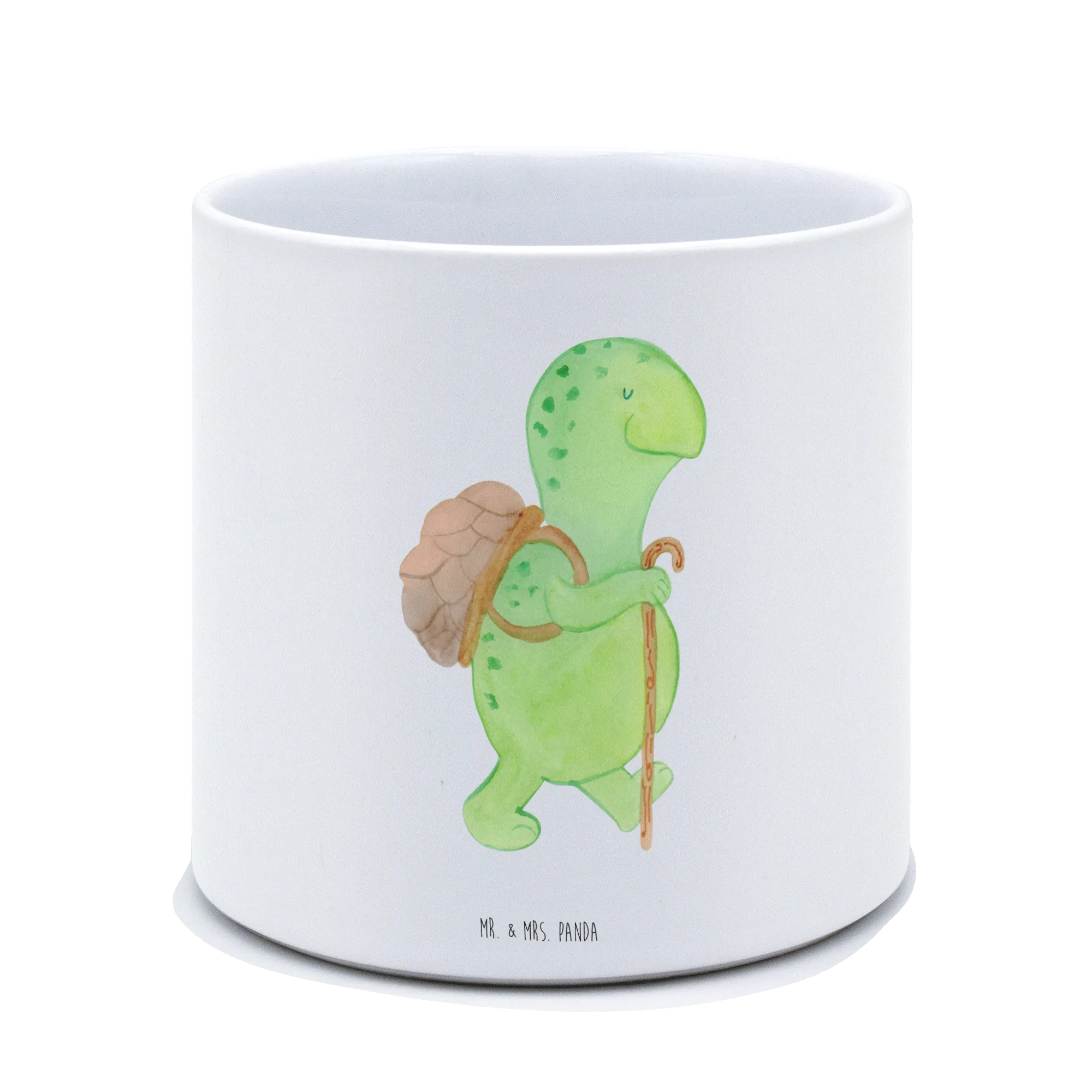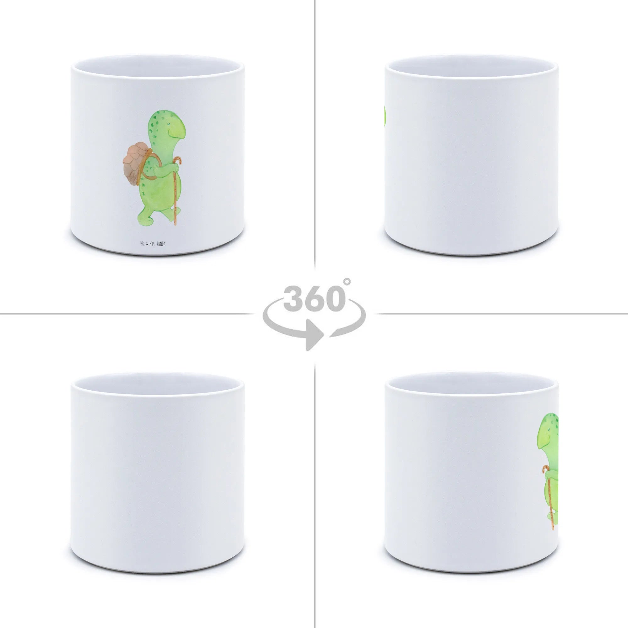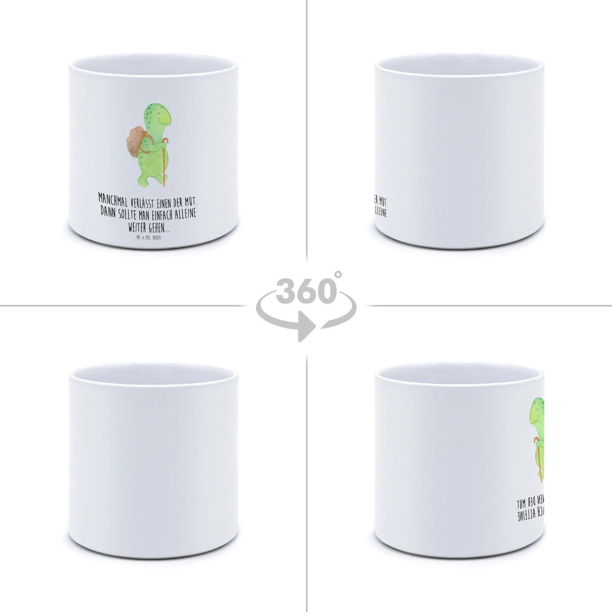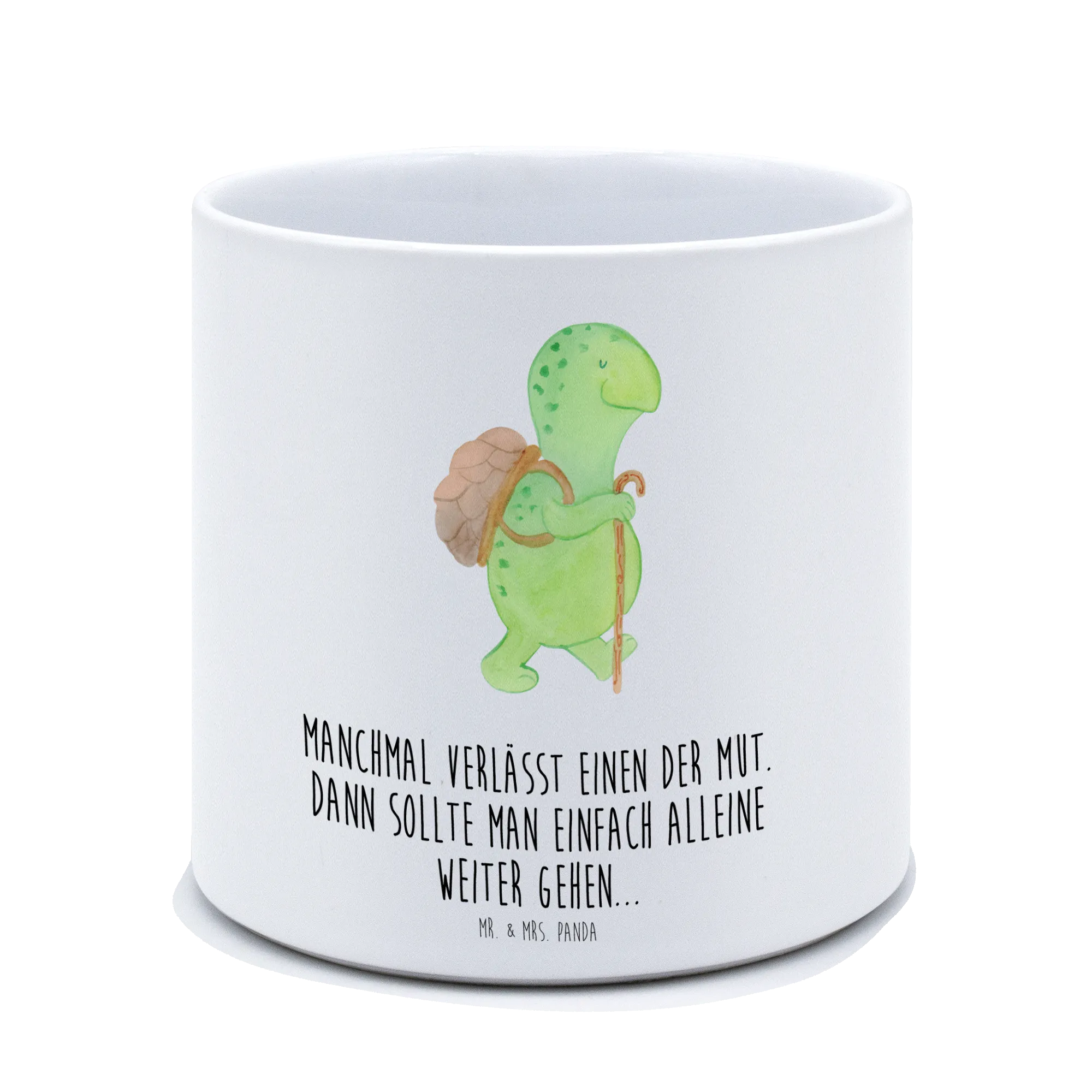 Der XL Blumentopf mit dem süßen Schildkröte Wanderer-Motiv von Mr. & Mrs. Panda ist ein ganz besonderes Highlight für jeden Pflanzenliebhaber. Mit einer liebevoll handgezeichneten Schildkröte, die ihren Panzer als kleinen Rucksack trägt, bringt dieser Pflanztopf nicht nur Farbe, sondern auch eine Portion Motivation in dein Zuhause. Der Slogan "Manchmal verlässt einen der Mut. Dann sollte man einfach alleine weiter gehen..." inspiriert dazu, neue Lebenswege zu beschreiten – eine perfekte Botschaft für jeden Neuanfang!