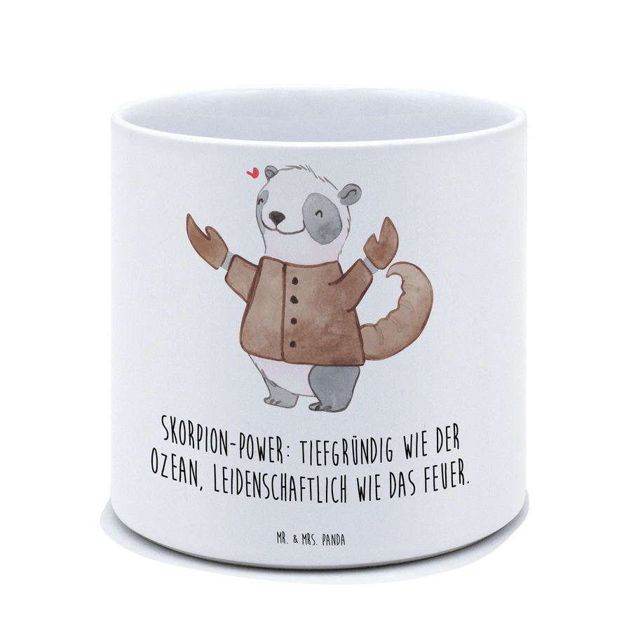 Unser XL Blumentopf mit dem zauberhaften Skorpion-Motiv aus der Mr. & Mrs. Panda Kollektion ist das perfekte Geschenk für alle Skorpione und ihre Liebsten. Der bedeutende Charakter des Skorpions – tiefgründig und leidenschaftlich – wird durch das niedliche Design des Pandas, der stolz in seinem Skorpion-Kostüm strahlt, wunderbar unterstrichen.