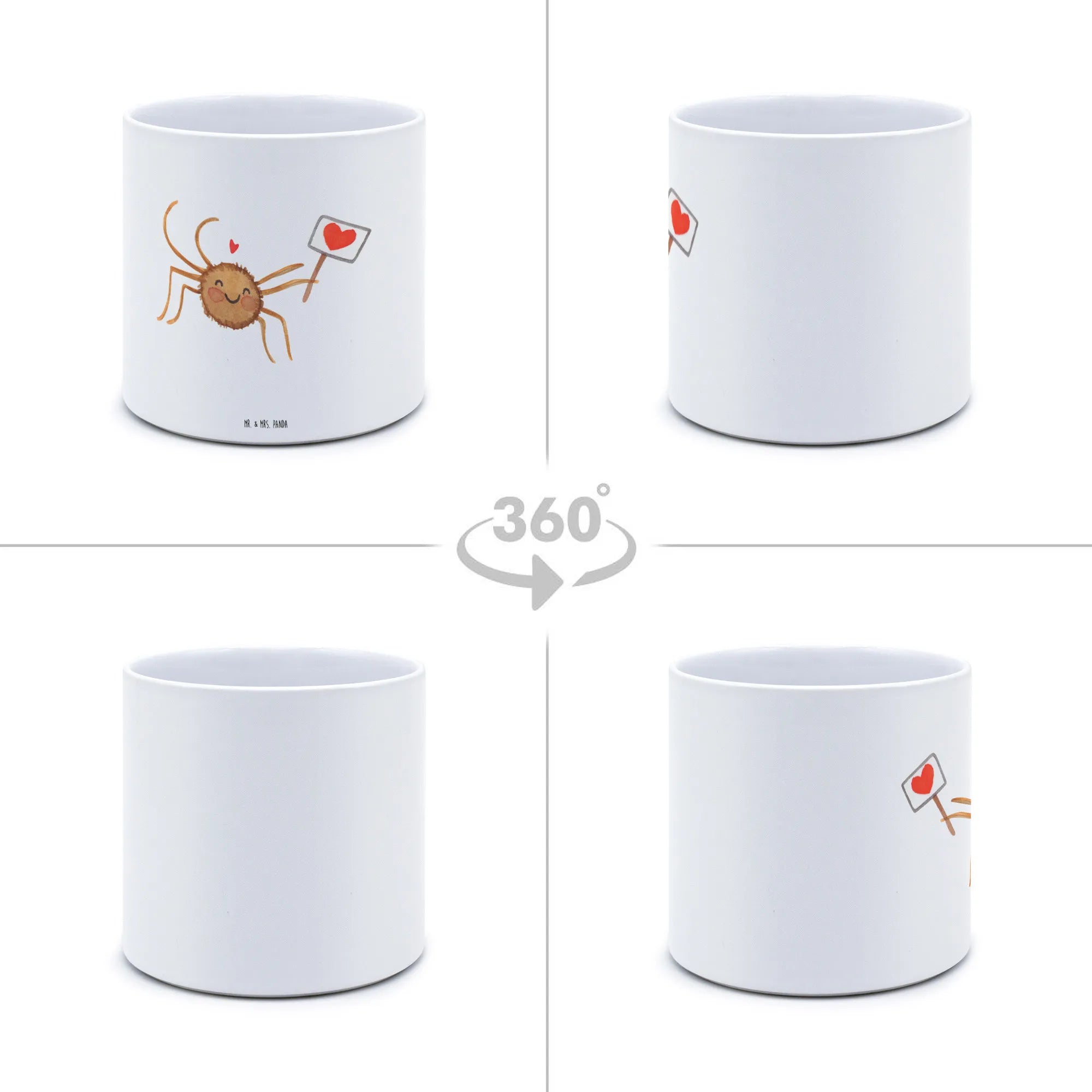 Das stimmungsvolle Motiv von Spinne Agathe, die freundlich lacht und ein Herz Schild hält, erinnert Dich daran, die kleinen Dinge im Leben zu schätzen und jeden magischen Moment zu feiern. Egal, ob Du Dir selbst eine Freude machen oder ein besonderes Geschenk für einen lieben Menschen suchst, dieser Blumenübertopf erfüllt beide Wünsche mit Leichtigkeit!