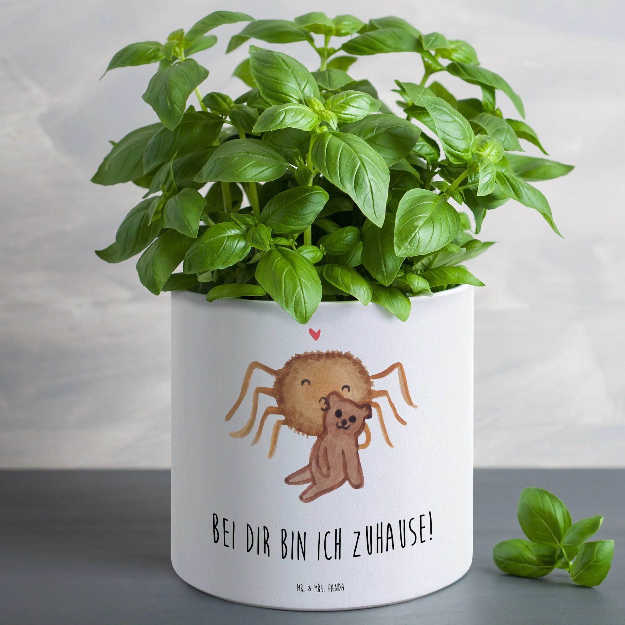 Die außergewöhnliche Gestaltung mit der niedlichen Spinne Agathe und ihrem süßen Teddy zaubert ganz sicher jedem ein Lächeln ins Gesicht. Der Blumentopf ist mit viel Liebe zum Detail von Mrs. Panda handgezeichnet worden und spiegelt die herzliche Botschaft "Bei dir bin ich zuhause!" wider. Er bringt nicht nur frisches Grün in Dein Zuhause, sondern auch die Botschaft von Freundschaft und Zusammengehörigkeit.
