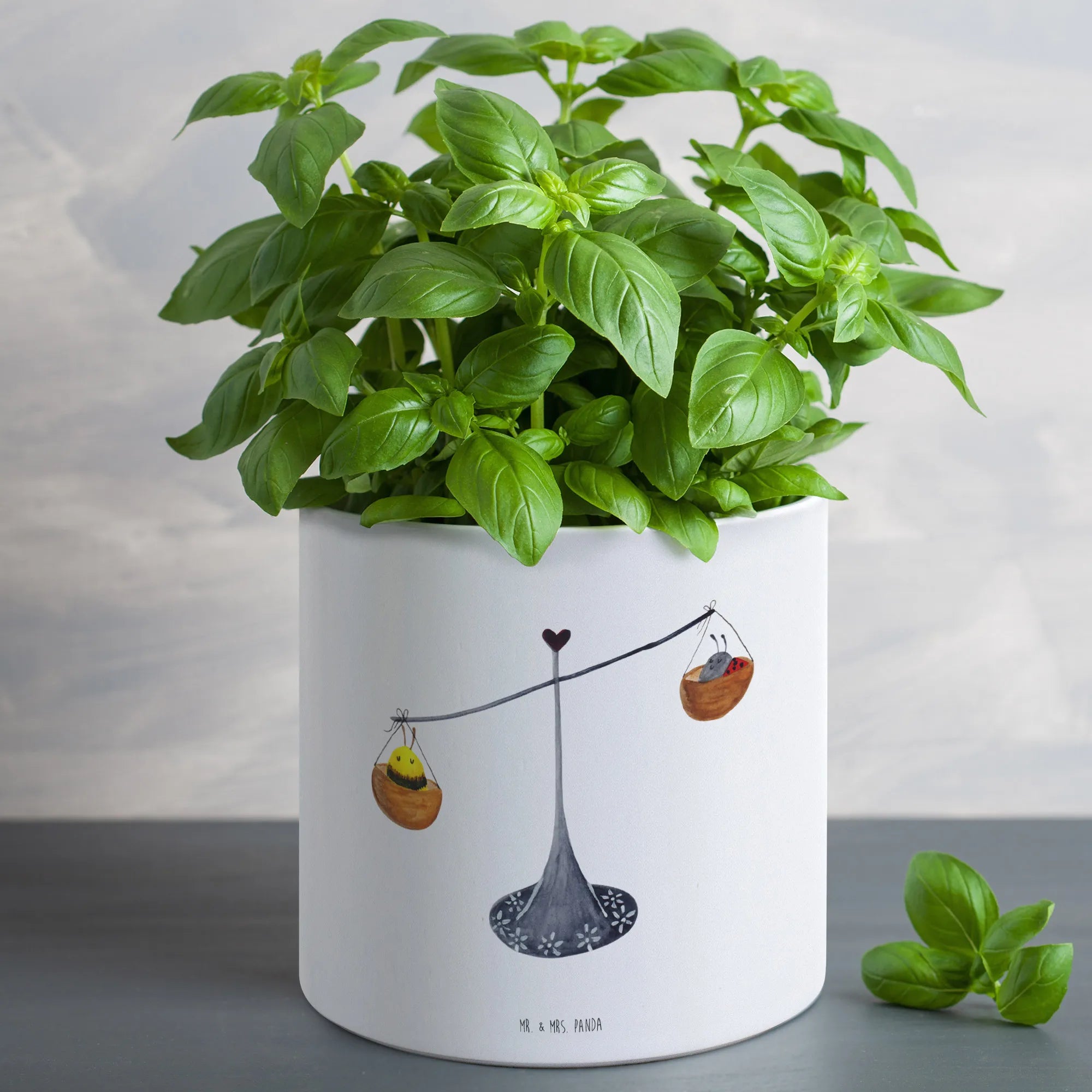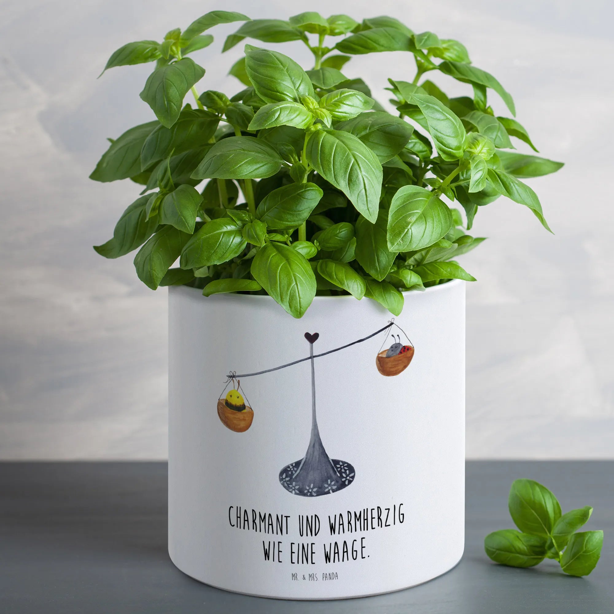 Entdecke den wunderbaren XL Blumentopf mit dem zauberhaften Motiv des Sternzeichens Waage von Mr. & Mrs. Panda! Dieser schöne Pflanztopf ist nicht nur ein echtes Wohnhighlight, sondern auch ein perfektes Geschenk für all diejenigen, die zwischen dem 23. September und 22. Oktober Geburtstag haben oder einfach nur die Waage als ihren Aszendenten feiern möchten. Die Waage steht für Ausgeglichenheit und Harmonie – genau wie dieser stilvolle Blumentopf!