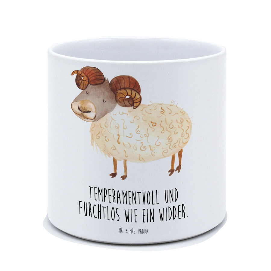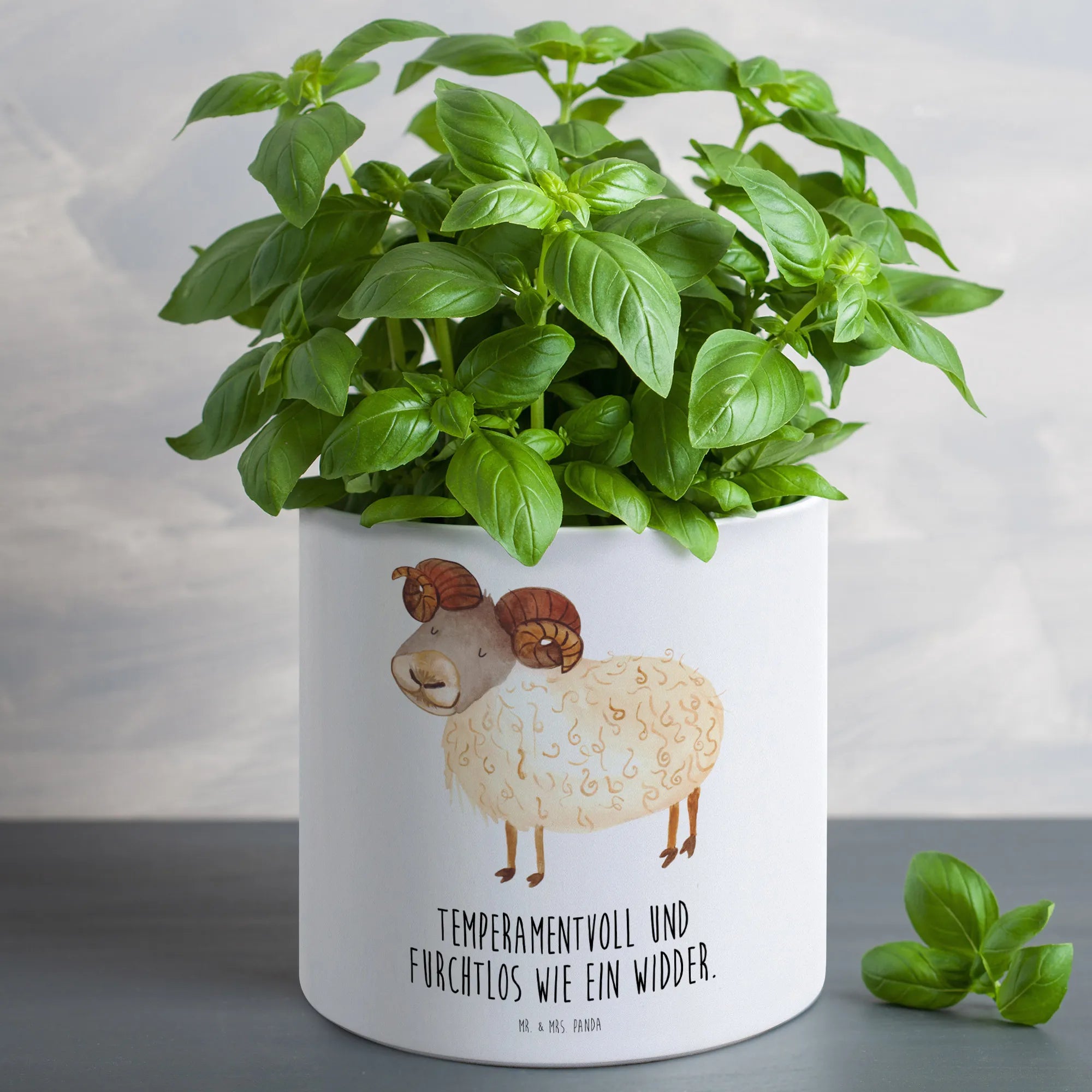 Entdecke den einzigartigen XL Blumentopf aus der Kollektion von Mr. & Mrs. Panda, perfekt für alle Sternzeichen-Fans! Mit unserem bezaubernden Motiv des Widder, dem ersten Zeichen des Tierkreises, bringst Du nicht nur Farbe in Deine Wohnung, sondern auch ein Stück Persönlichkeit. Der Widder steht für Temperament und Furchtlosigkeit – Eigenschaften, die in unserem Blumentopf durch den süßen Spruch „Temperamentvoll und furchtlos wie ein Widder.“ widergespiegelt werden.