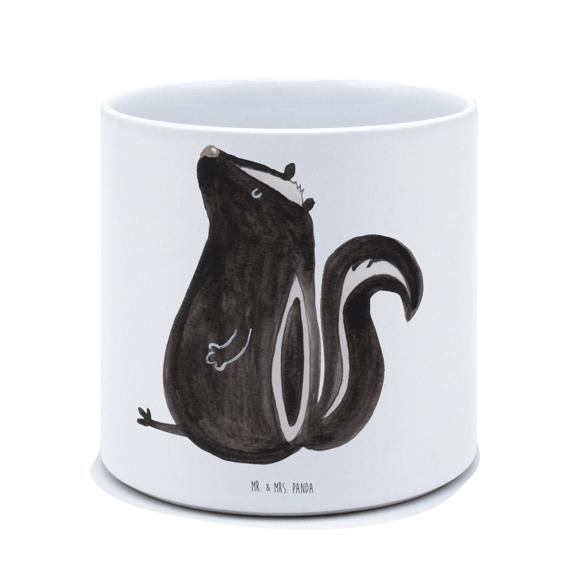 Der XL Blumentopf Stinktier sitzend aus der Stinktier-Kollektion von Mr. & Mrs. Panda ist das perfekte Geschenk für Tierliebhaber und Pflanzenfreunde. Mit seinem charmanten, handgezeichneten Stinktier-Motiv bringt dieser keramische Pflanztopf einen Hauch von Natur in jedes Zuhause. Ob auf der Fensterbank, dem Balkon oder der Terrasse – dieser Blumentopf ist ideal für Kräuter und größere Pflanzen.