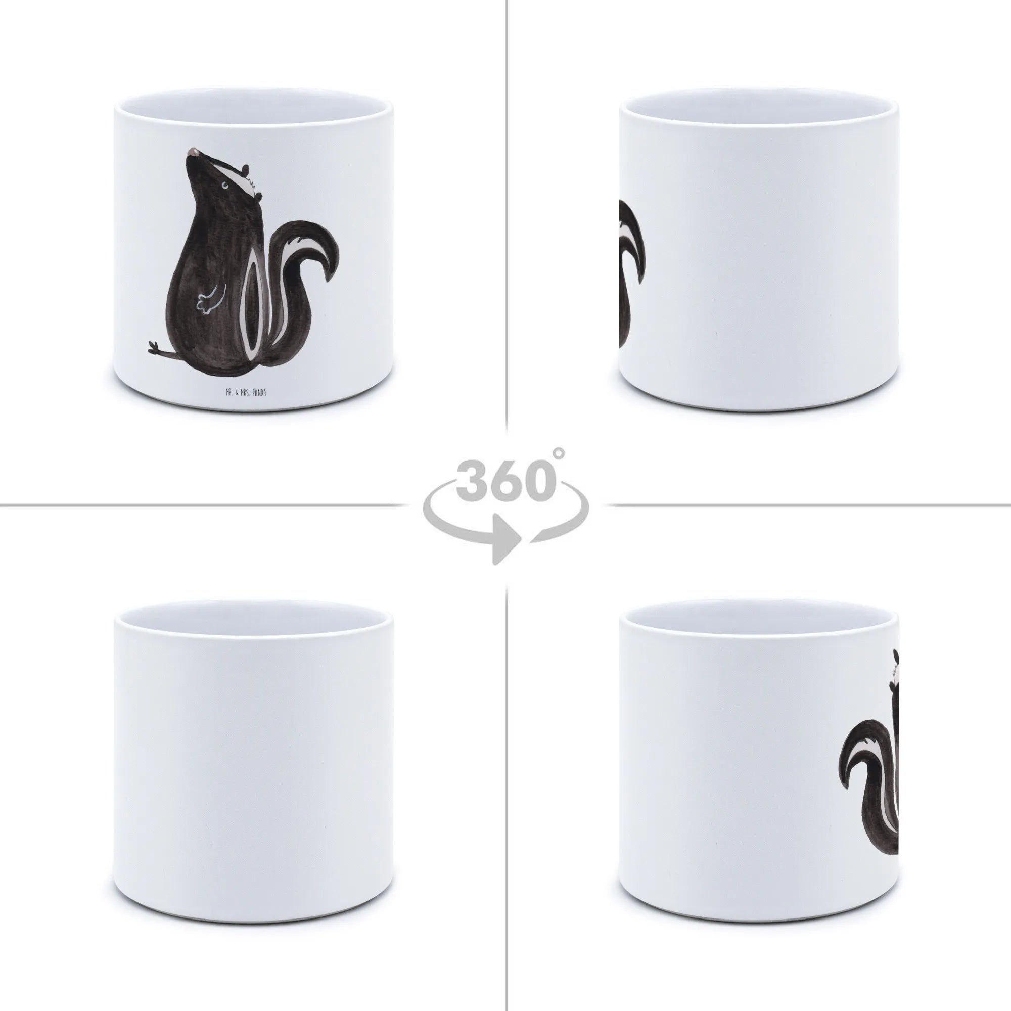 Ob im Büro, im Garten oder im Wohnzimmer, er sorgt immer für gute Stimmung und bringt jeden zum Schmunzeln. Vertrauen wir auf die Kraft der Pflanzen und den Charme des Stinktieres! Verwandele Deine Räume mit diesem ansprechenden XL Blumentopf in eine Oase des Wohlbefindens und des guten Geschmacks. Mach das Beste aus Deinem Raum und hol das Leben herein – mit Mr. & Mrs. Panda!