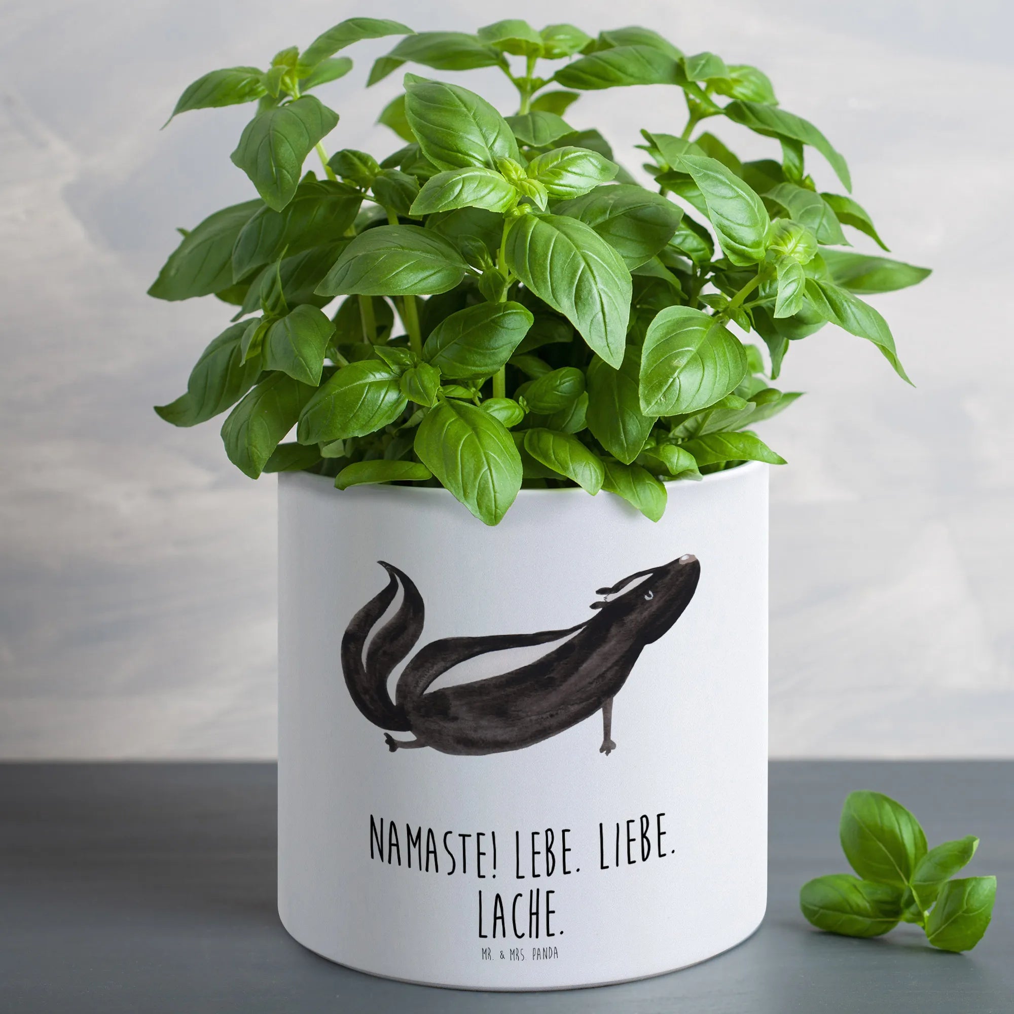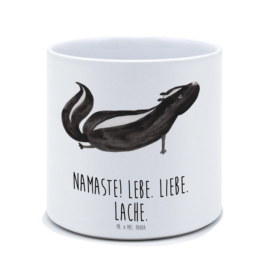 Der XL Blumentopf Stinktier Yoga aus der Stinktier-Kollektion von Mr. & Mrs. Panda ist nicht nur ein praktisches Accessoire für deine Pflanzen, sondern auch ein echtes Kunstwerk! Dieser hochwertige, glänzende Keramiktopf bietet mit einem Durchmesser von 142 mm Platz für deine liebsten Kräuter oder Blumen und zaubert gute Laune in jeden Raum.