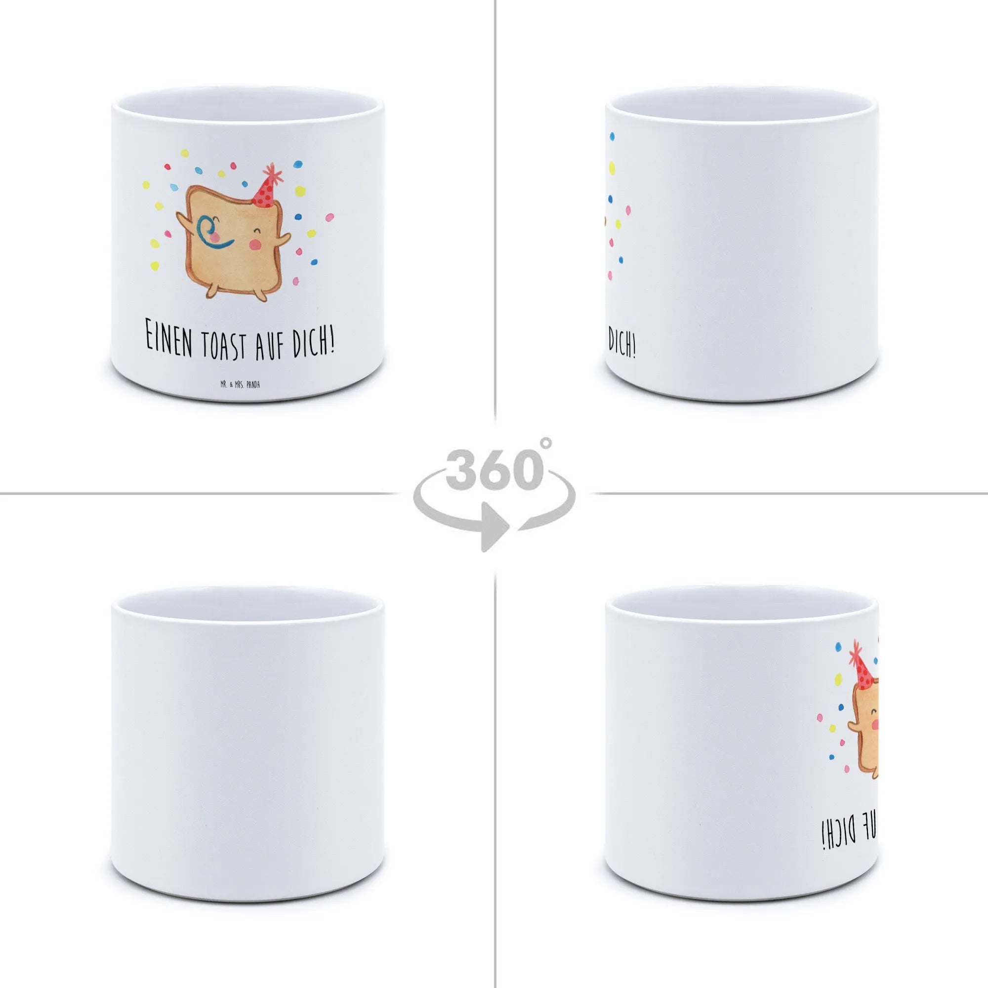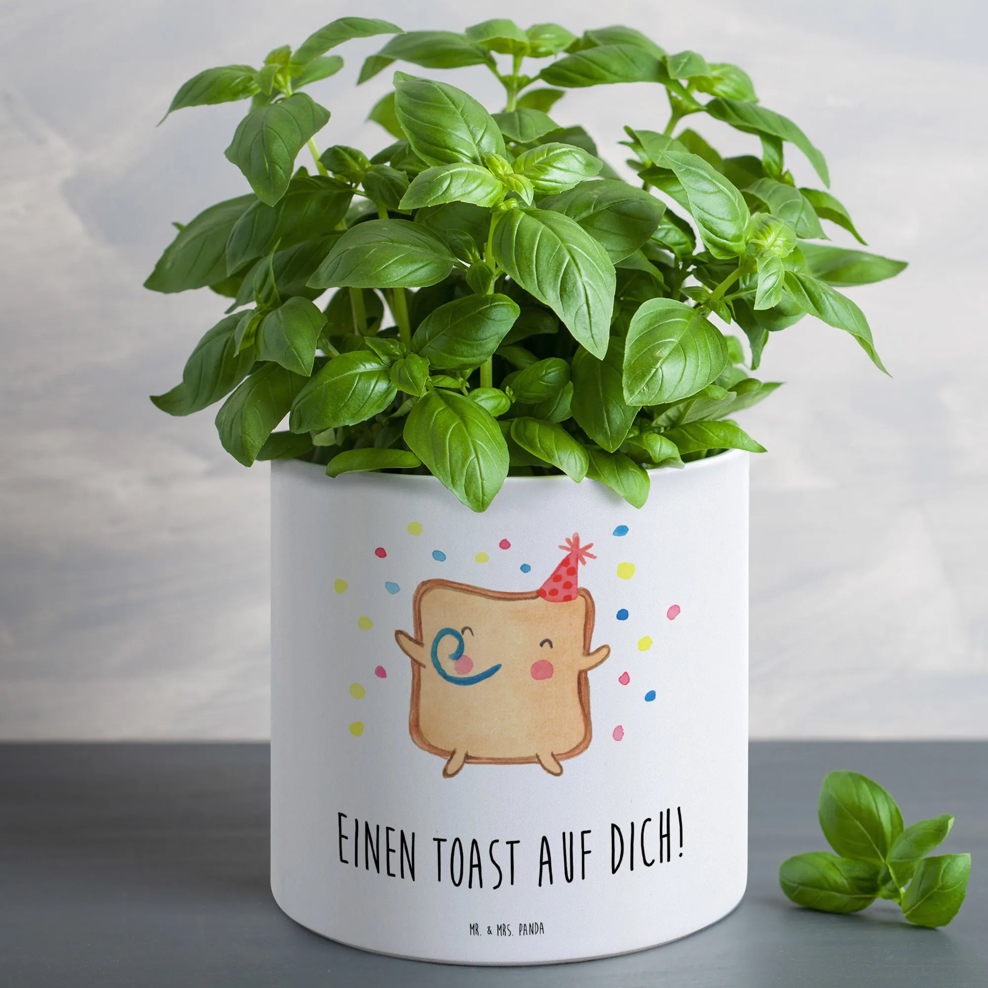Die einzigartige Gestaltung zeigt einen fröhlichen Toast mit menschlichen Zügen, der einen Partyhut trägt und von buntem Konfetti umgeben ist. Mit dem süßen Slogan 'Einen Toast auf dich!' wird dieser Blumentopf zu einem liebevollen Liebesgeschenk. Ob zum Valentinstag, Hochzeitstag oder Jahrestag – mit diesem Geschenk zauberst du garantiert ein Lächeln auf das Gesicht deiner Liebsten.